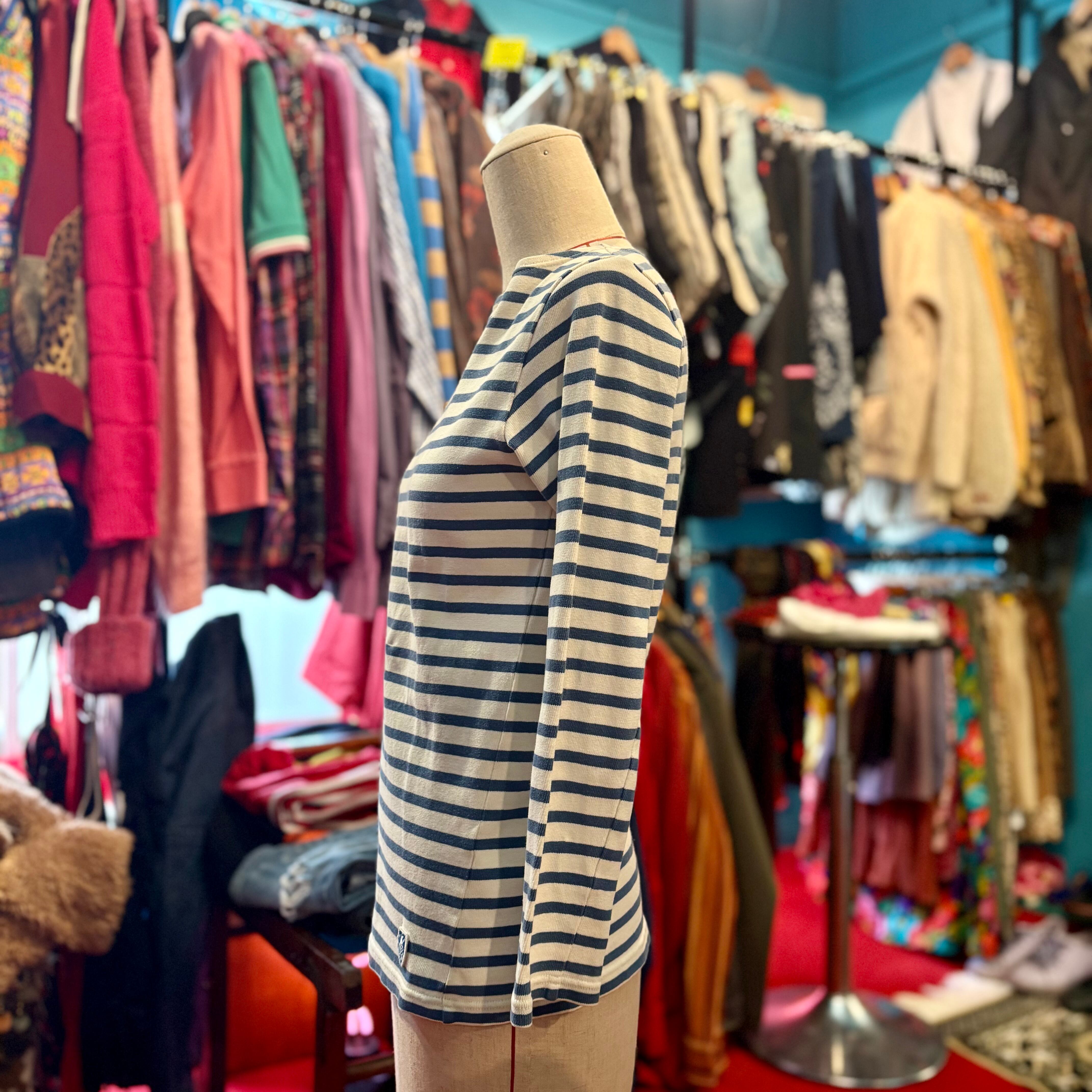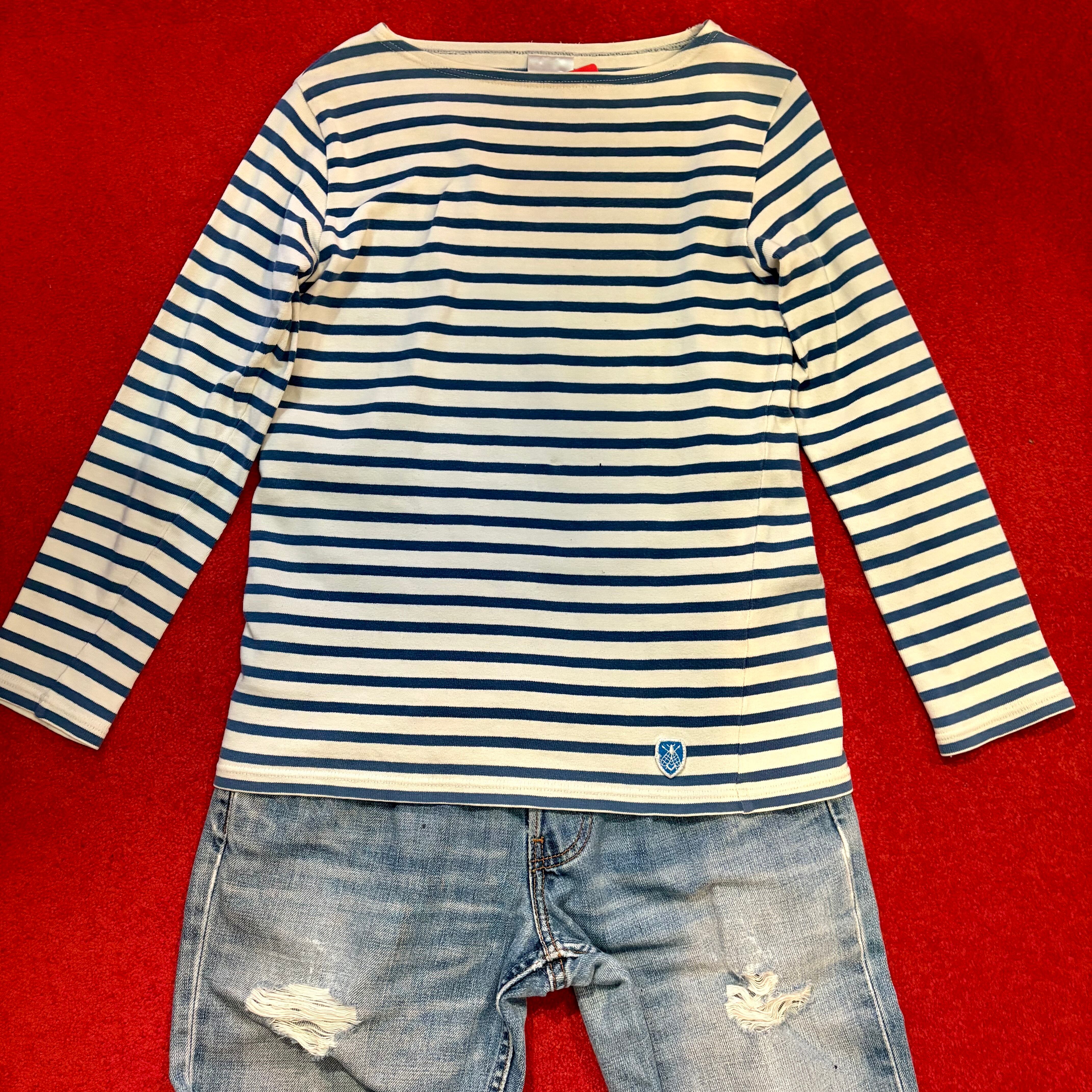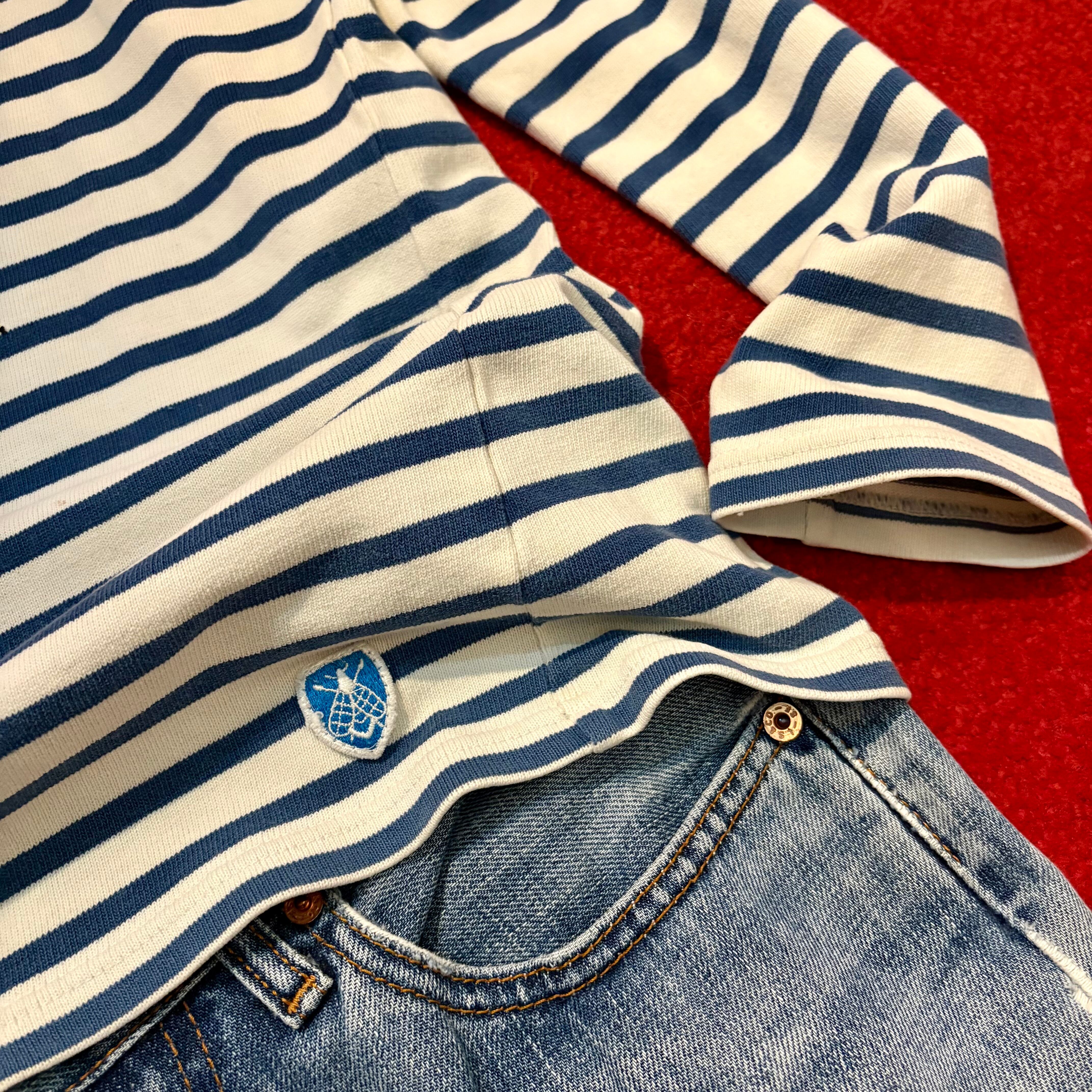 爽やかなブルー&ホワイトのボーダーTシャツ。