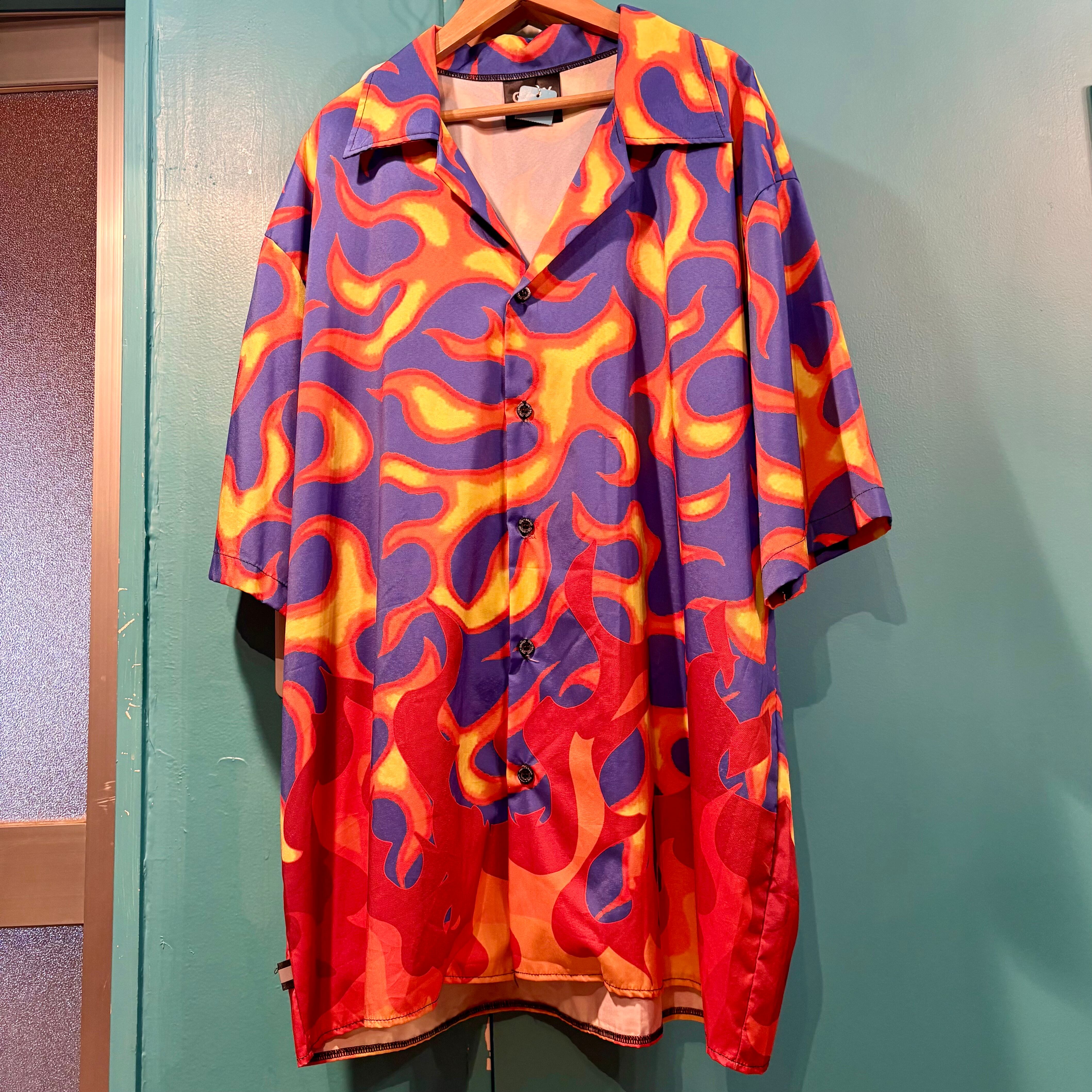 炎に狼、インパクト抜群なメンズ柄シャツ。