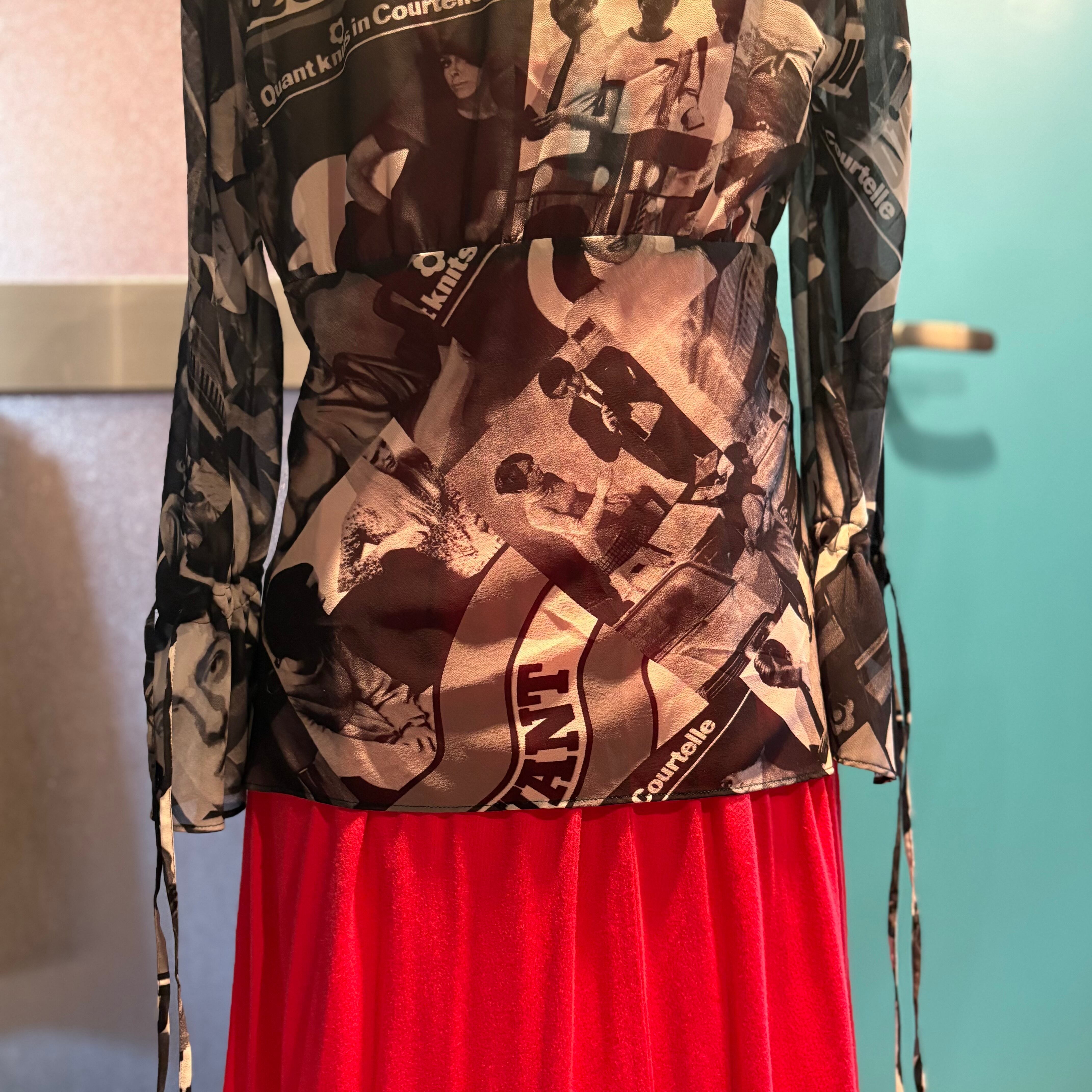 MARY QUANT LONDON モノトーン総柄シアートップス 黒