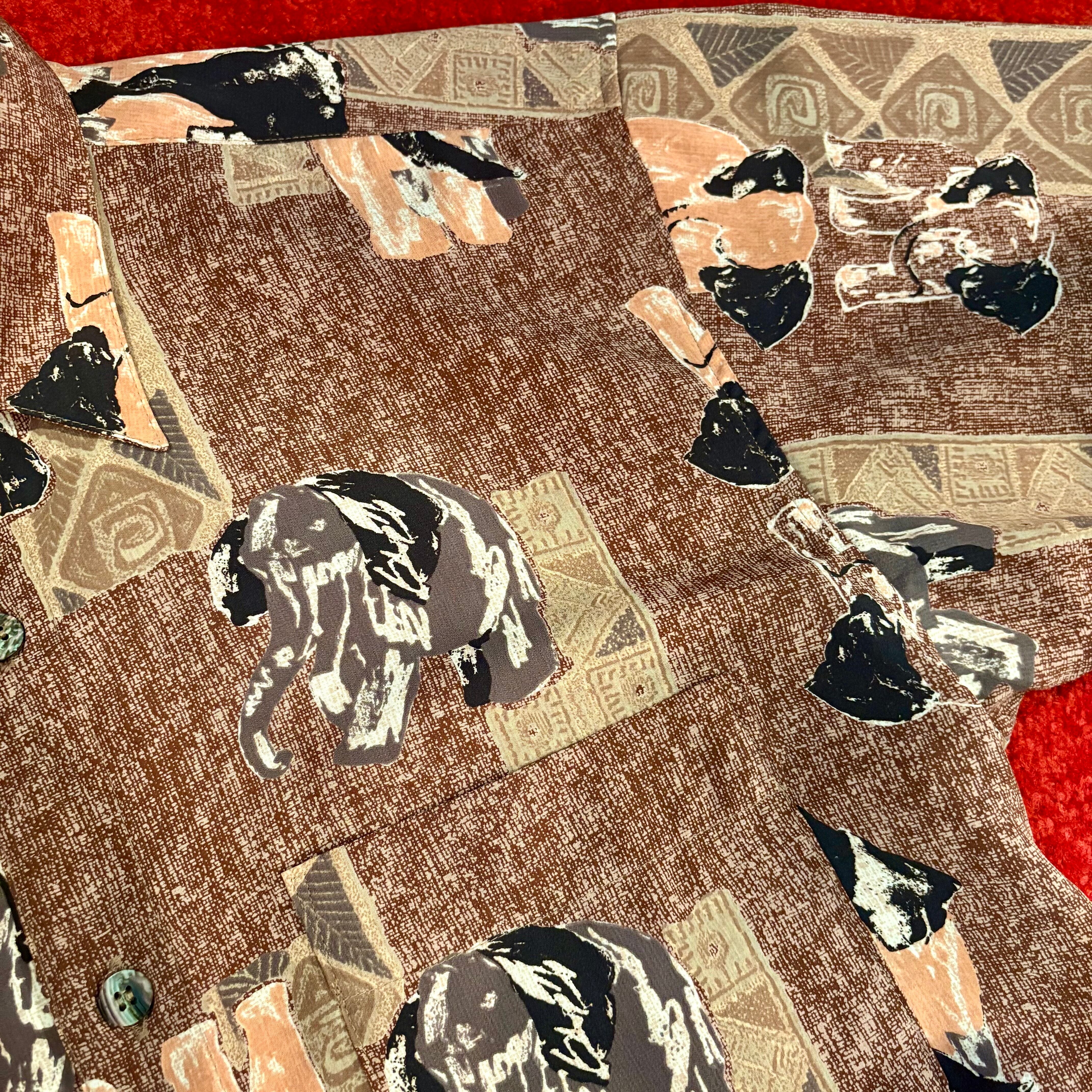 ぱっと見だとわかりにくいゾウさんの柄が良い感じのメンズ柄シャツです。