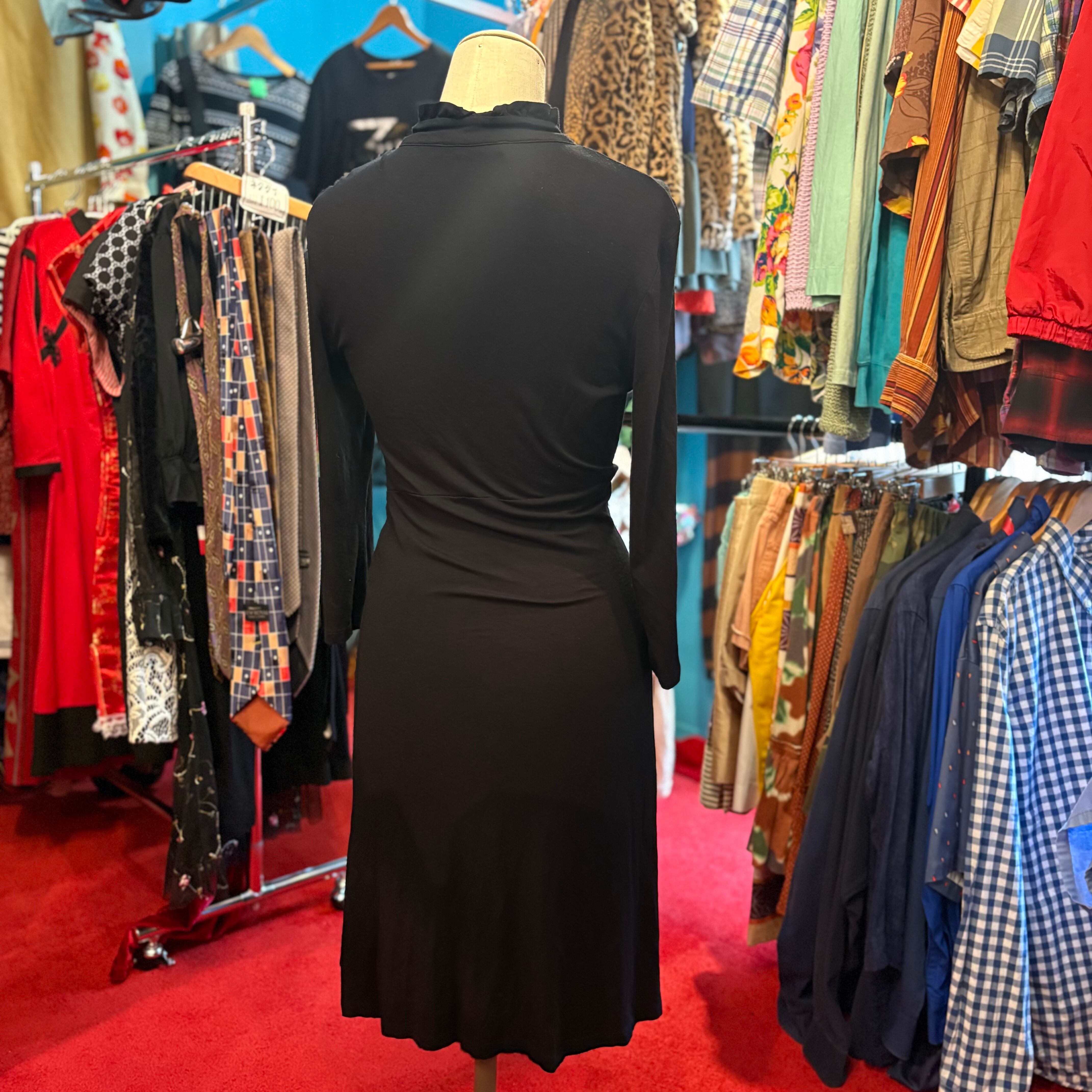 フリルスタンドカラー黒ニットワンピース リトルブラックドレス