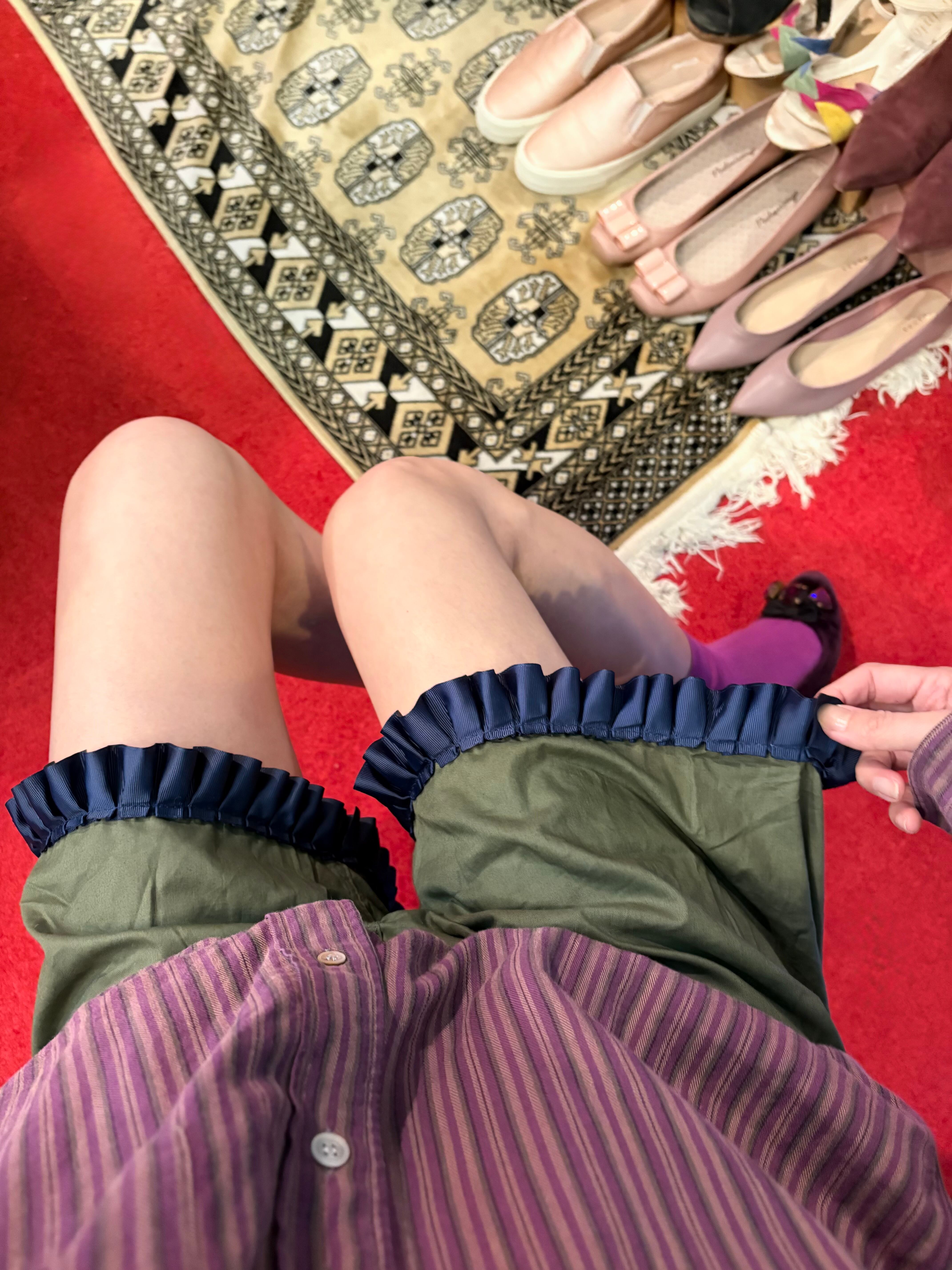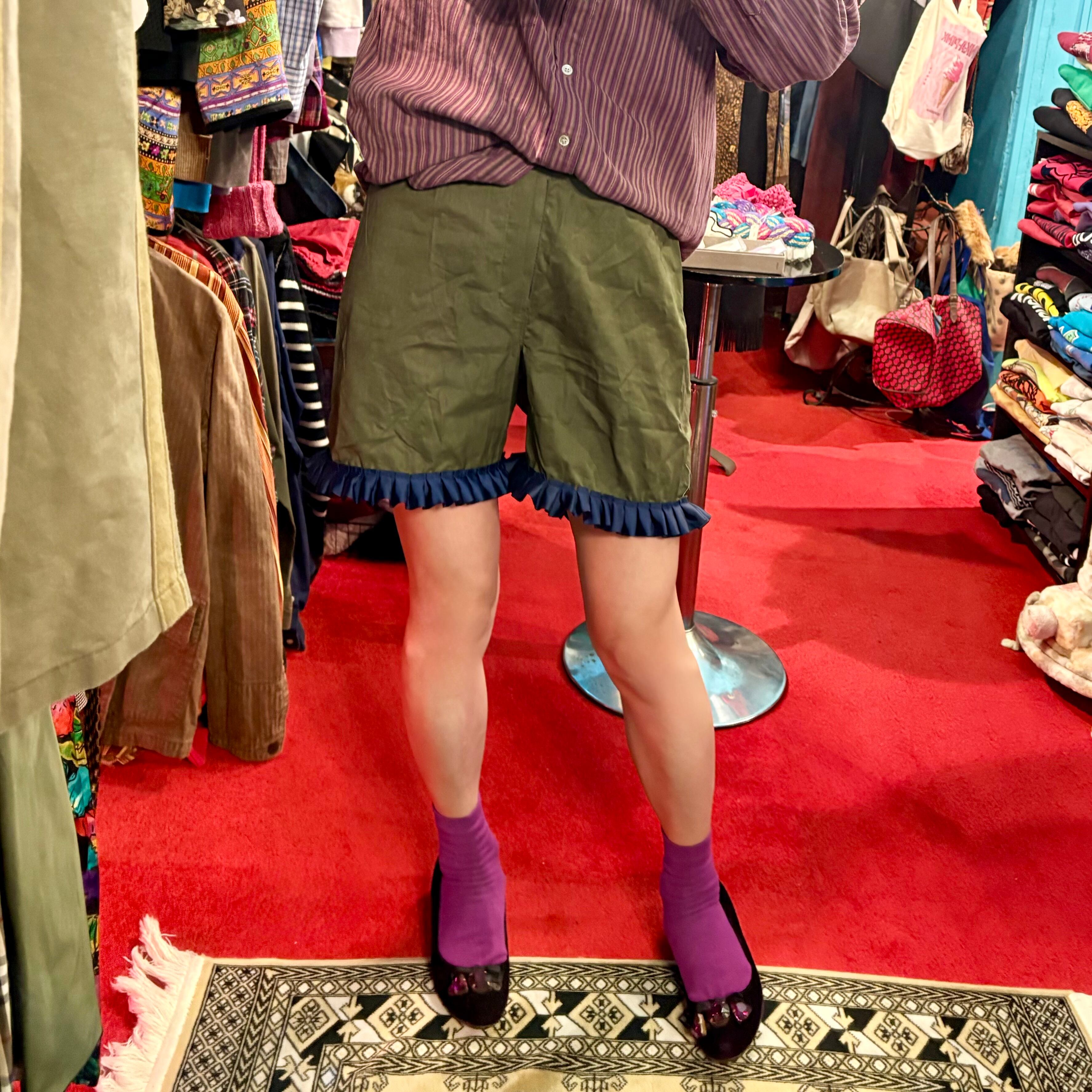 米軍用トランクス(新品dead stock)の裾にグログランリボンのフリルを付けたリメイクショーツ。