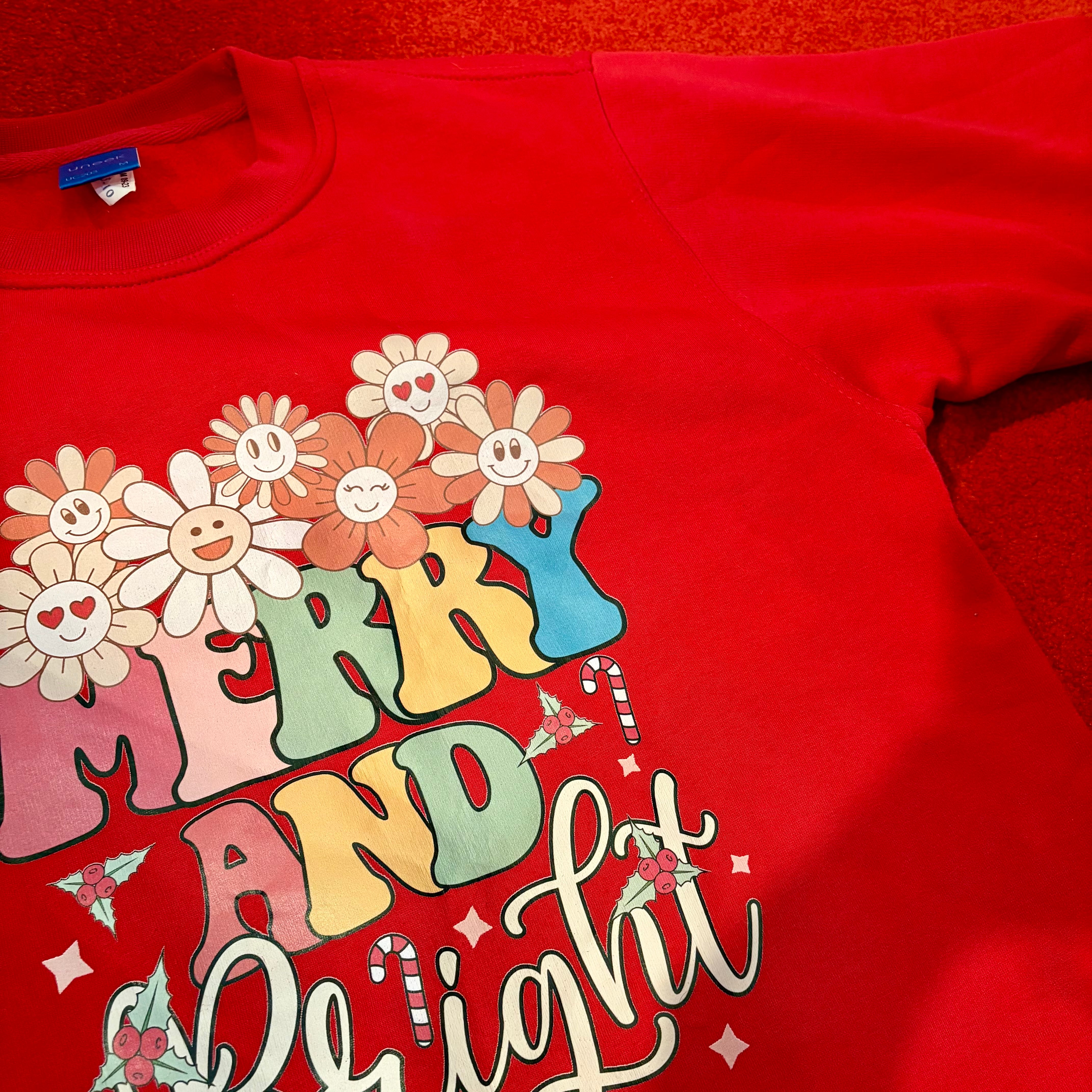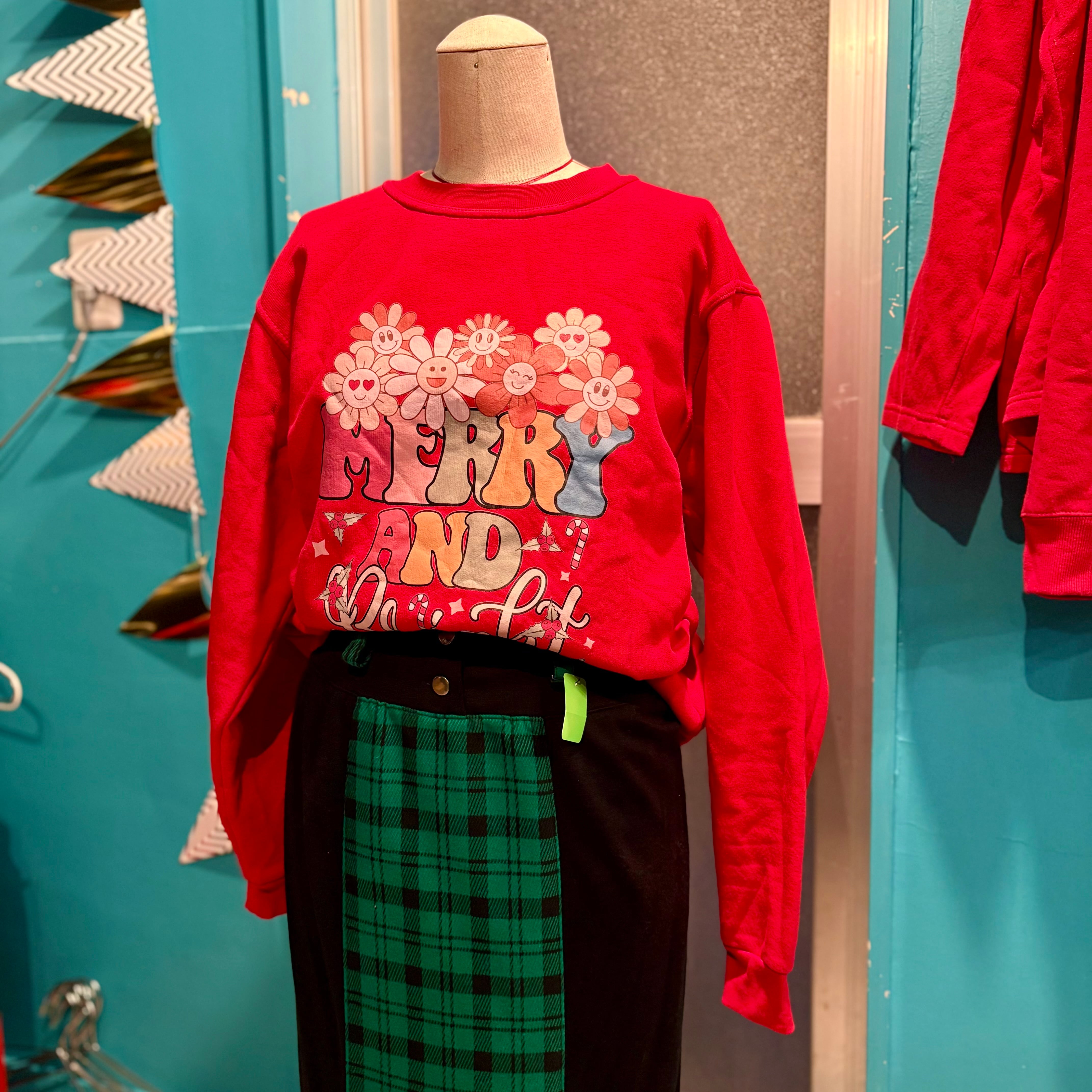 POPなお花の絵柄がキュートなクリスマススモチーフのトレーナー。