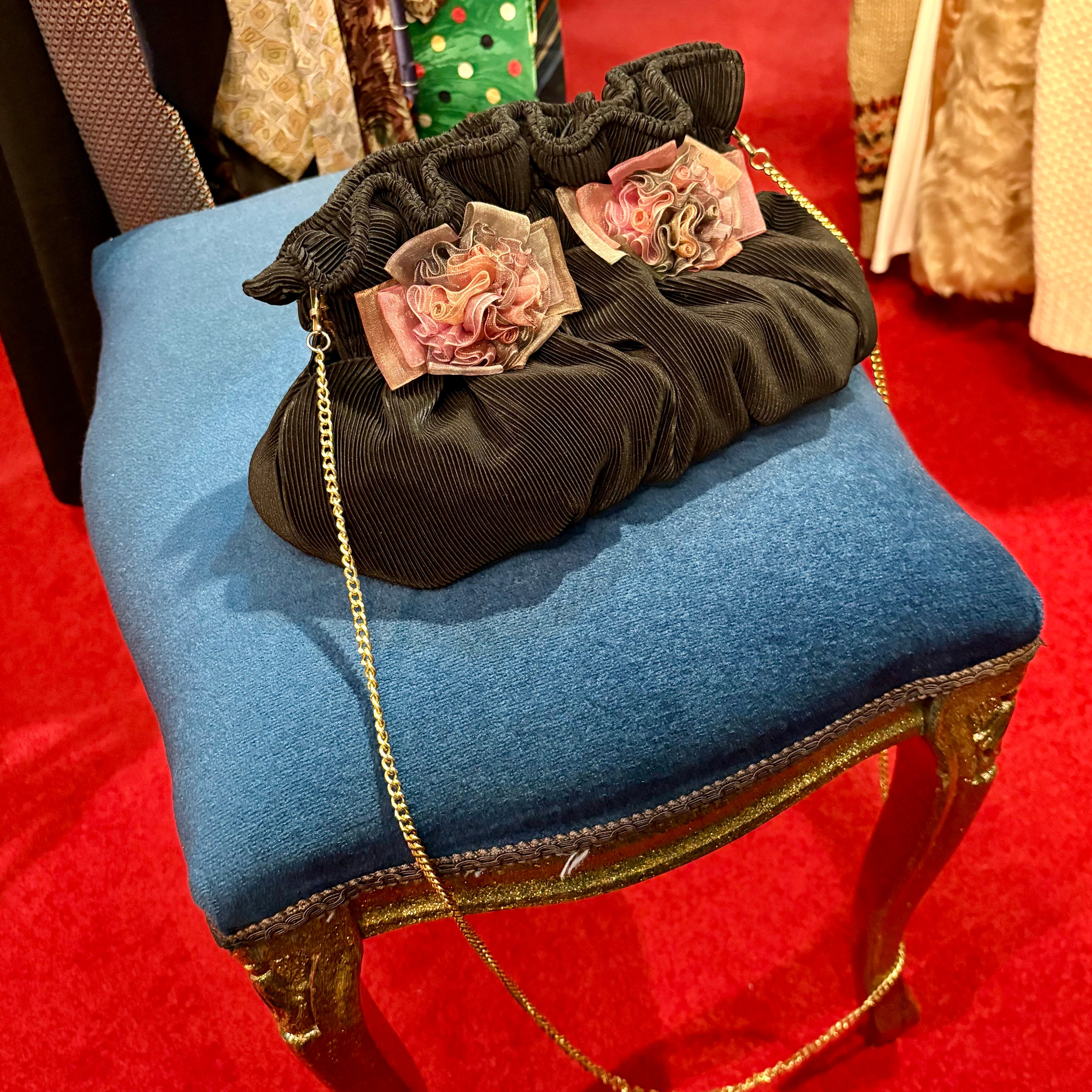 チェーンショルダーパーティバッグ 花 薔薇 クラッチバッグ 黒 巾着