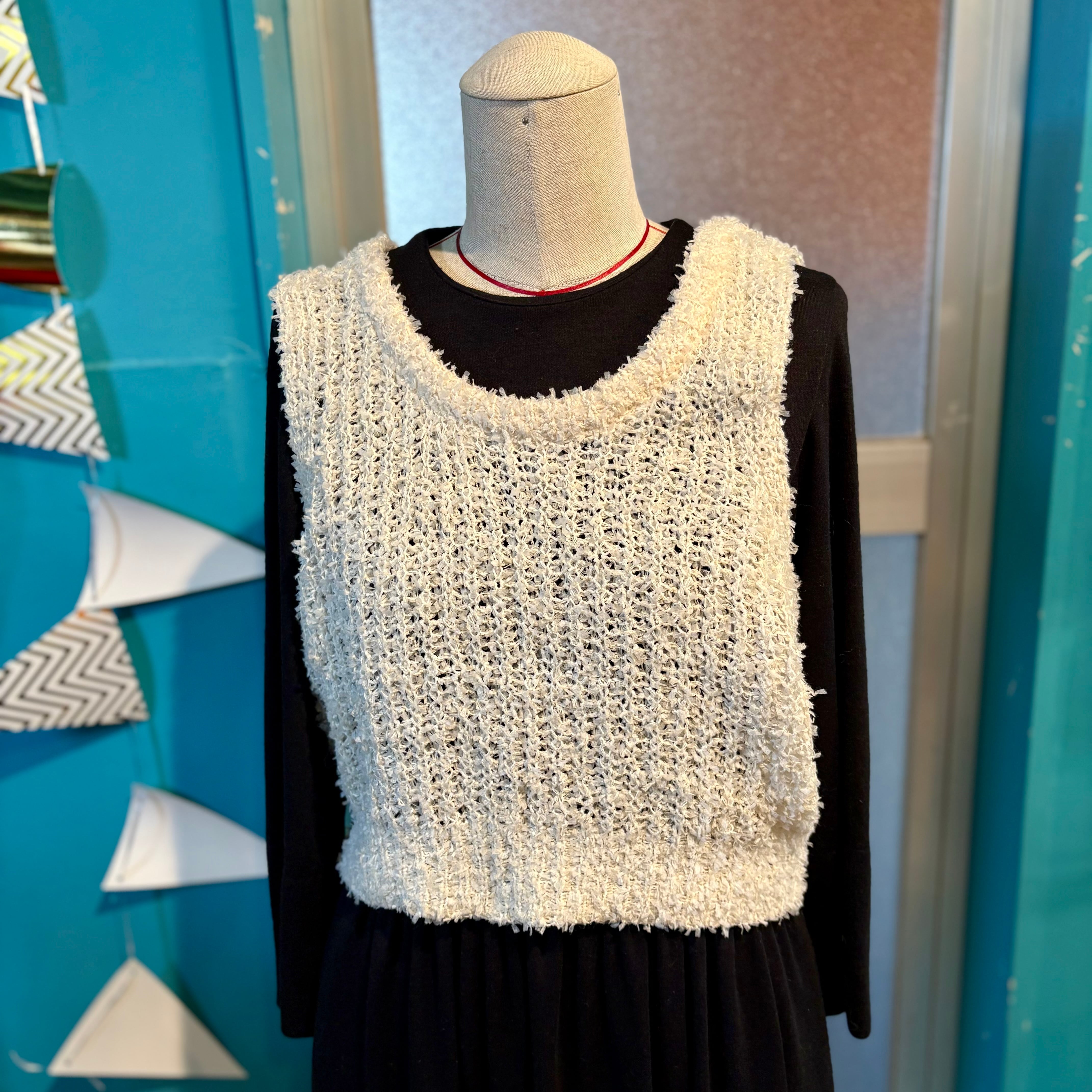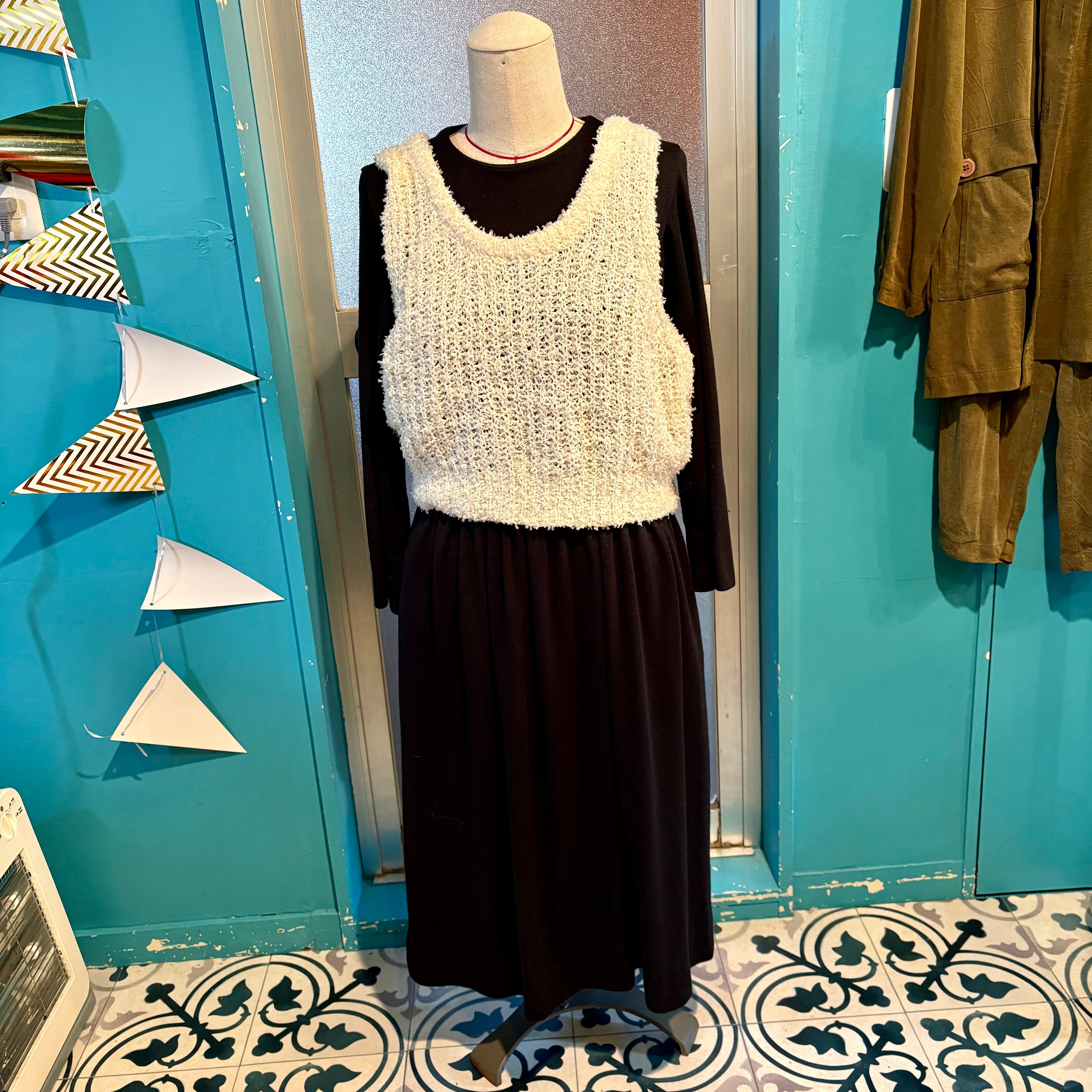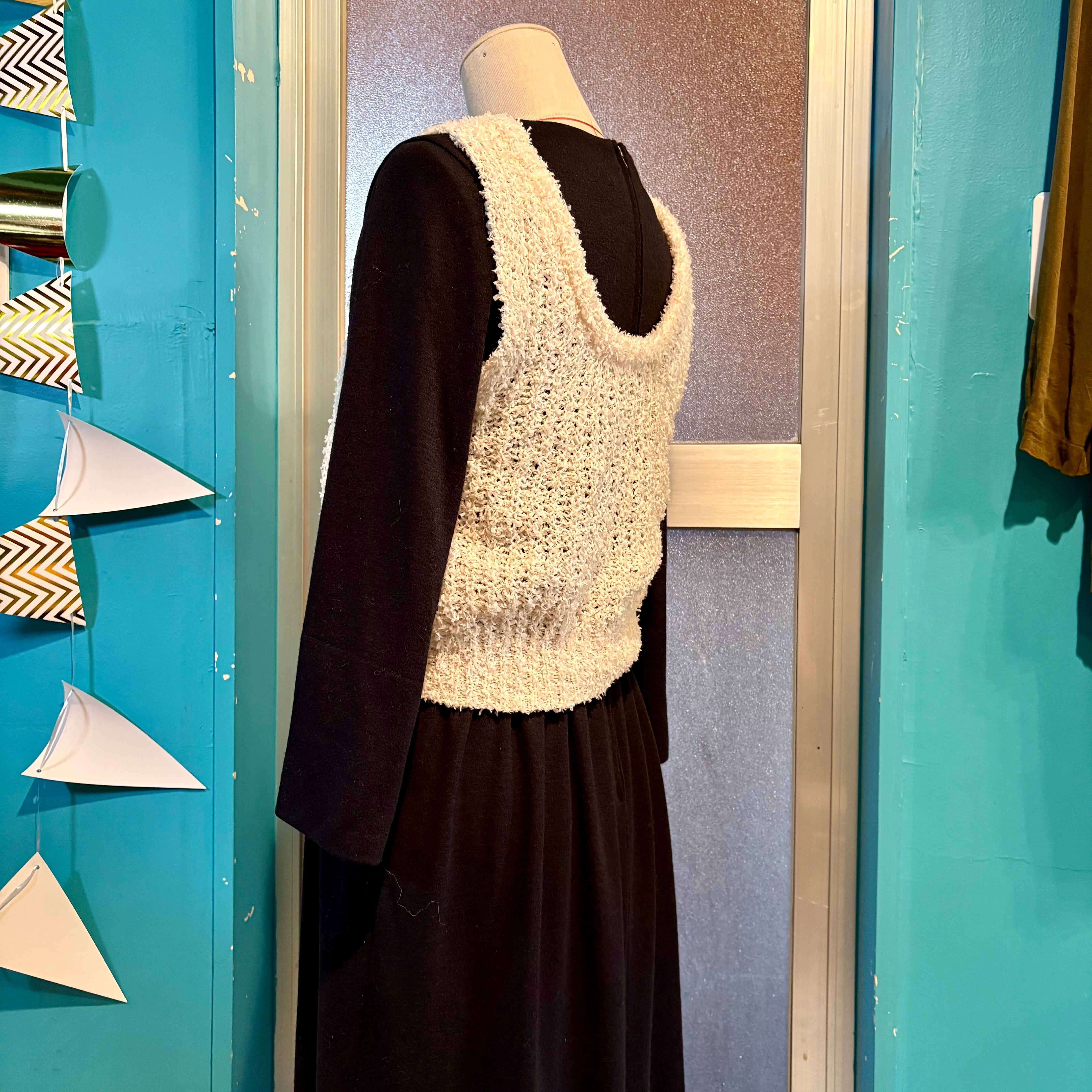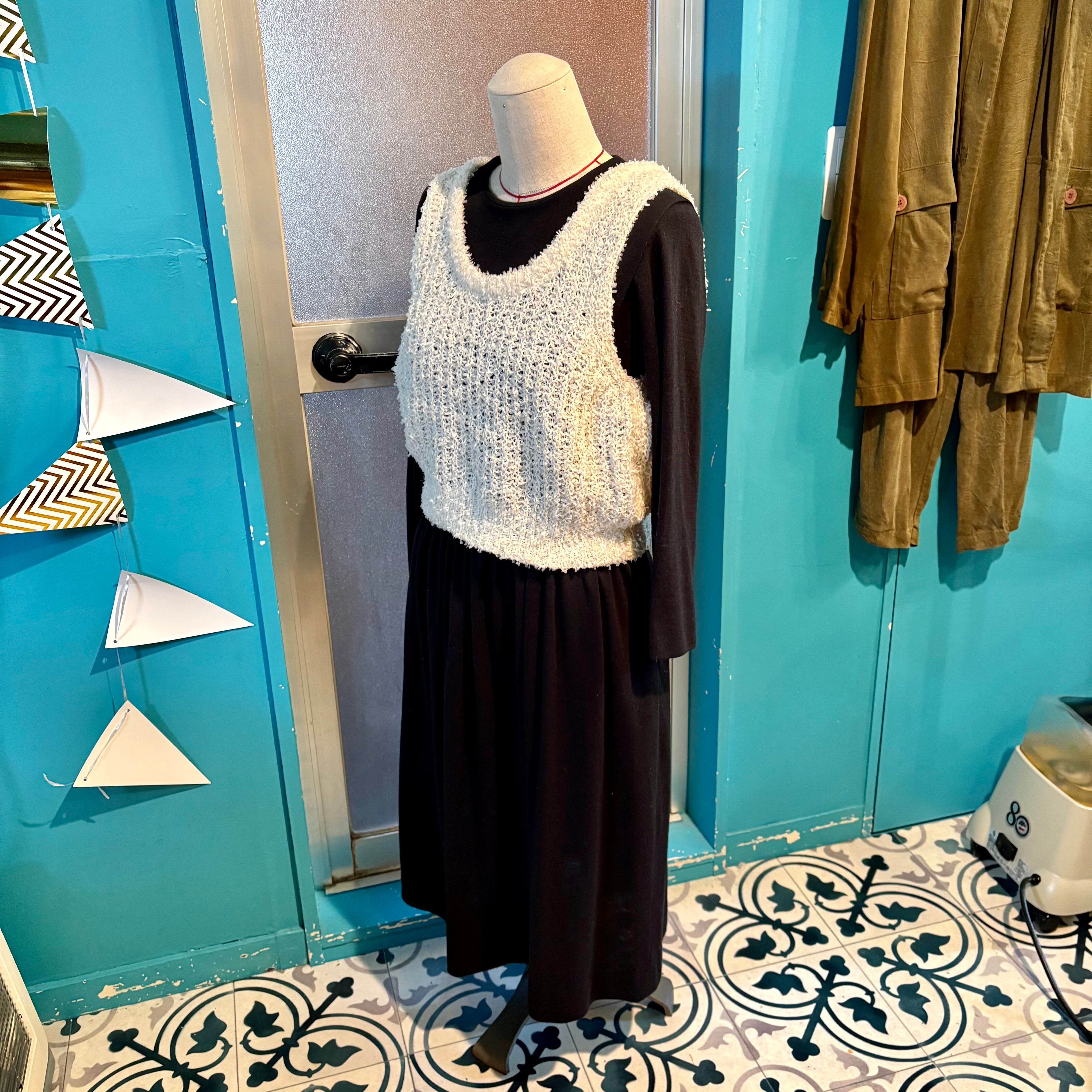 ざっくりとした編み目のニットベスト。
