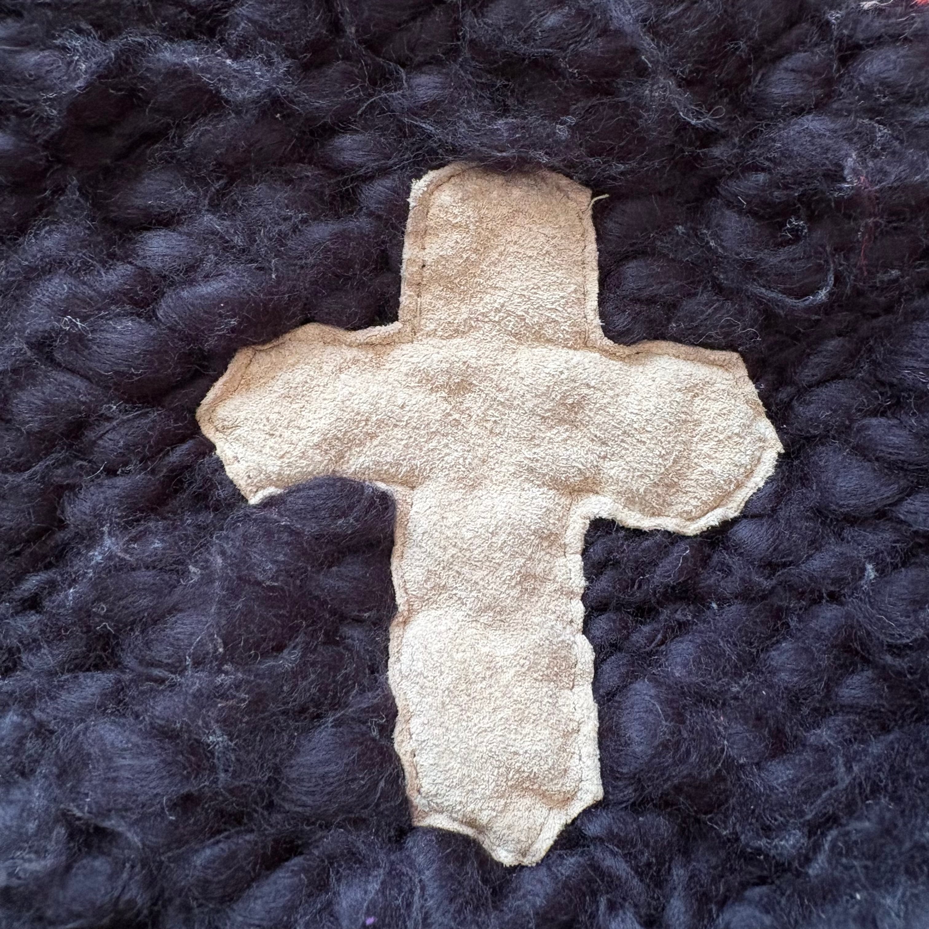 ベージュのレザーのクロスがアクセント。