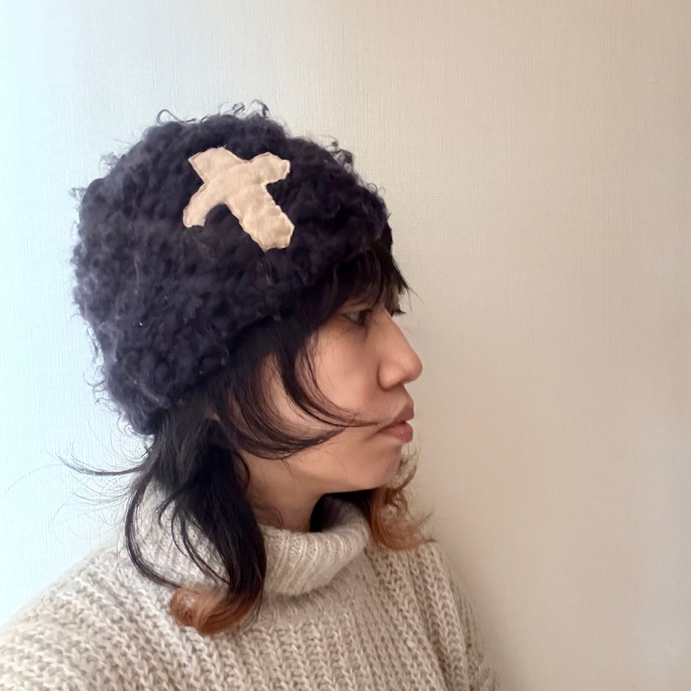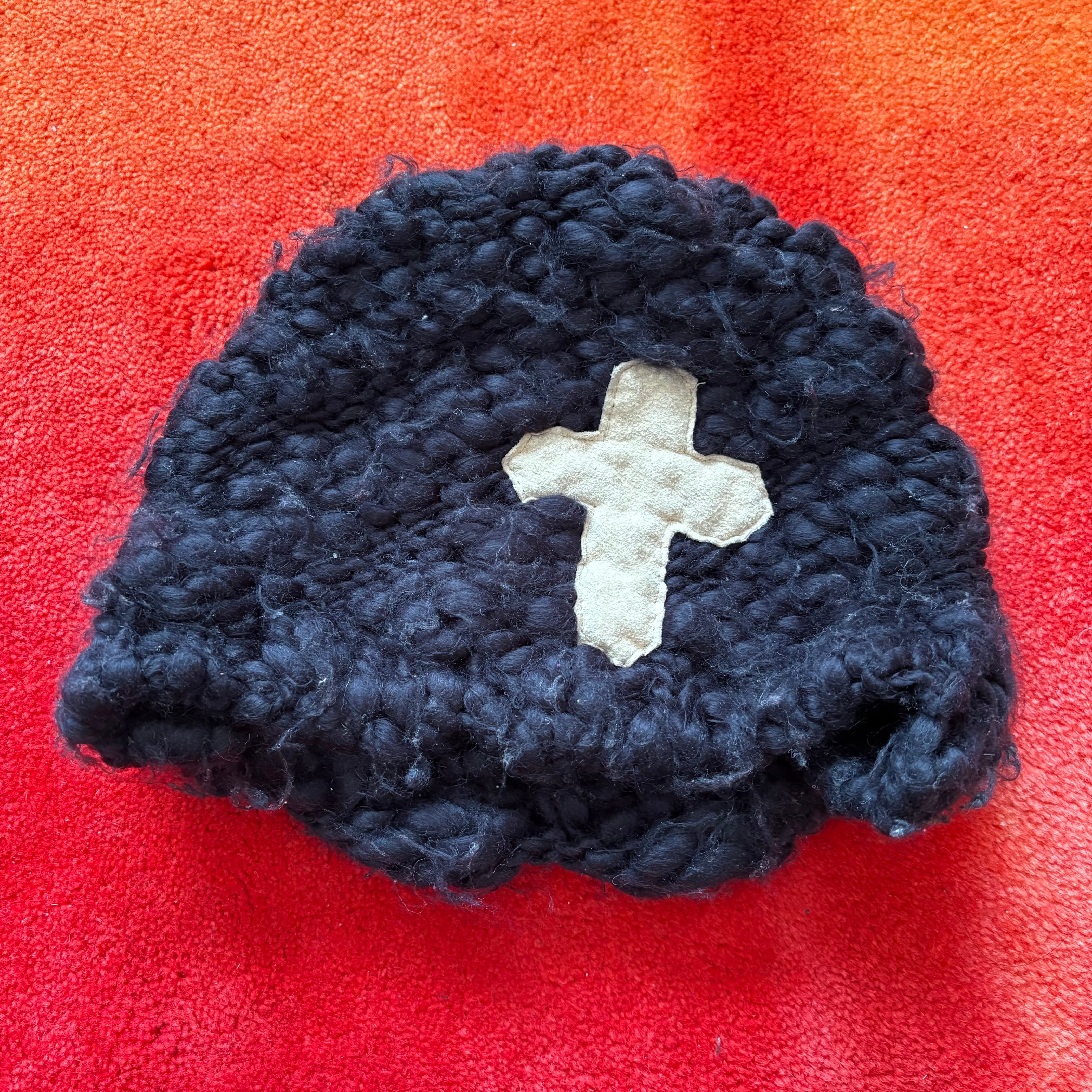 ニット帽 ビーニー クロスレザーパッチ 黒 帽子