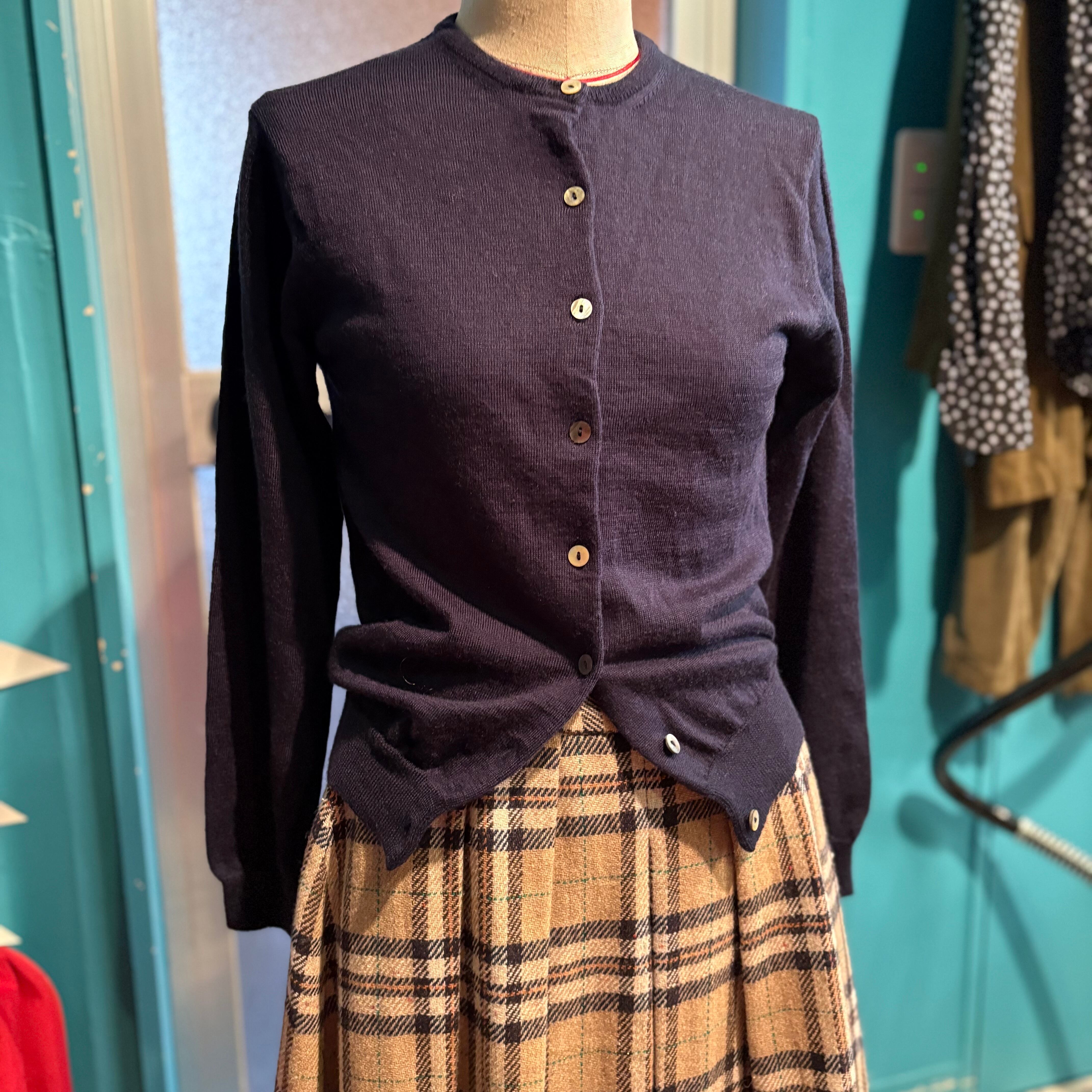 プラスチックではなく貝ボタンを使用している点など、シンプルだからこそ際立つ上質感があります。