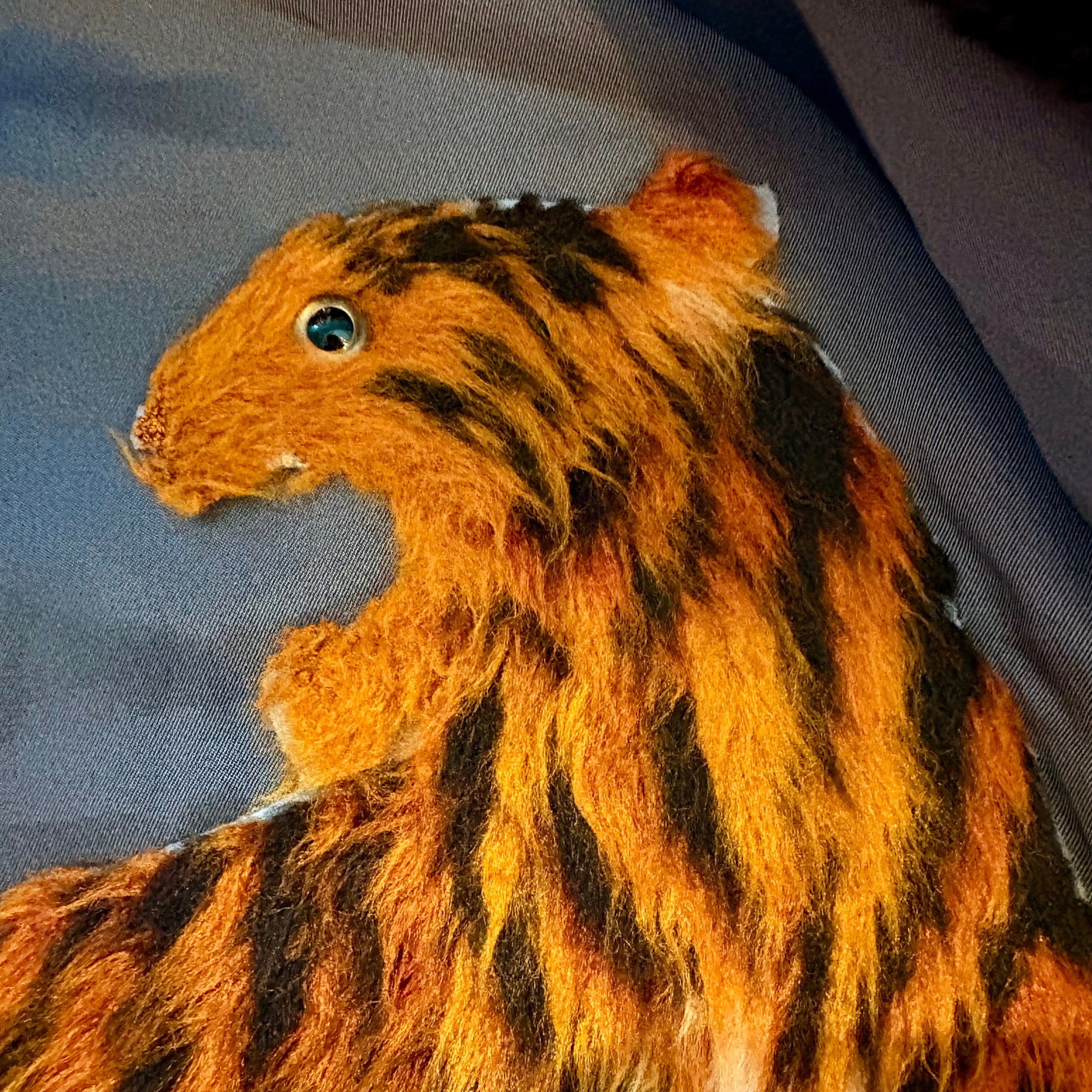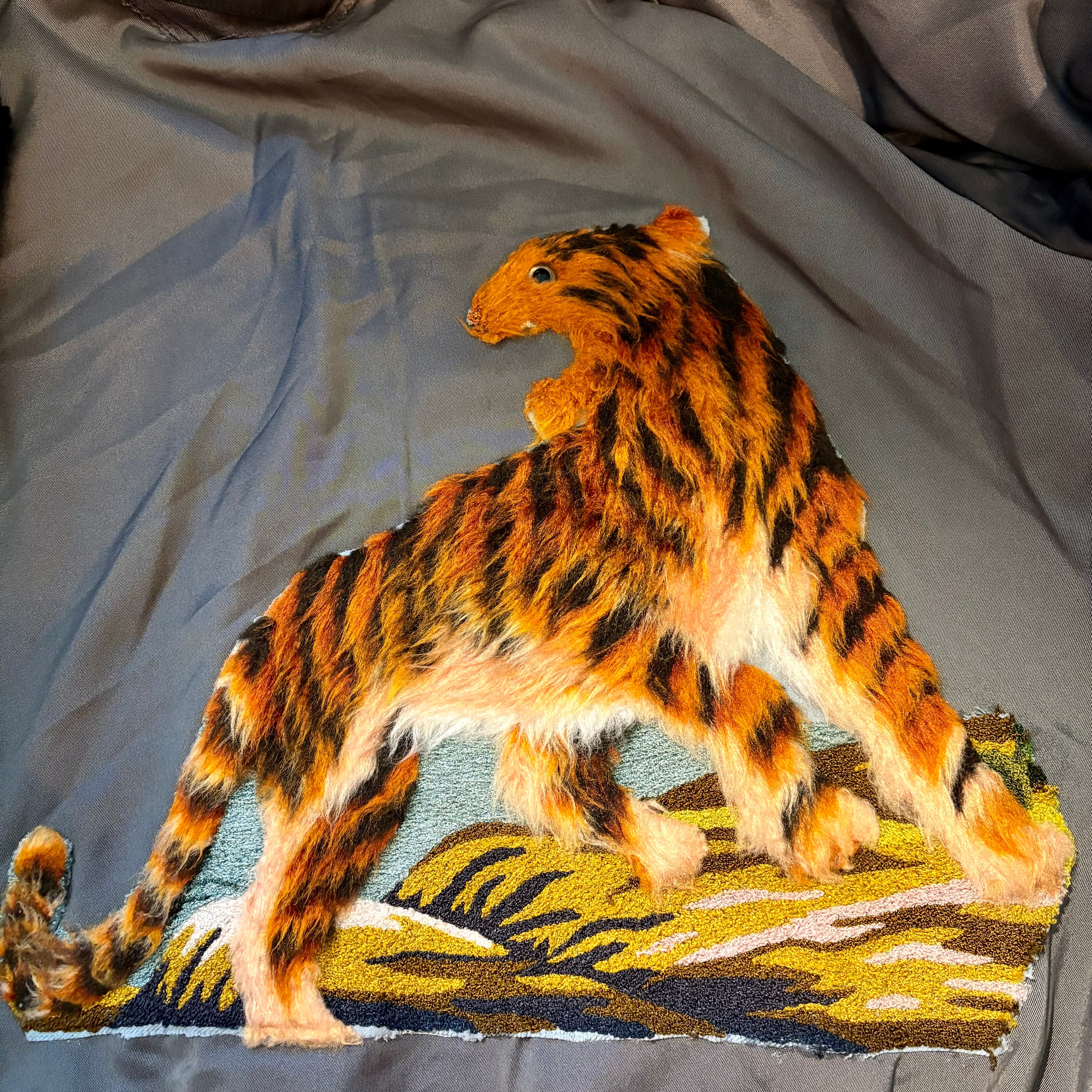 若干とぼけた表情の虎(寅)のアップリケが背中の内側に貼ってあるのですが、どう考えても元々ついている物ではなく、いつかの持ち主がカスタムしたものと思われます。