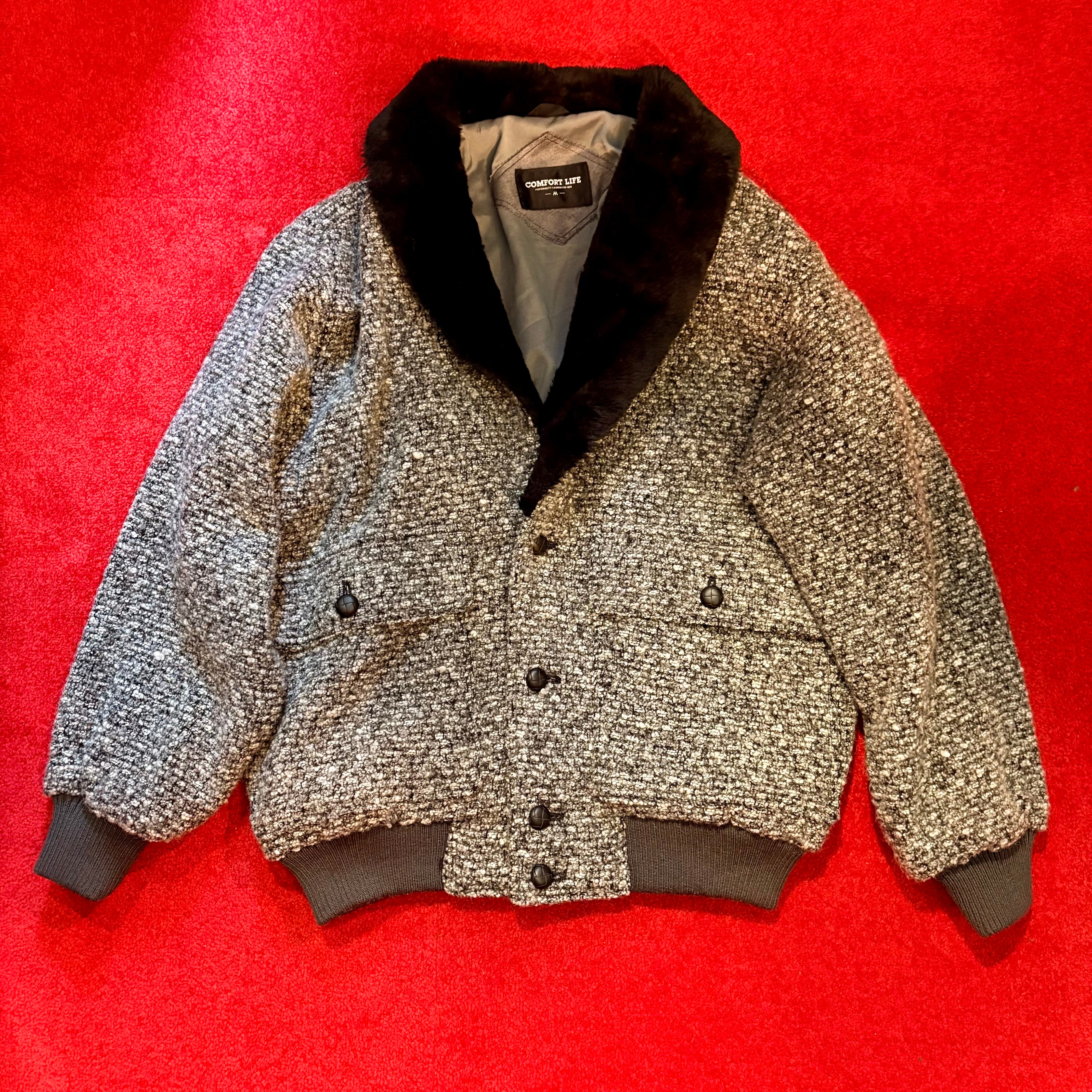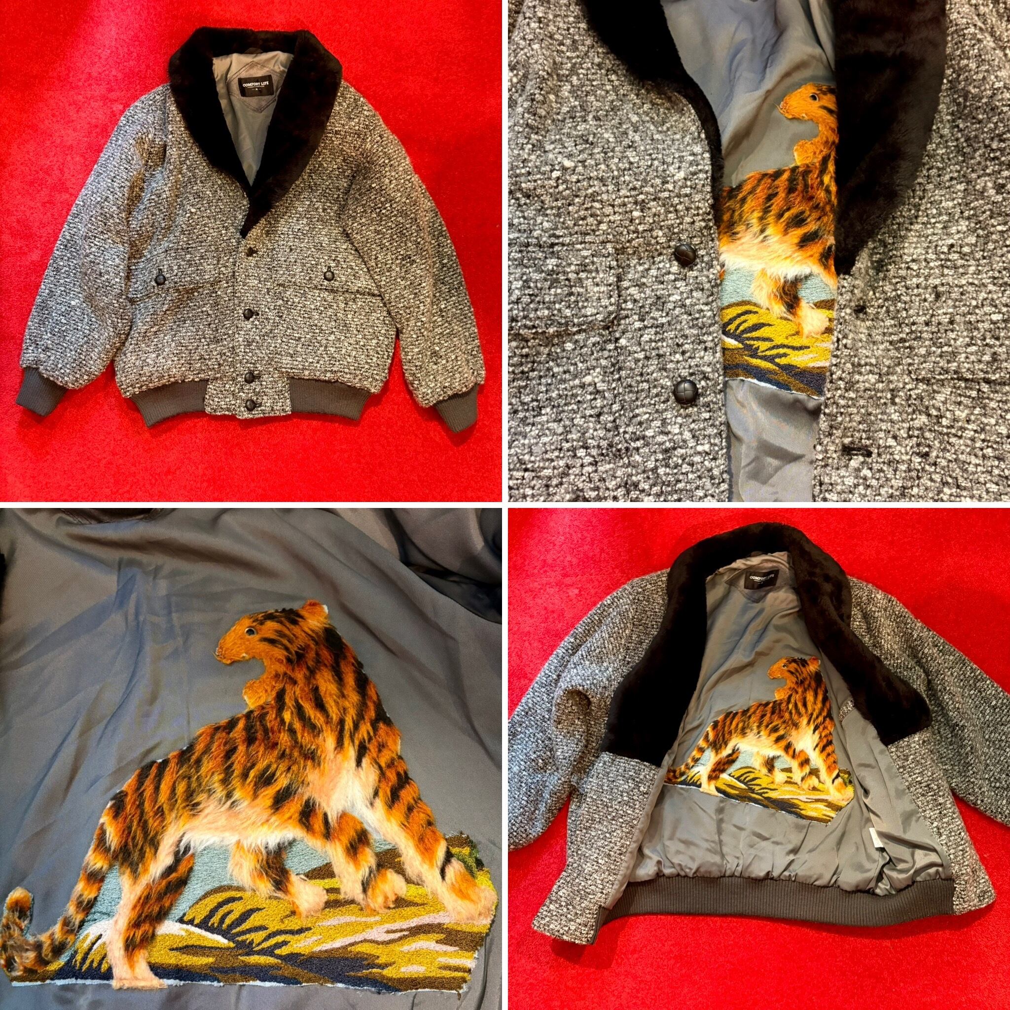 men's 背中で虎を飼うジャケット グレー ファー襟 ブルゾン