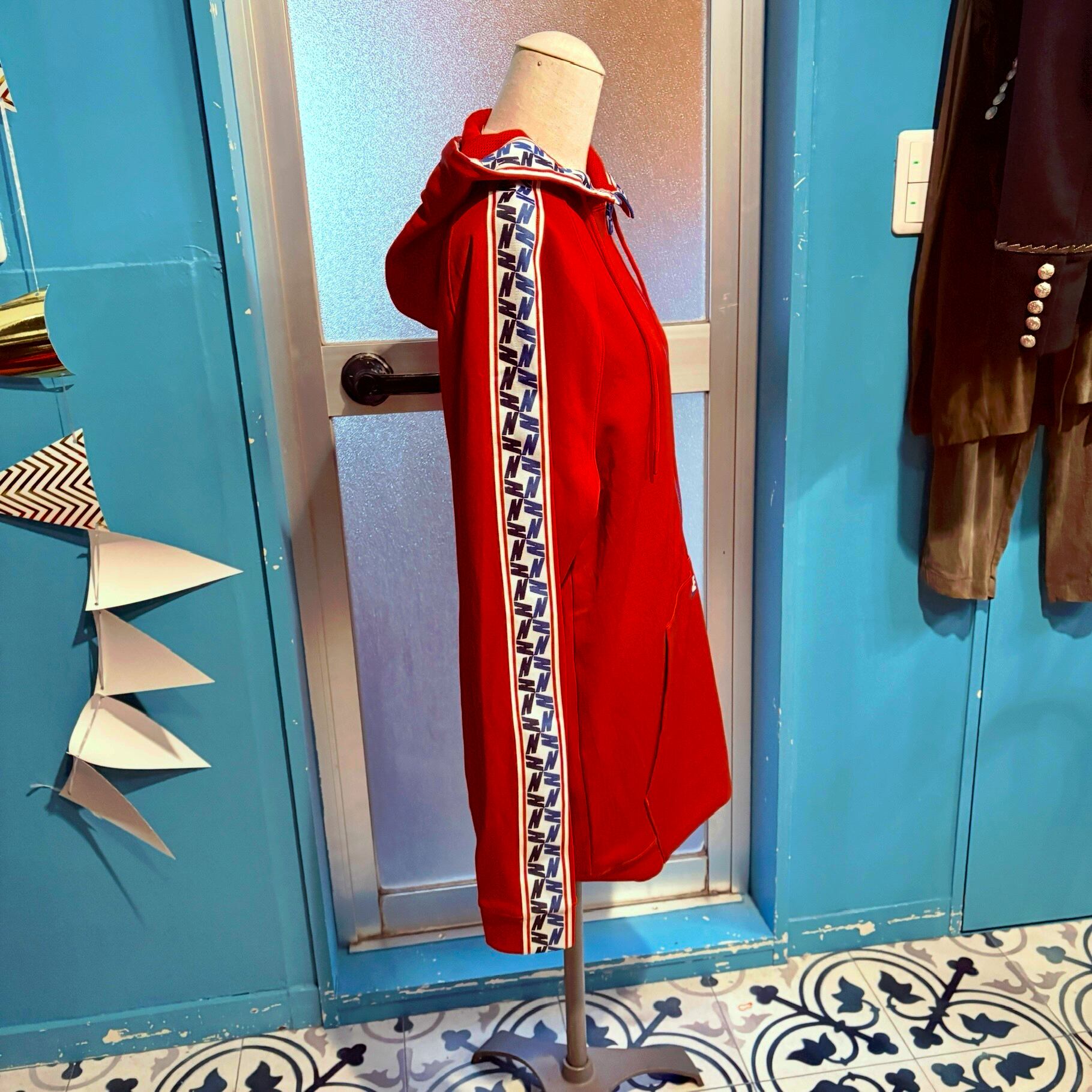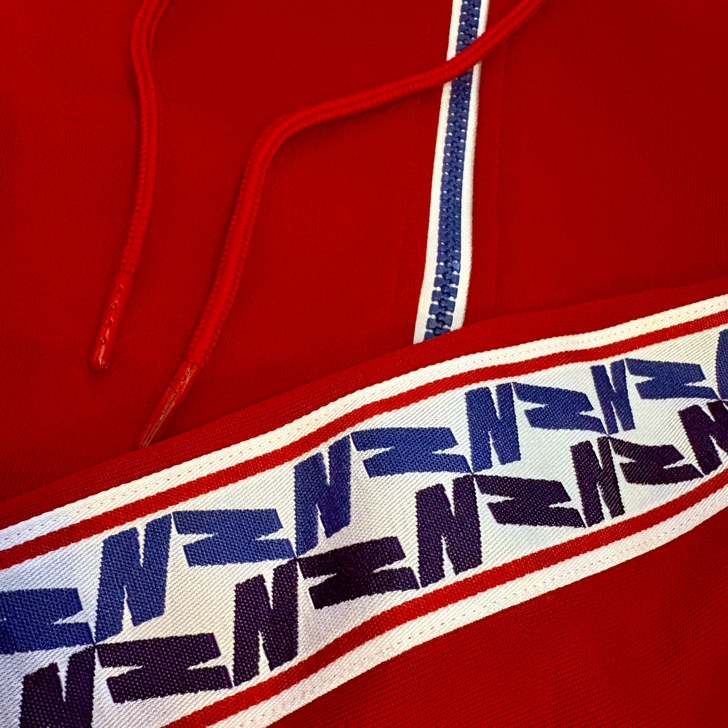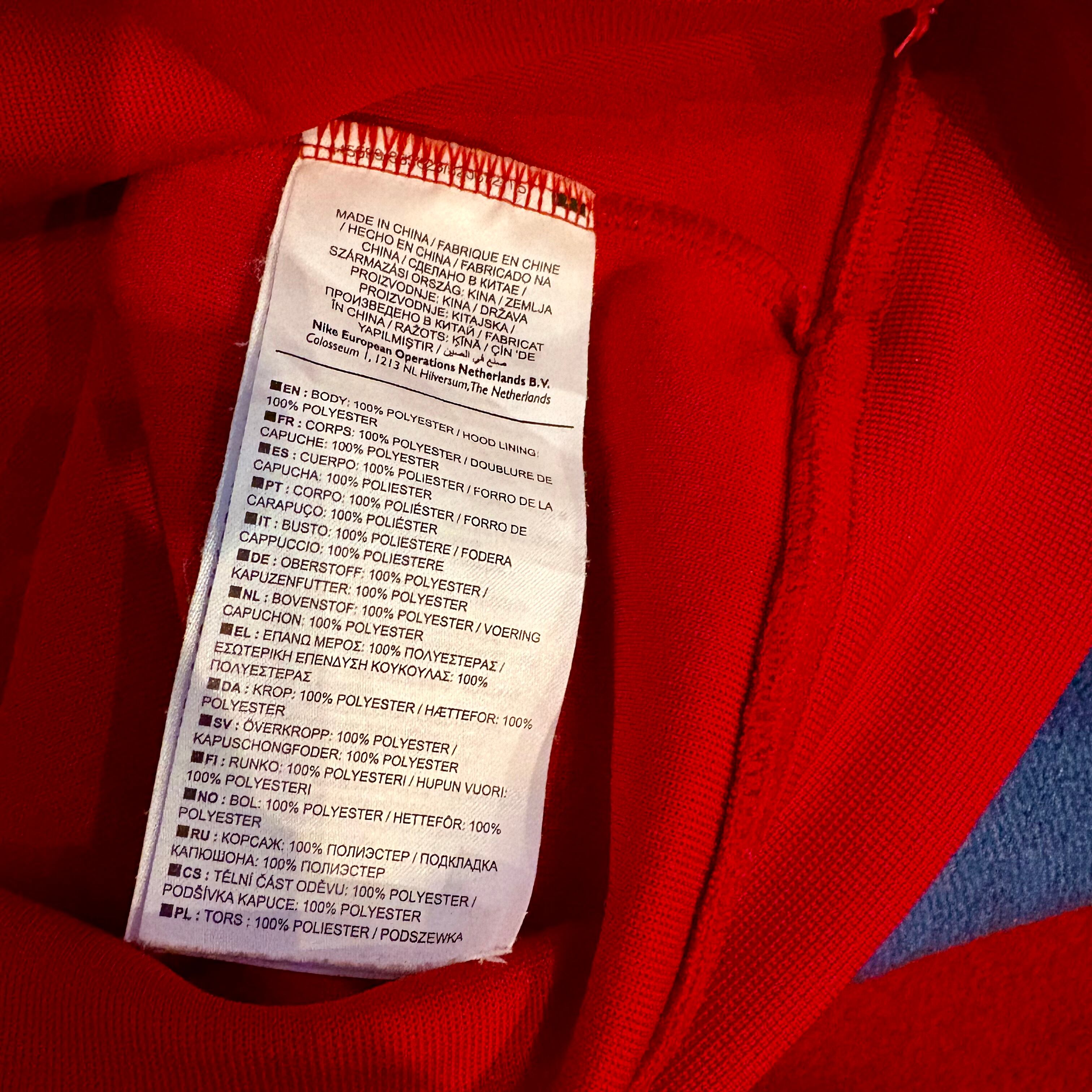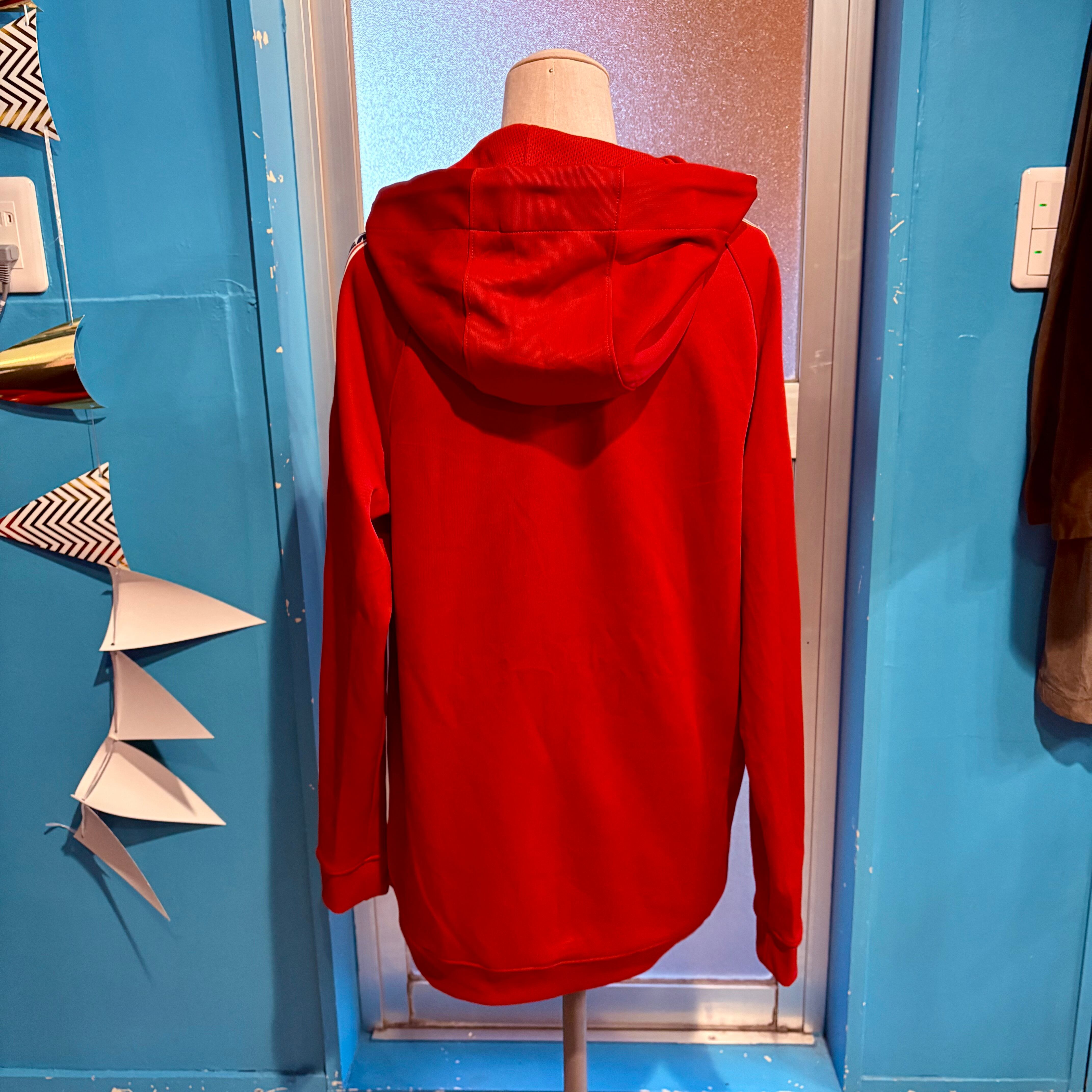 長めのハーフジップがめずらしい、あまり見たことないタイプのNIKEの真っ赤なプルオーバーパーカー。