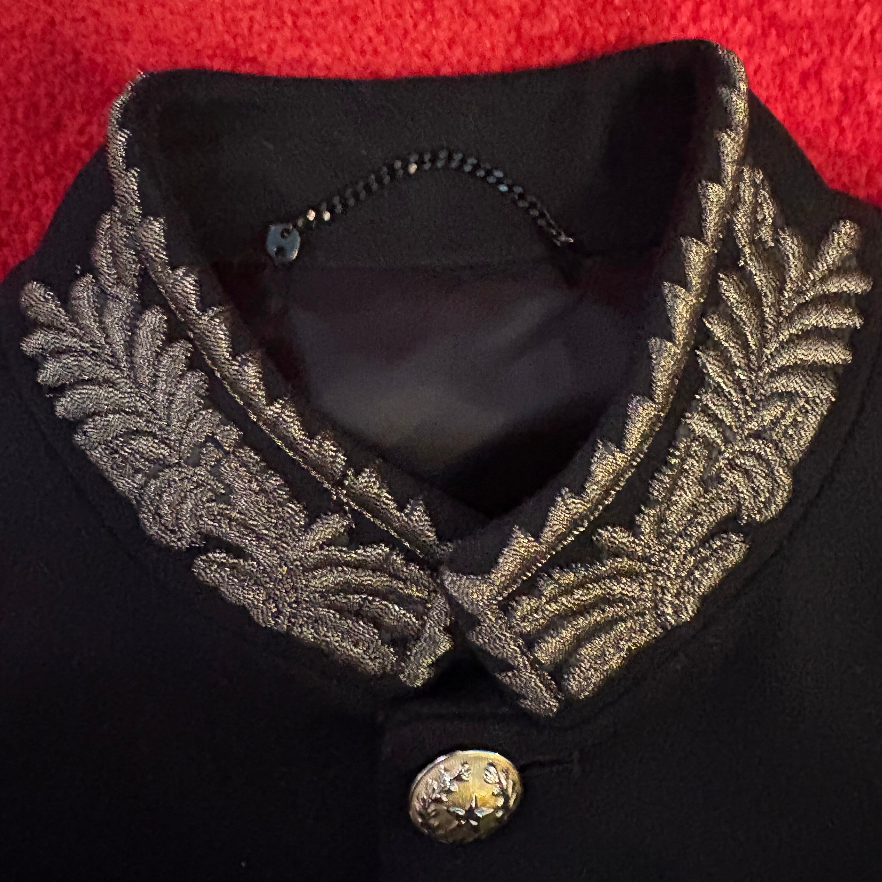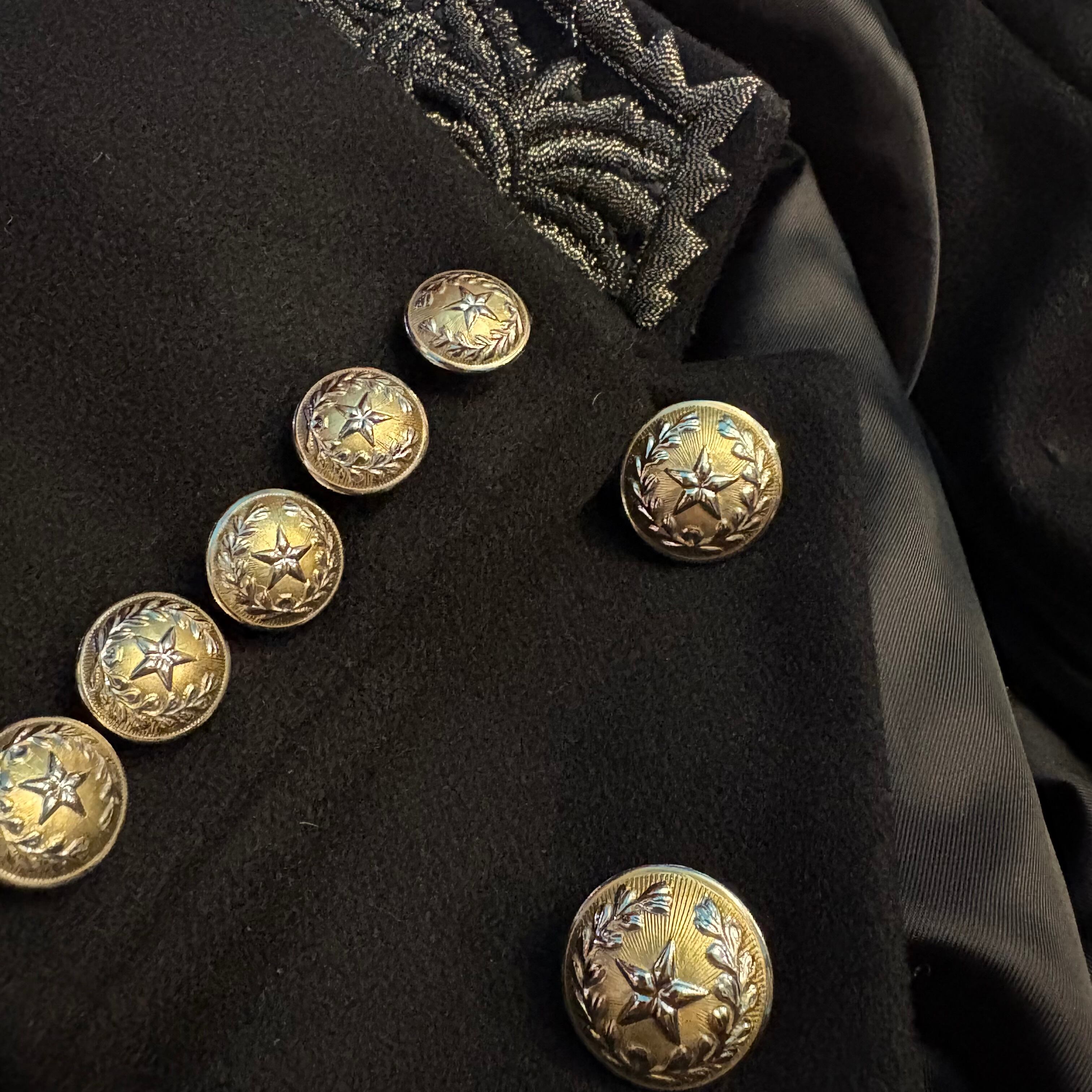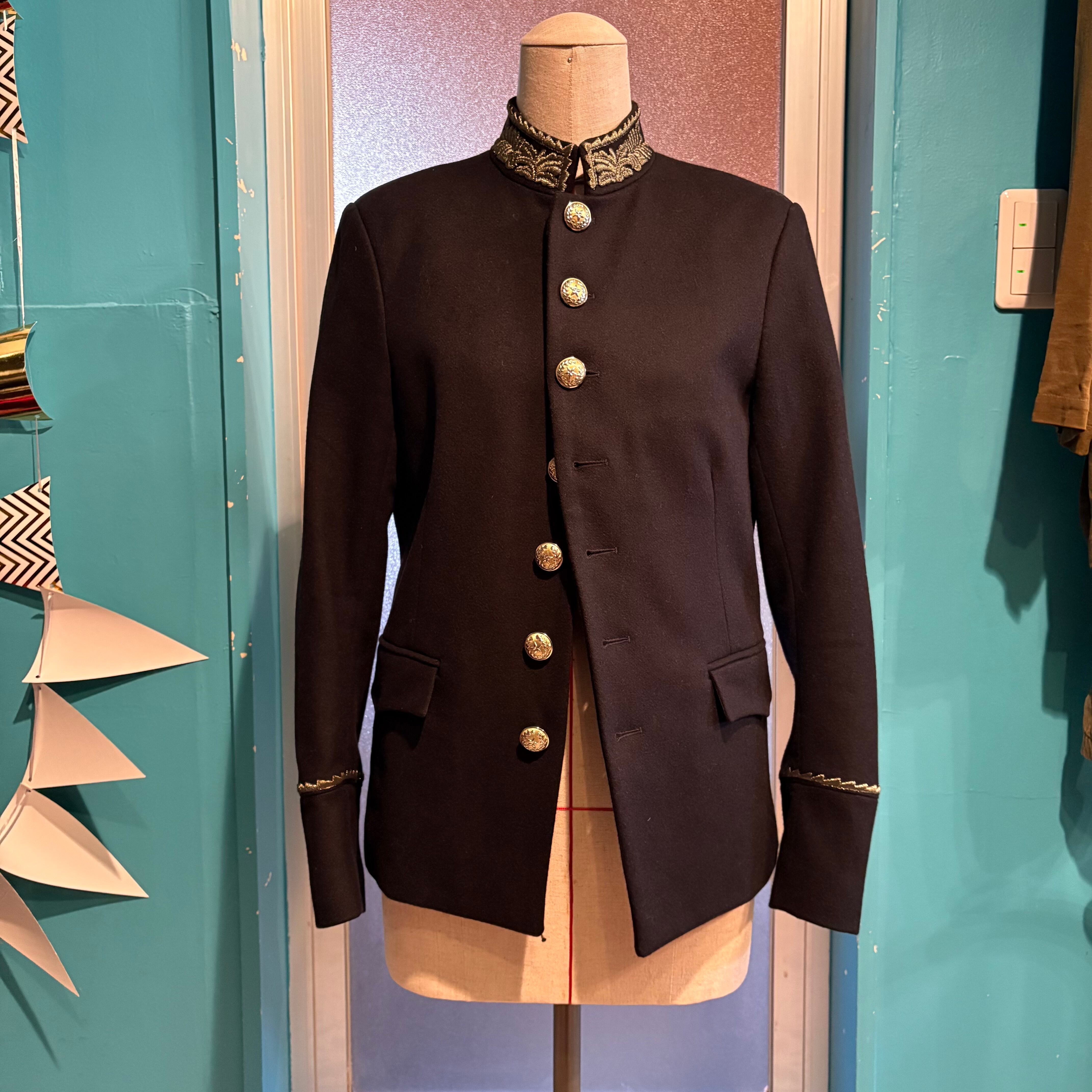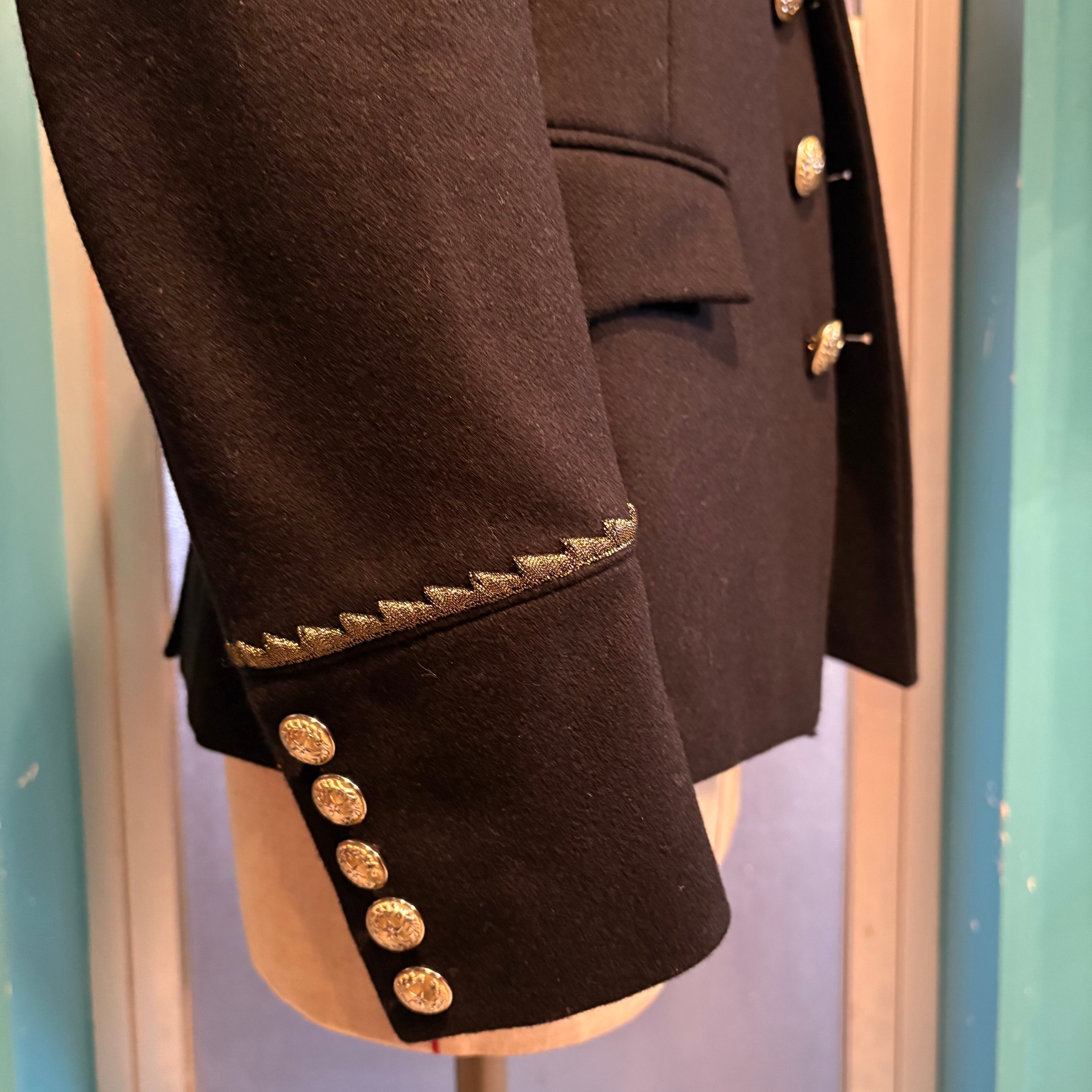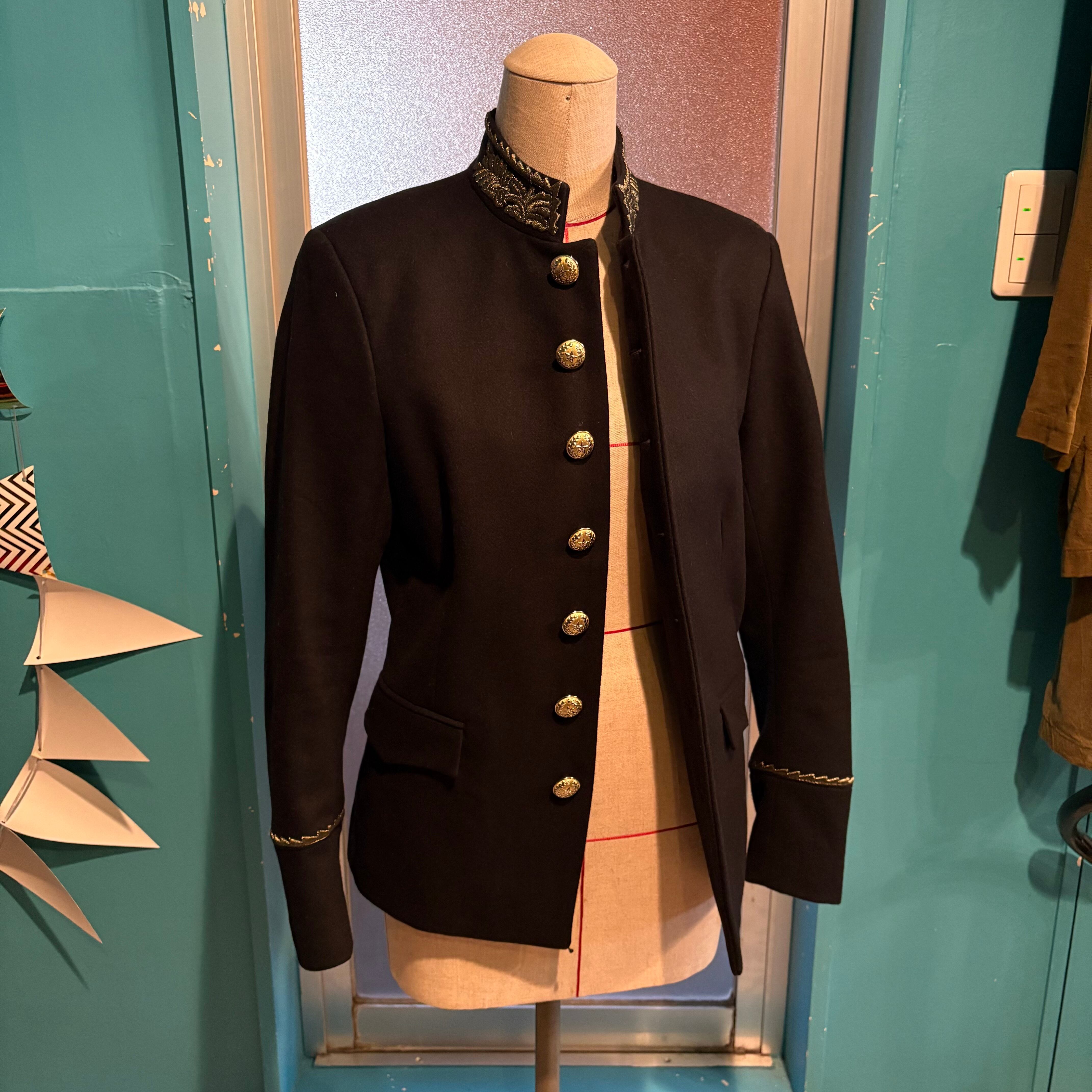 襟元の刺繍や袖のパイピング、ボタン、どこをとっても流石の存在感を放つ主役ジャケットです。