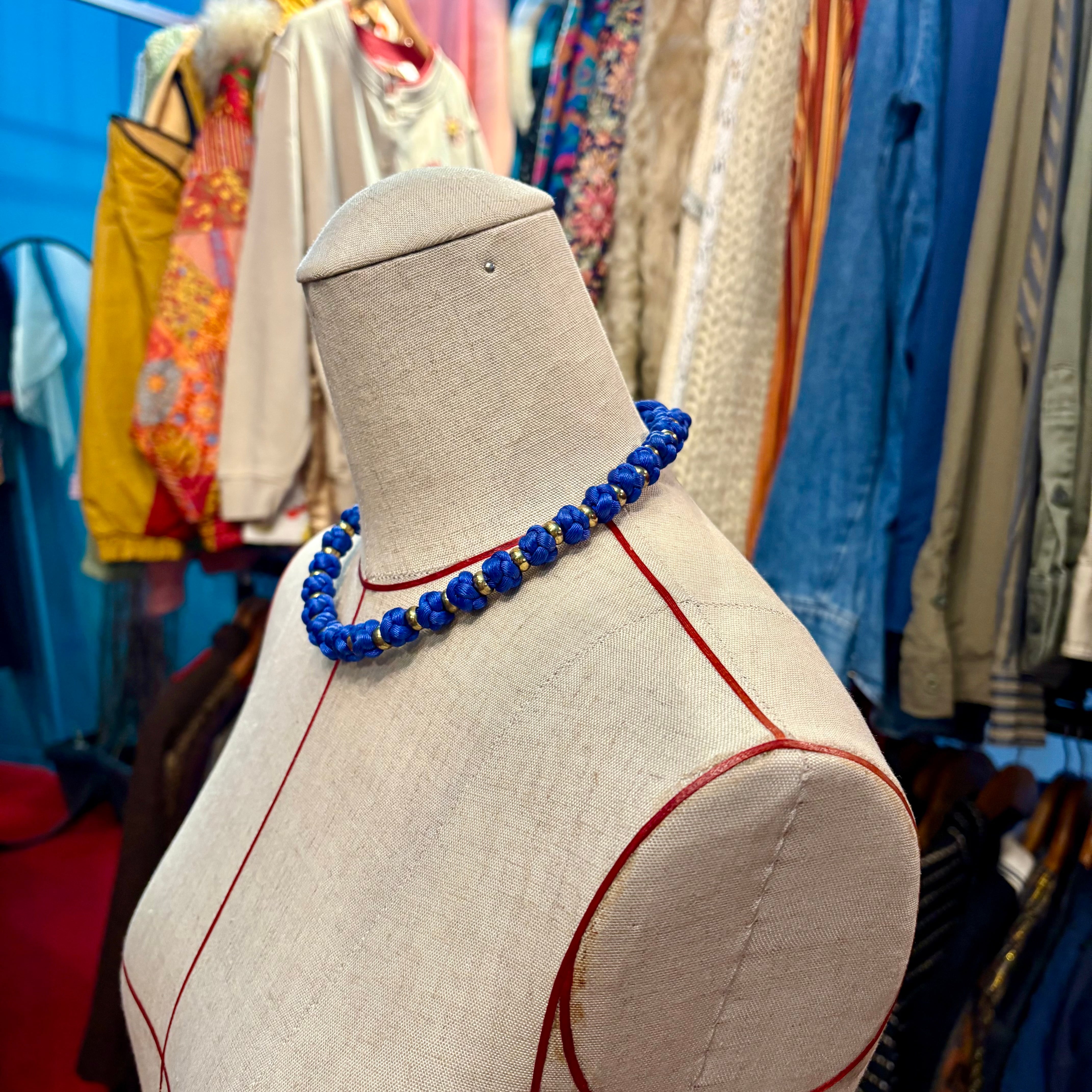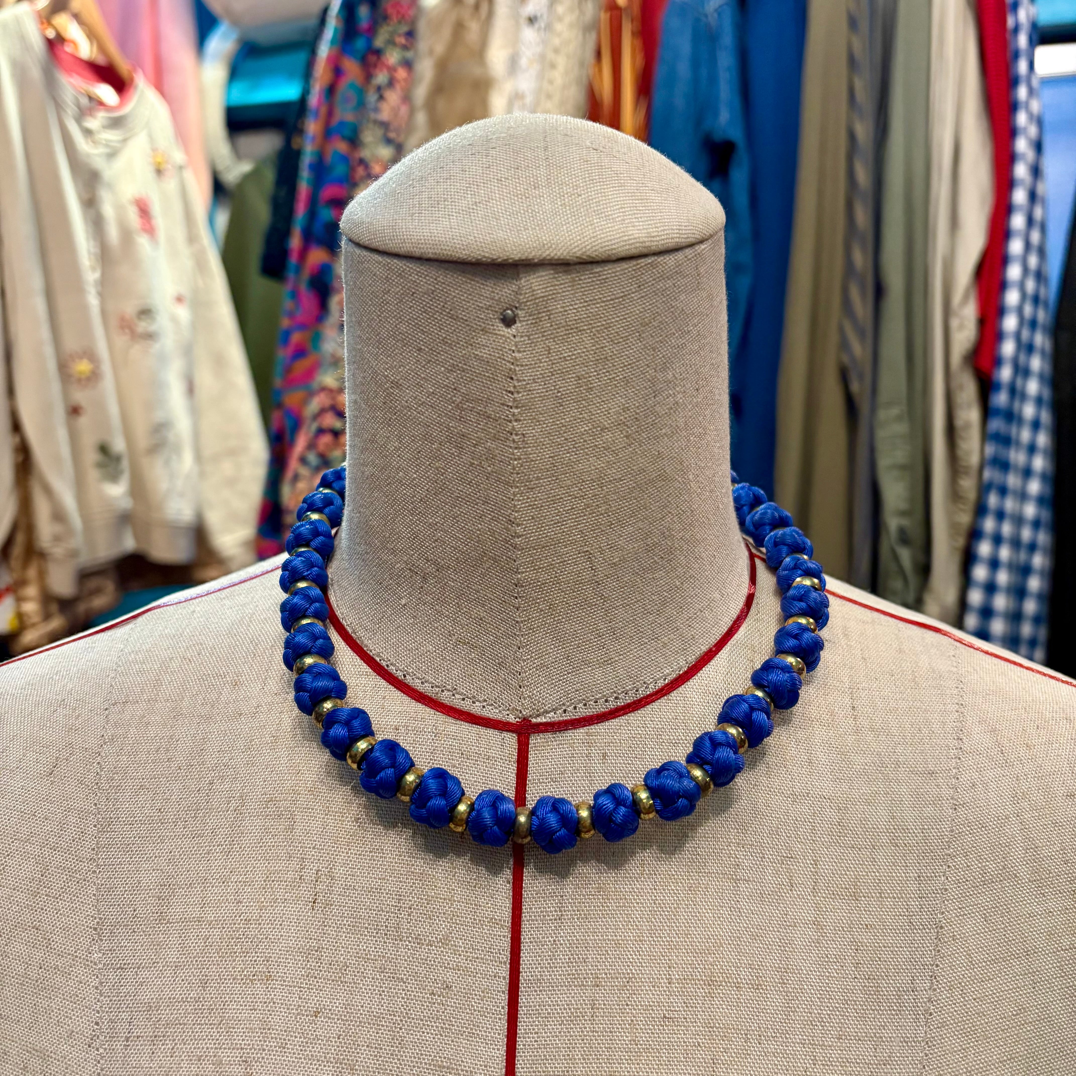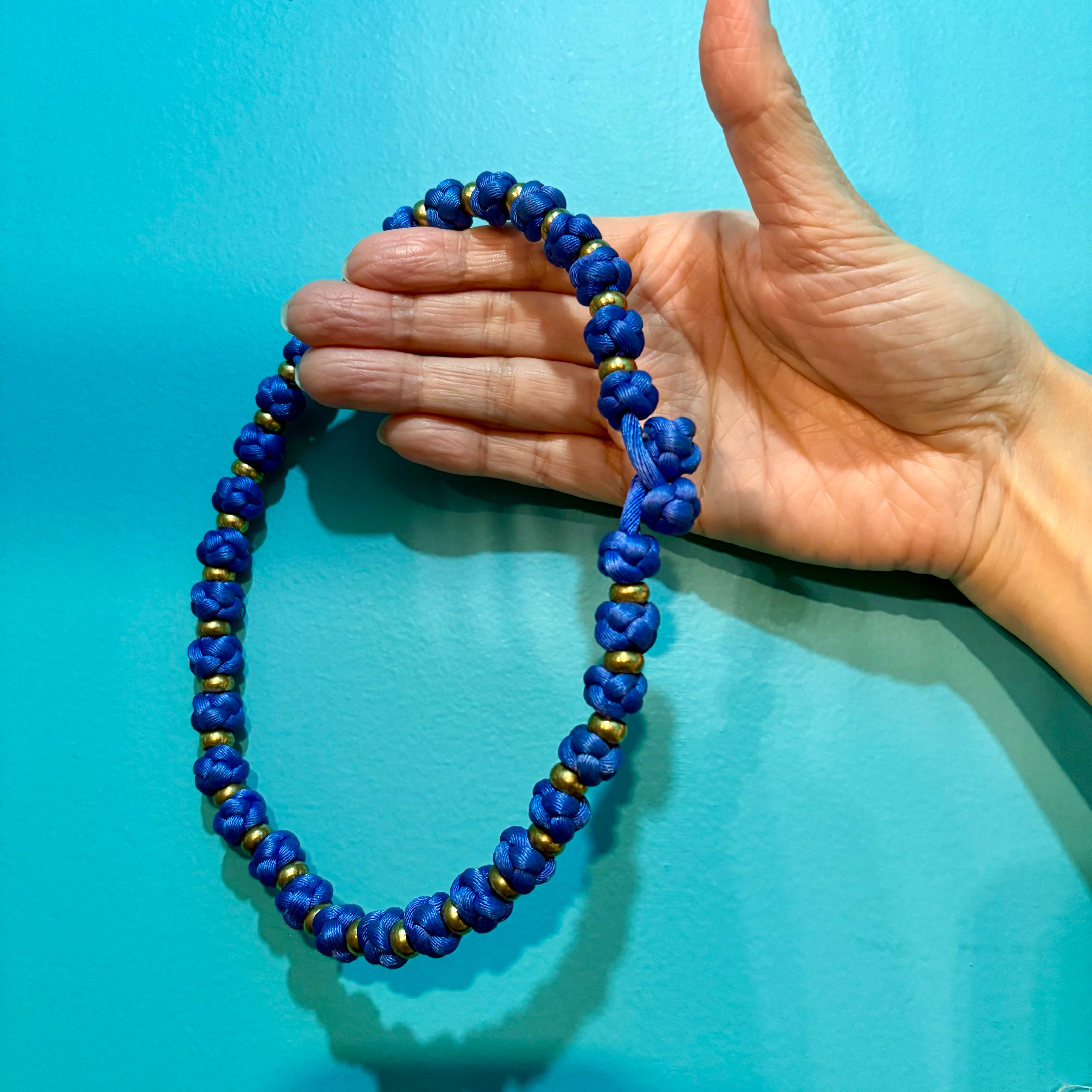 布ビーズ チョーカーネックレス 青 チャイナ 組紐 アジア雑貨