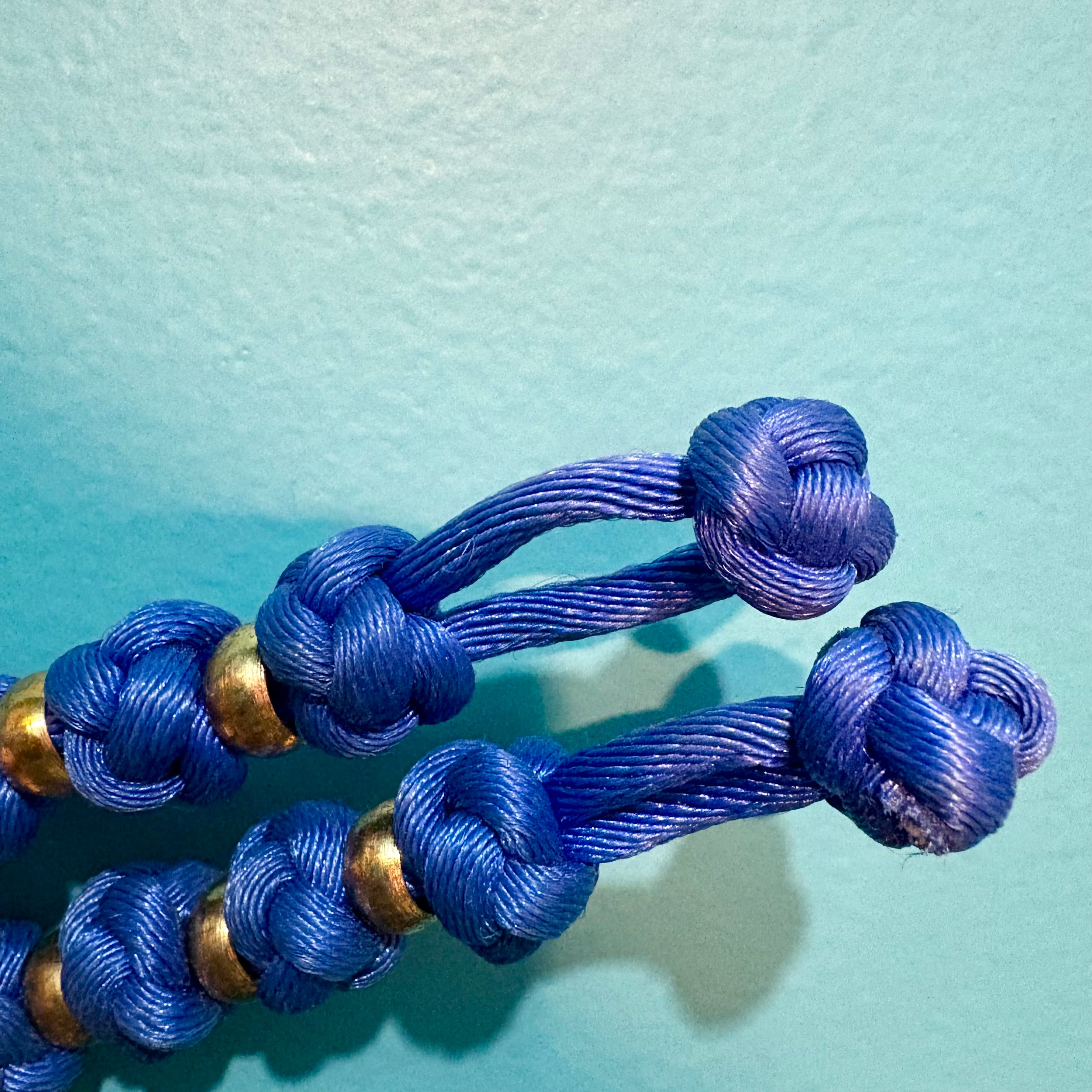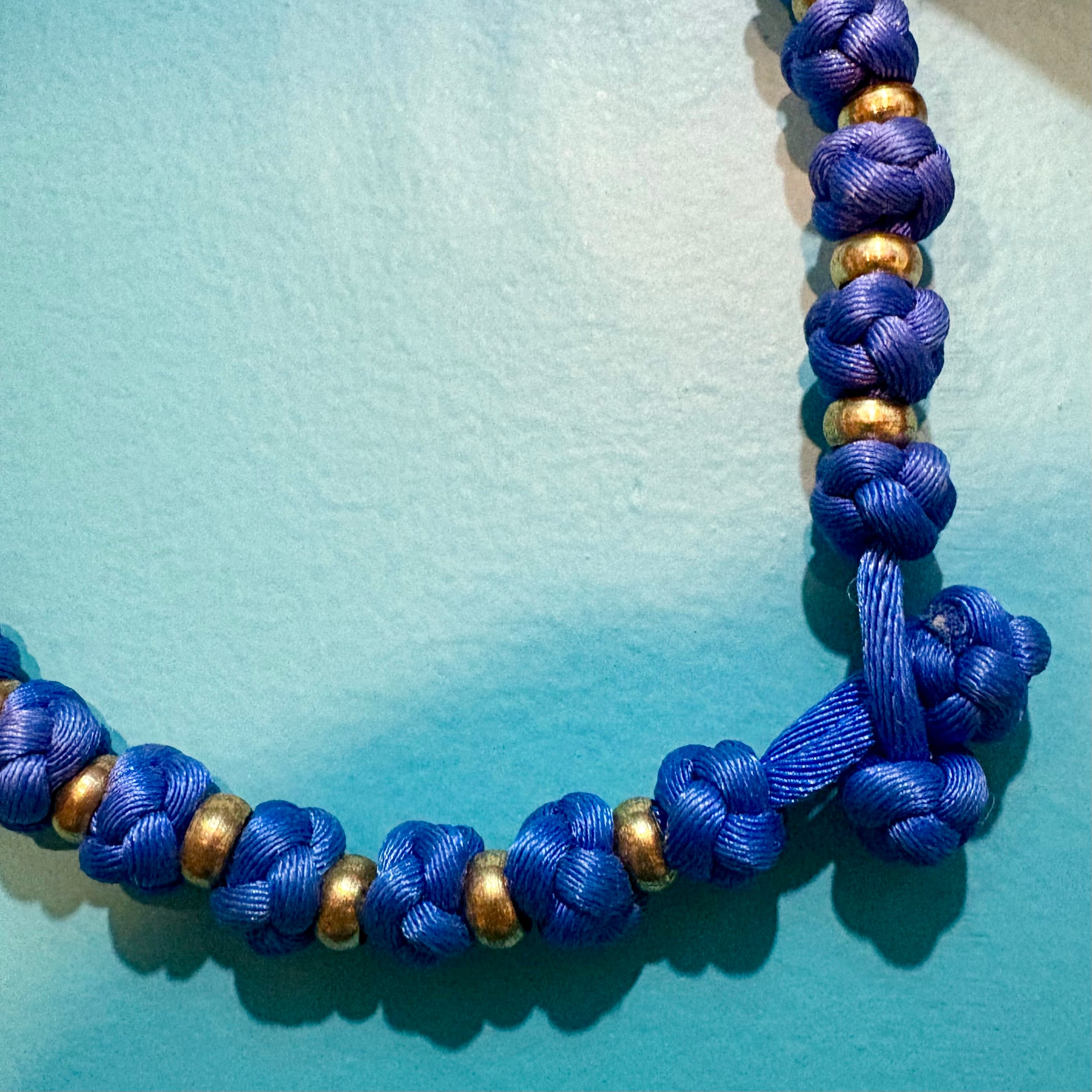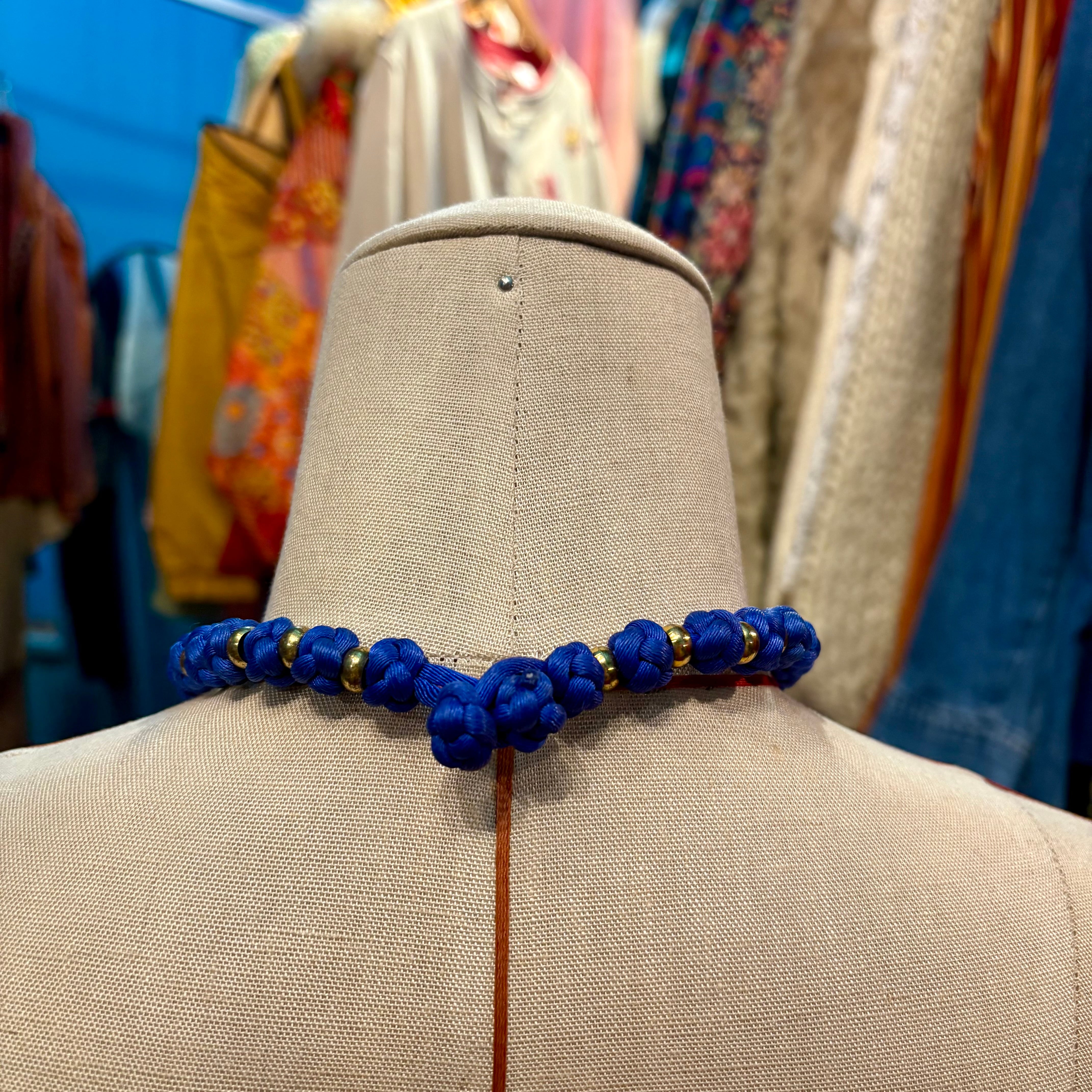 布ビーズ チョーカーネックレス 青 チャイナ 組紐 アジア雑貨
