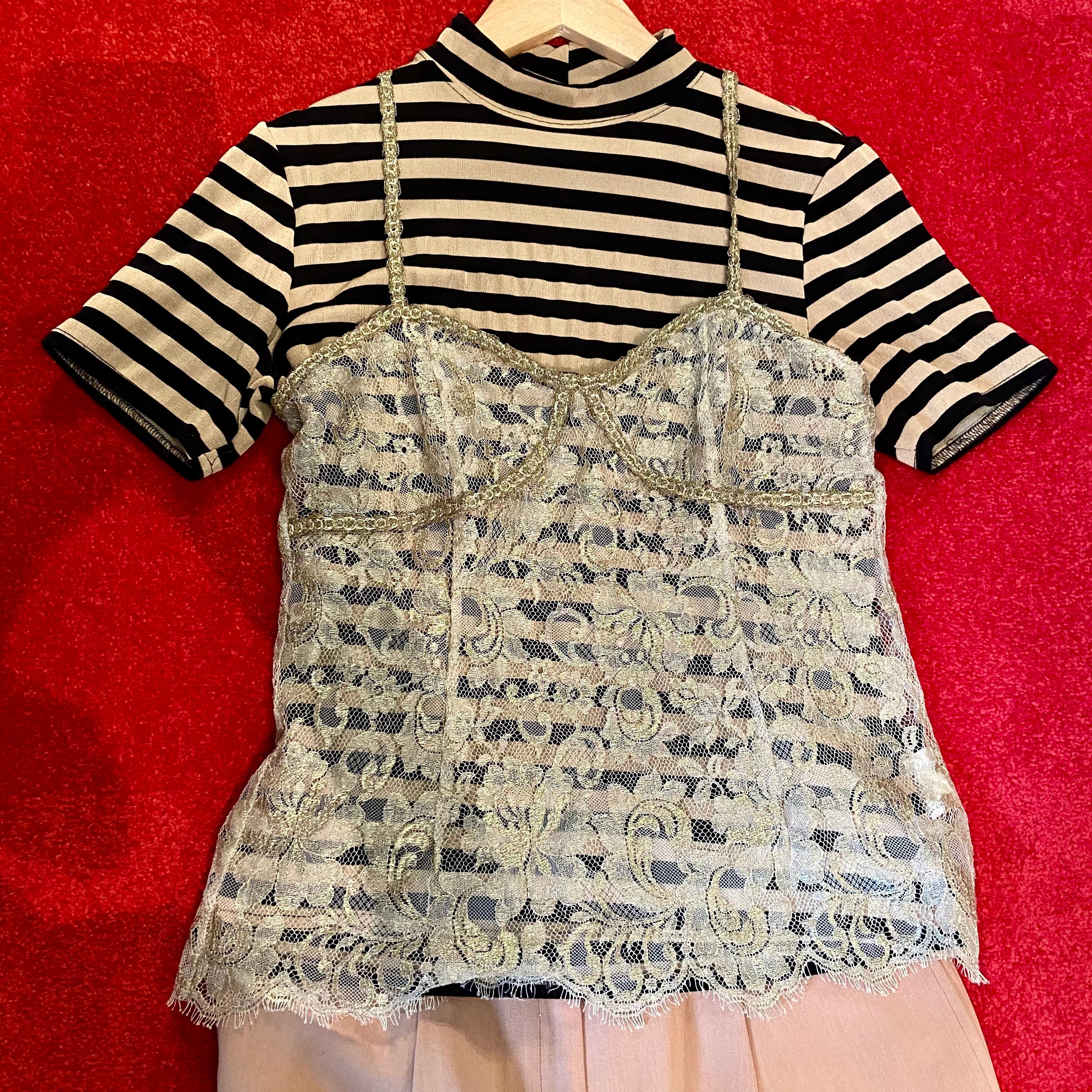 used ゴールドレース後ろボタン開きキャミソール ビスチェ