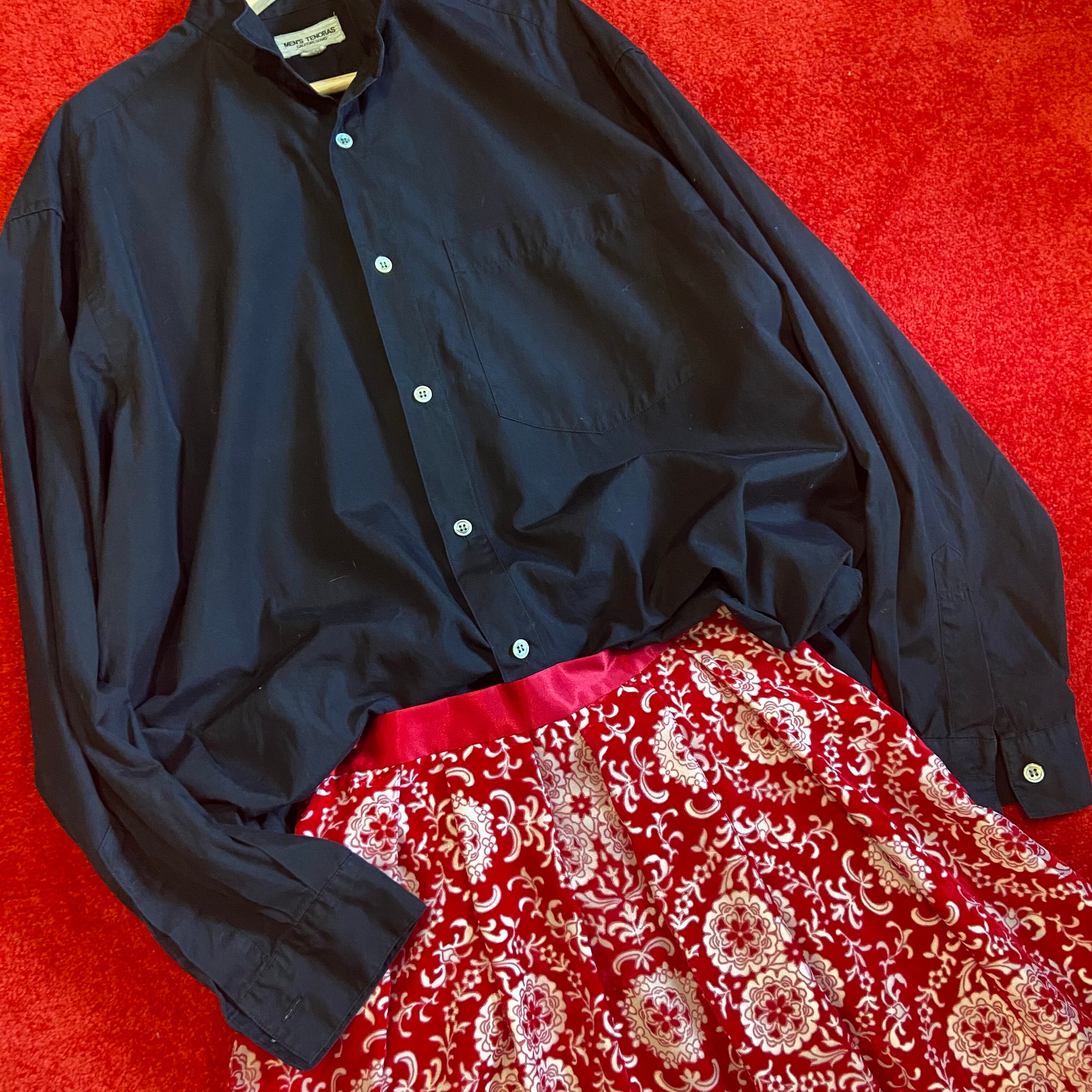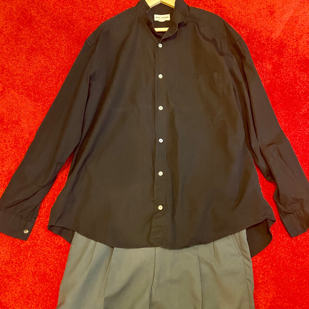 白のイメージの強いアイテムだけに、黒は新鮮でカッコよく、オススメのメンズシャツです。