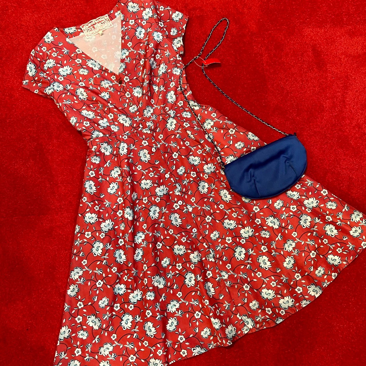持っているだけでも気分が上がりそうな、間違いなく可愛くなれる赤の花柄ワンピース。