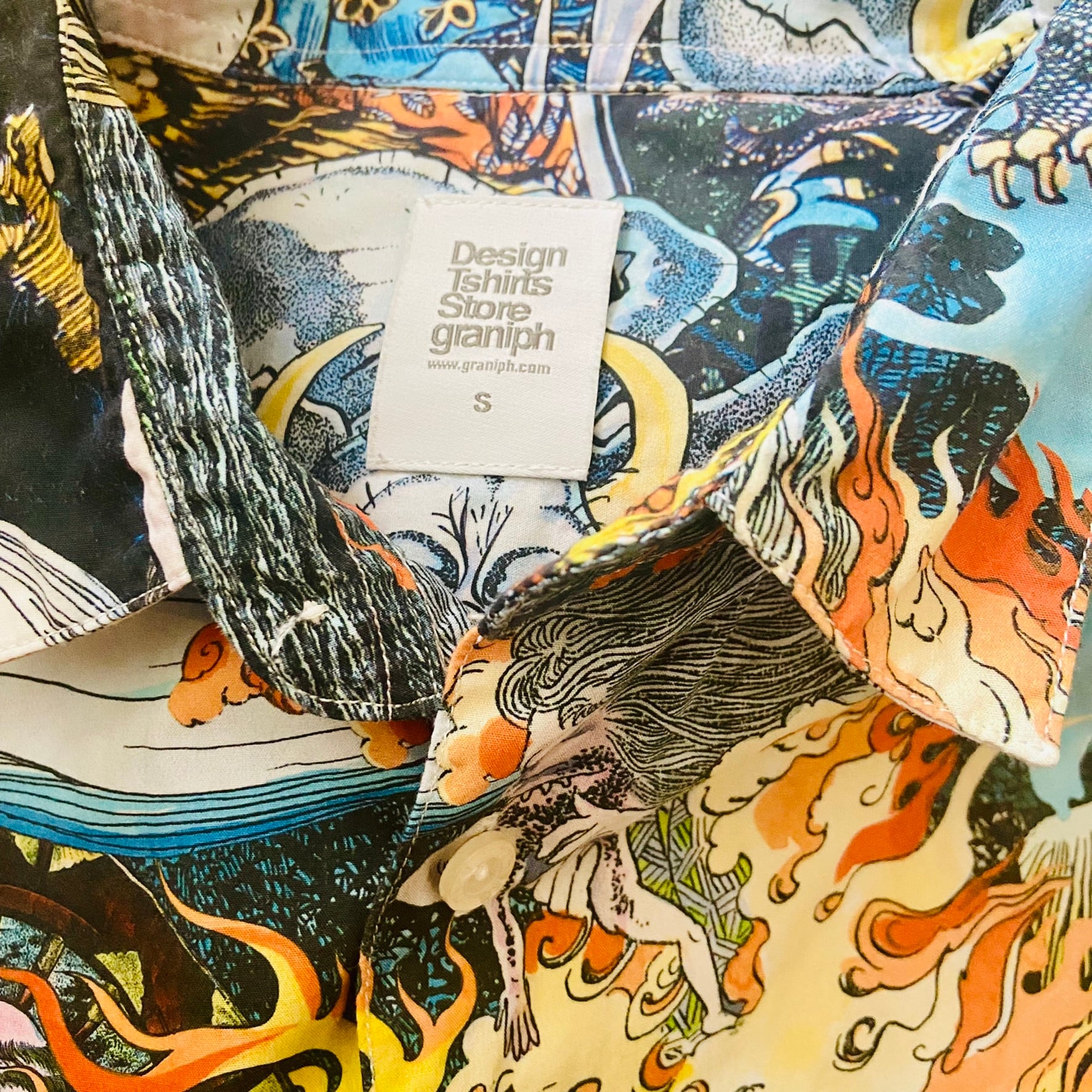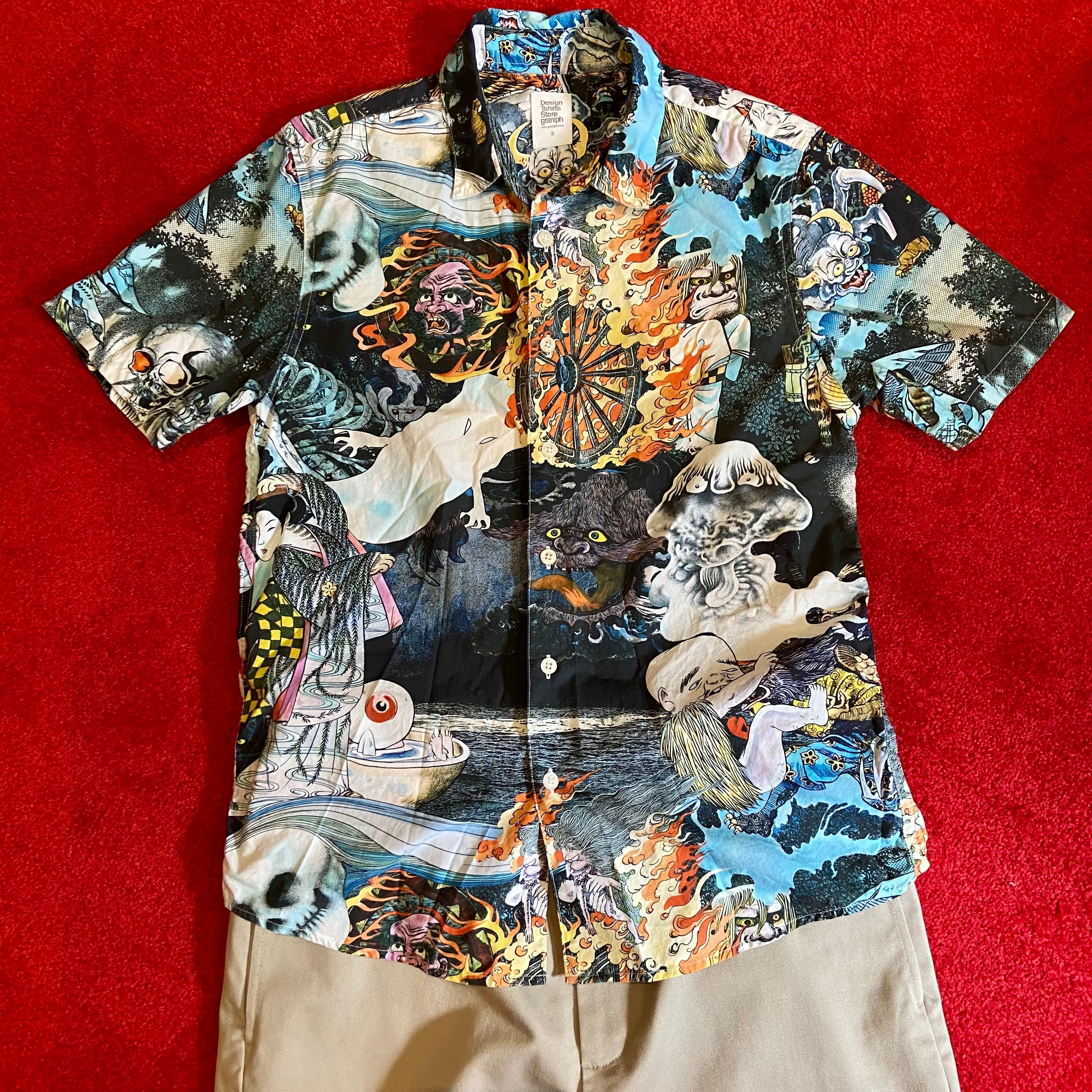 used men's glaniph 水木しげるコラボ 妖怪柄シャツ アロハシャツ ゲゲゲの鬼太郎