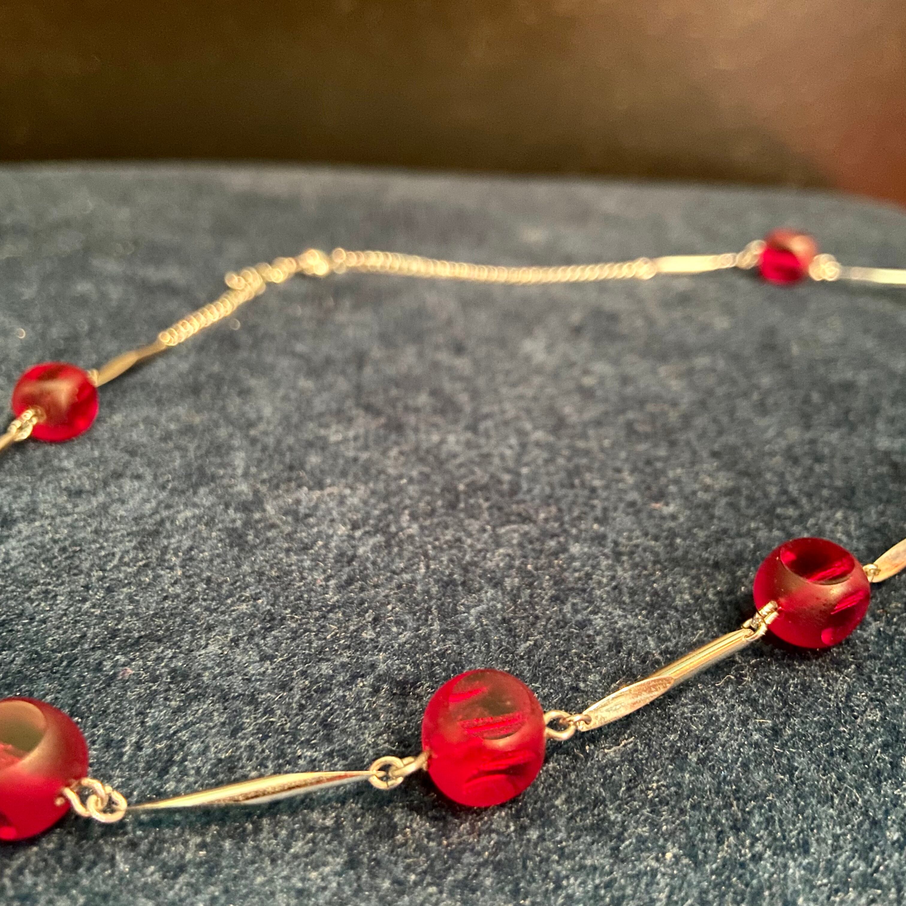 used 赤ビーズ&シルバーネックレス