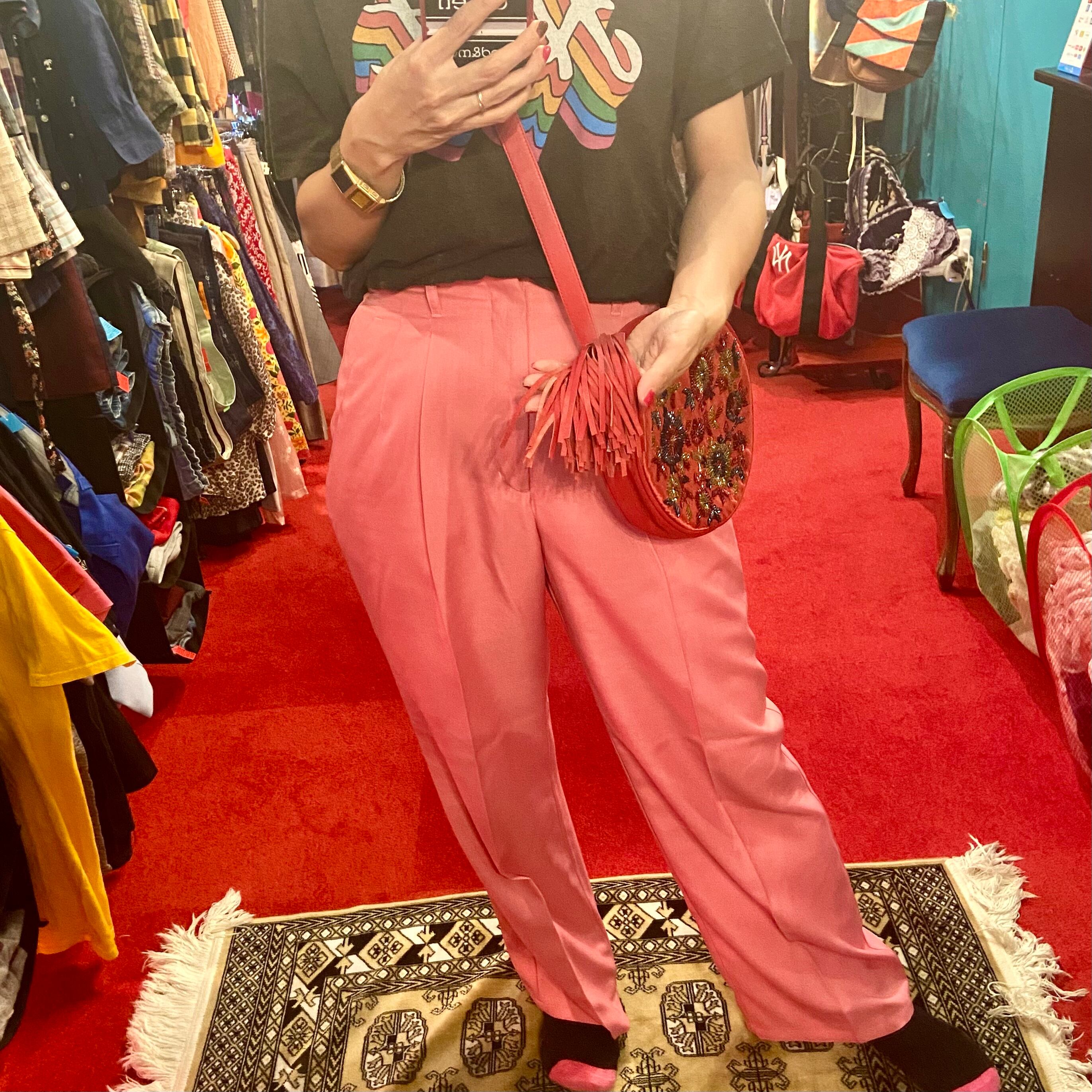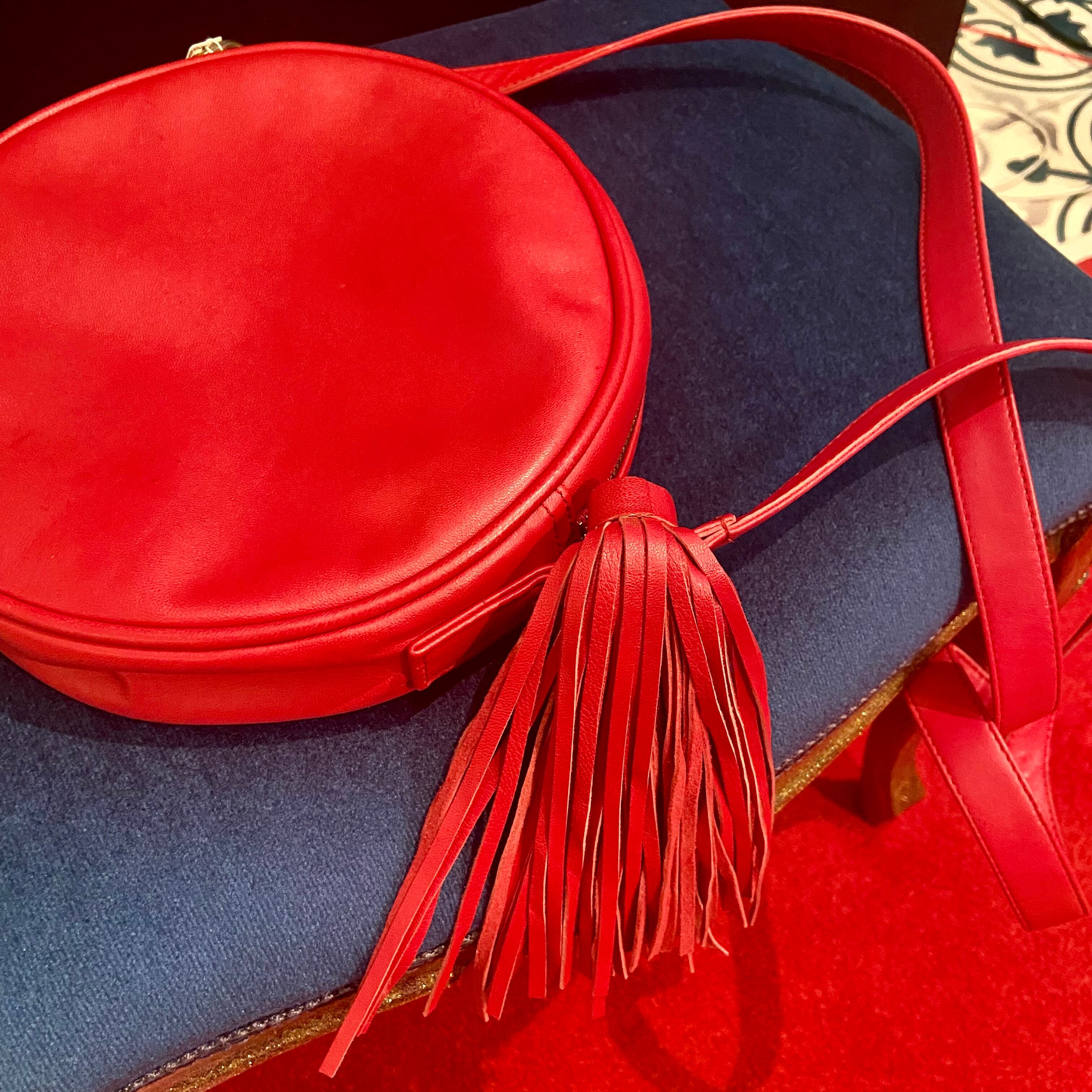 used GRACE CONTINENTAL 赤ビーズ刺繍ポシェット 丸型バッグ ショルダー