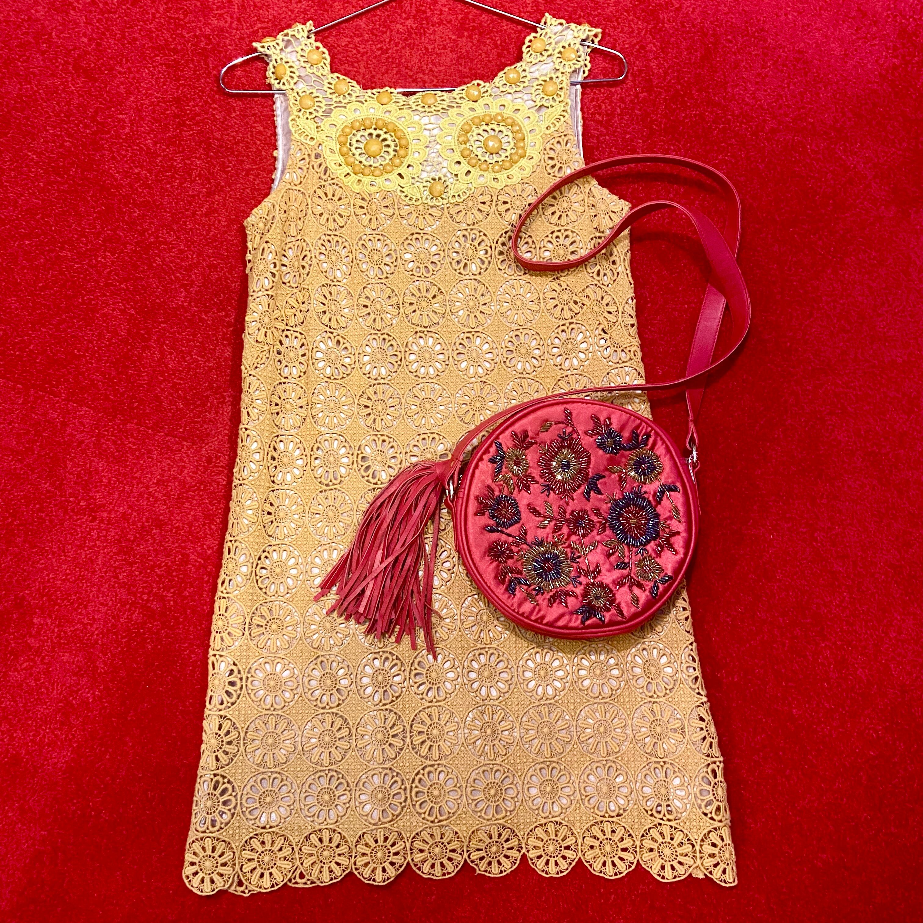 美しいビーズ刺繍が施された、可愛いまんまる丸型ポシェットショルダーバッグ。