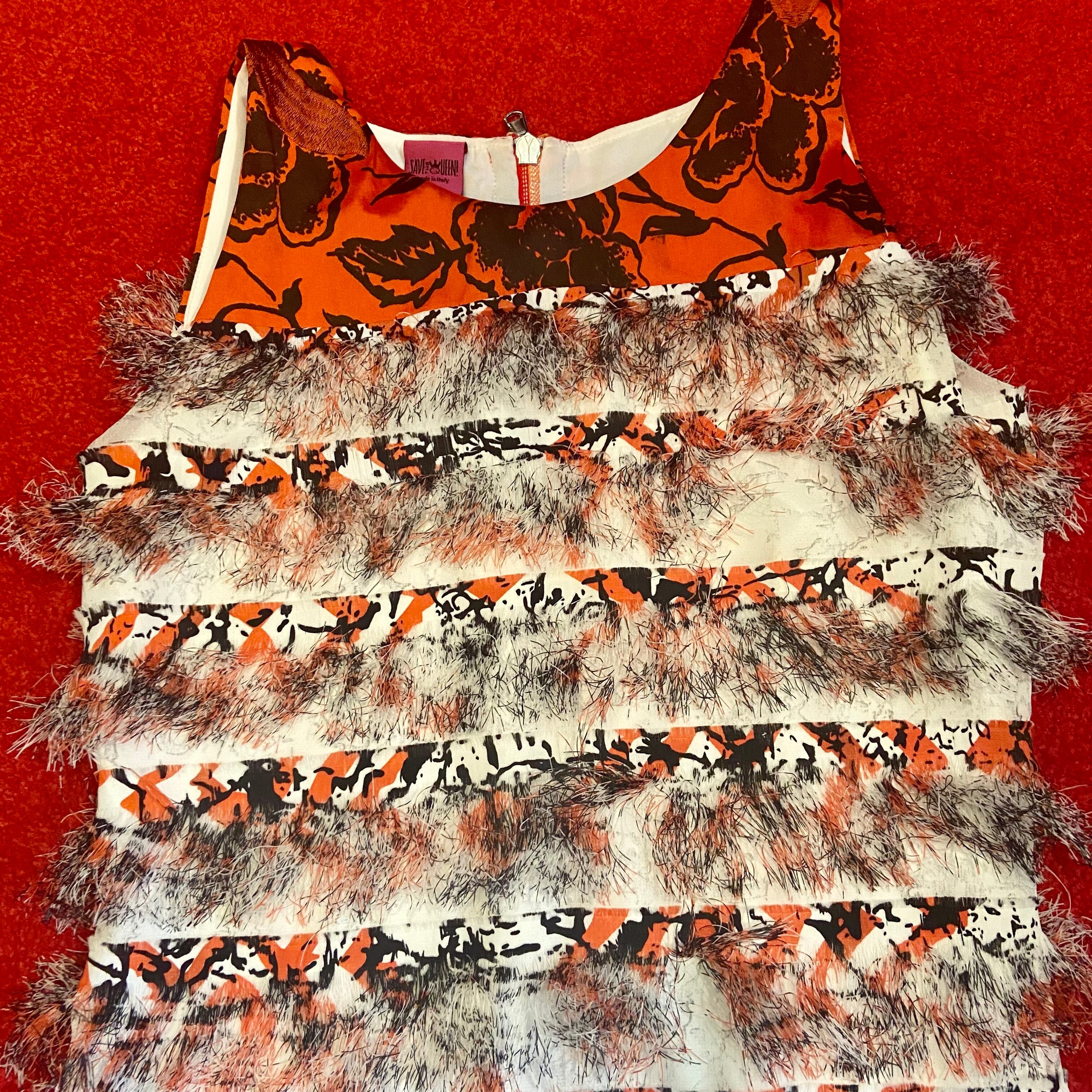 used made in ITALY フリンジ刺繍花柄ワンピース