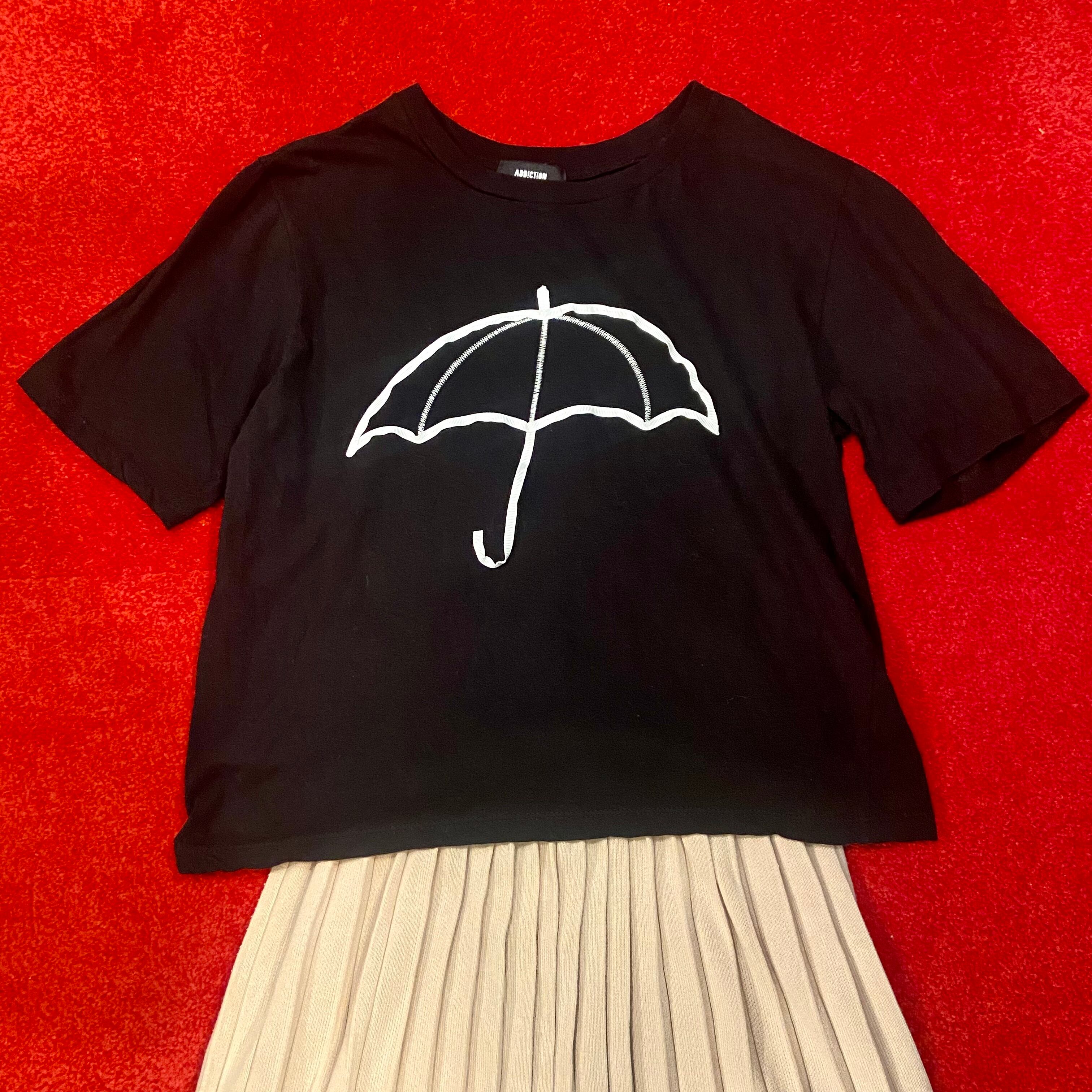 プリントではなく細いリボンで作った傘モチーフのイラスト刺繍が可愛らしいTシャツです。