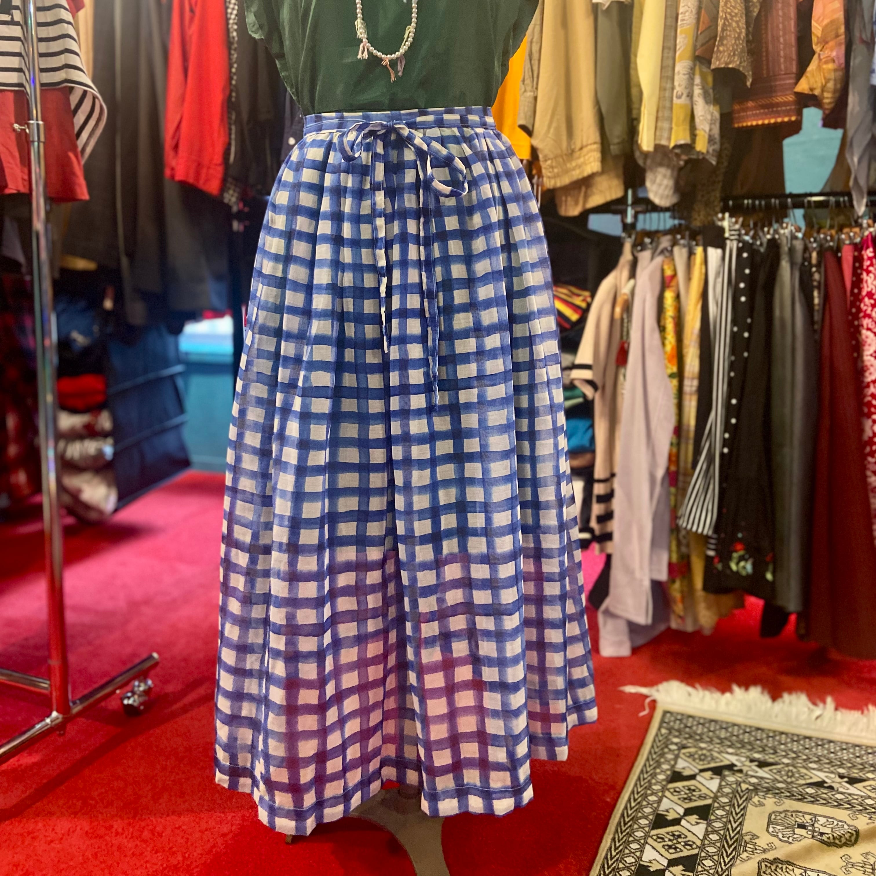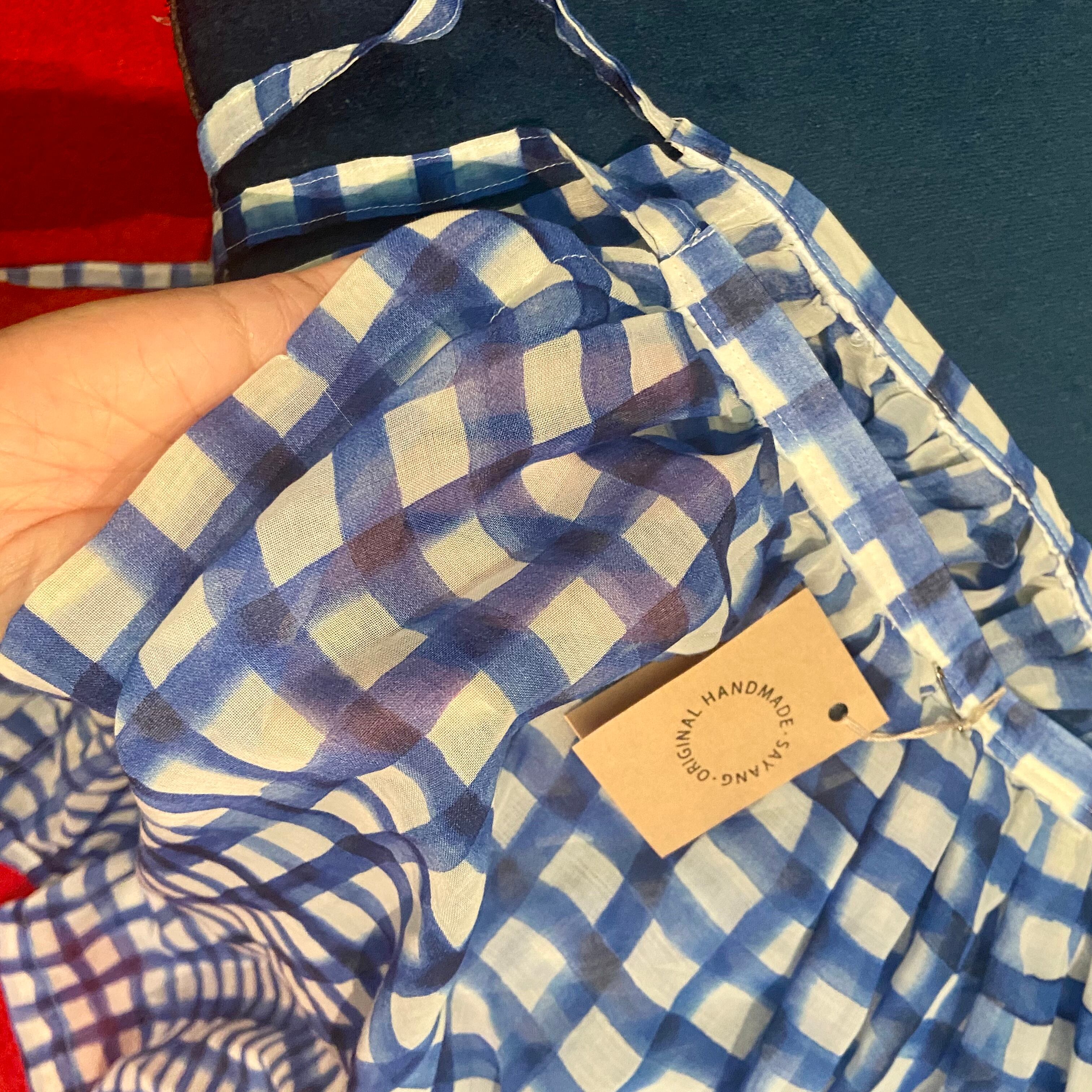 handmade SAYANG シアーエプロン巻きスカート 青白ギンガムチェック