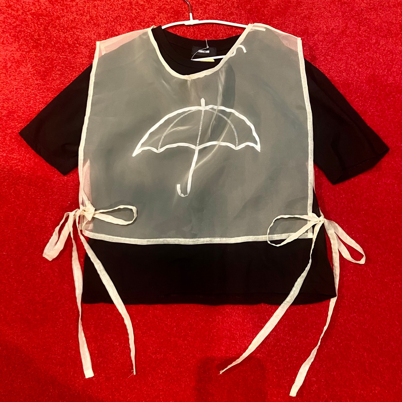 透ける素材のクリーム色で、色々なアイテムとのレイヤードコーデが楽しめます。