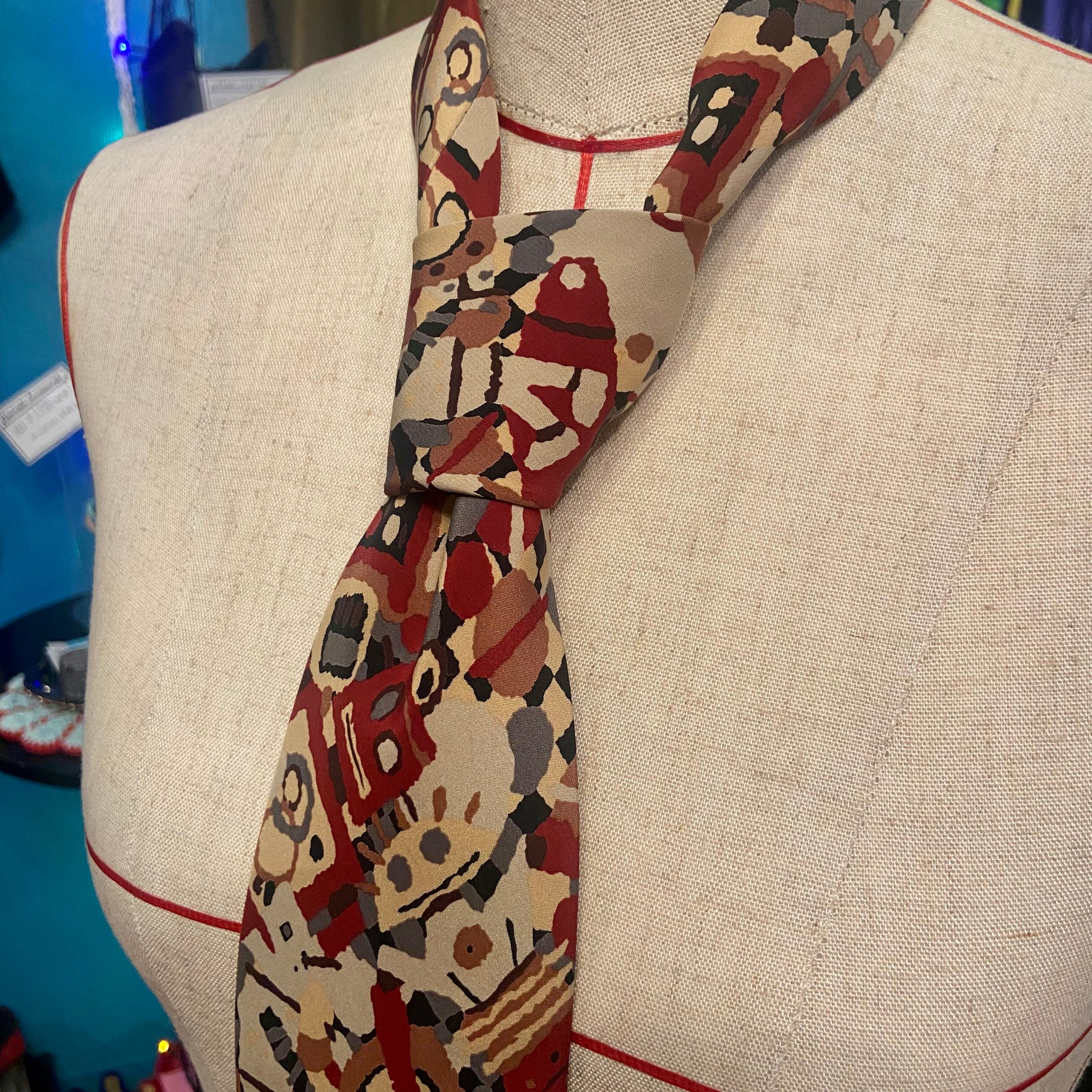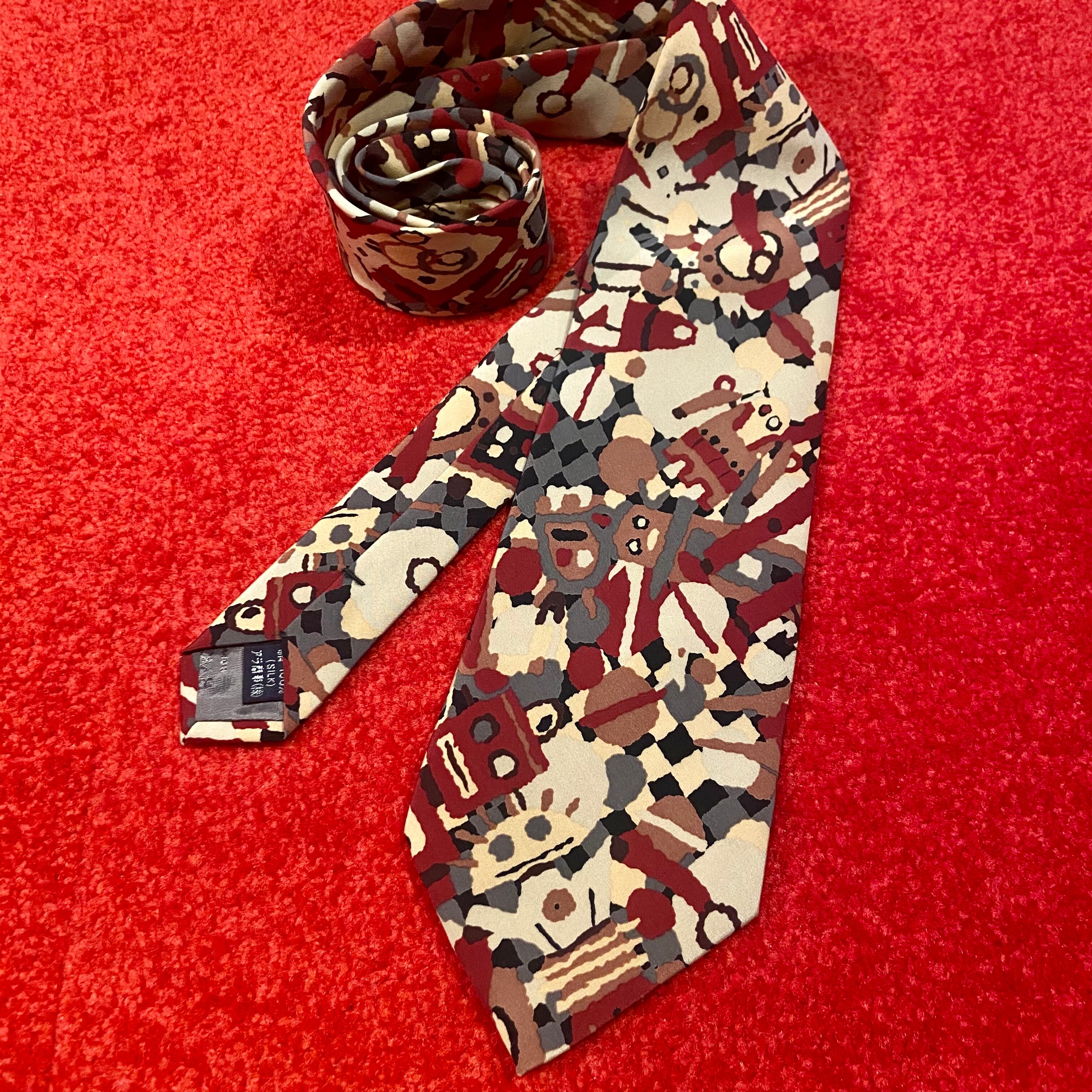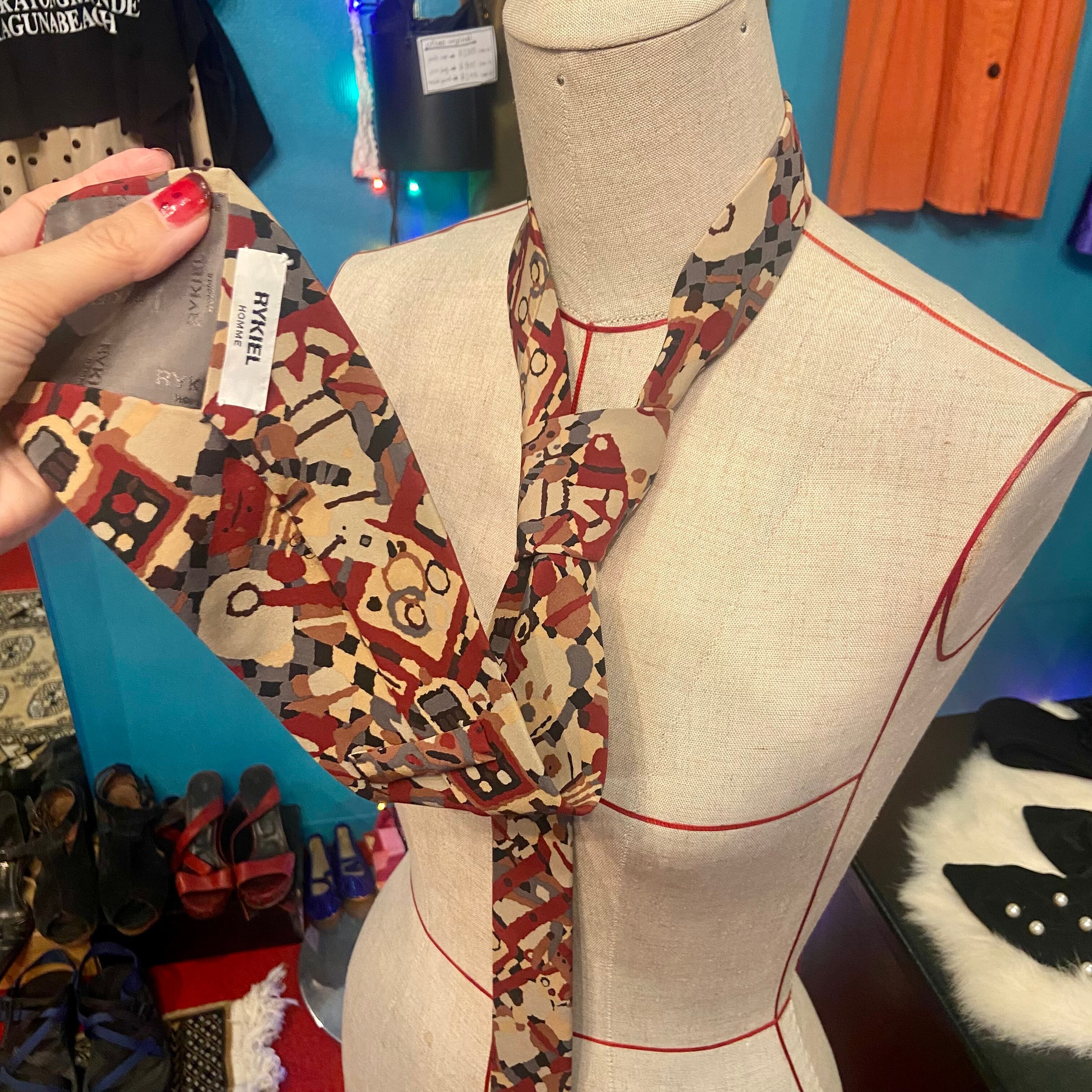 used vintage RYKIEL シルク柄ネクタイ 謎柄 レトロ ロボット