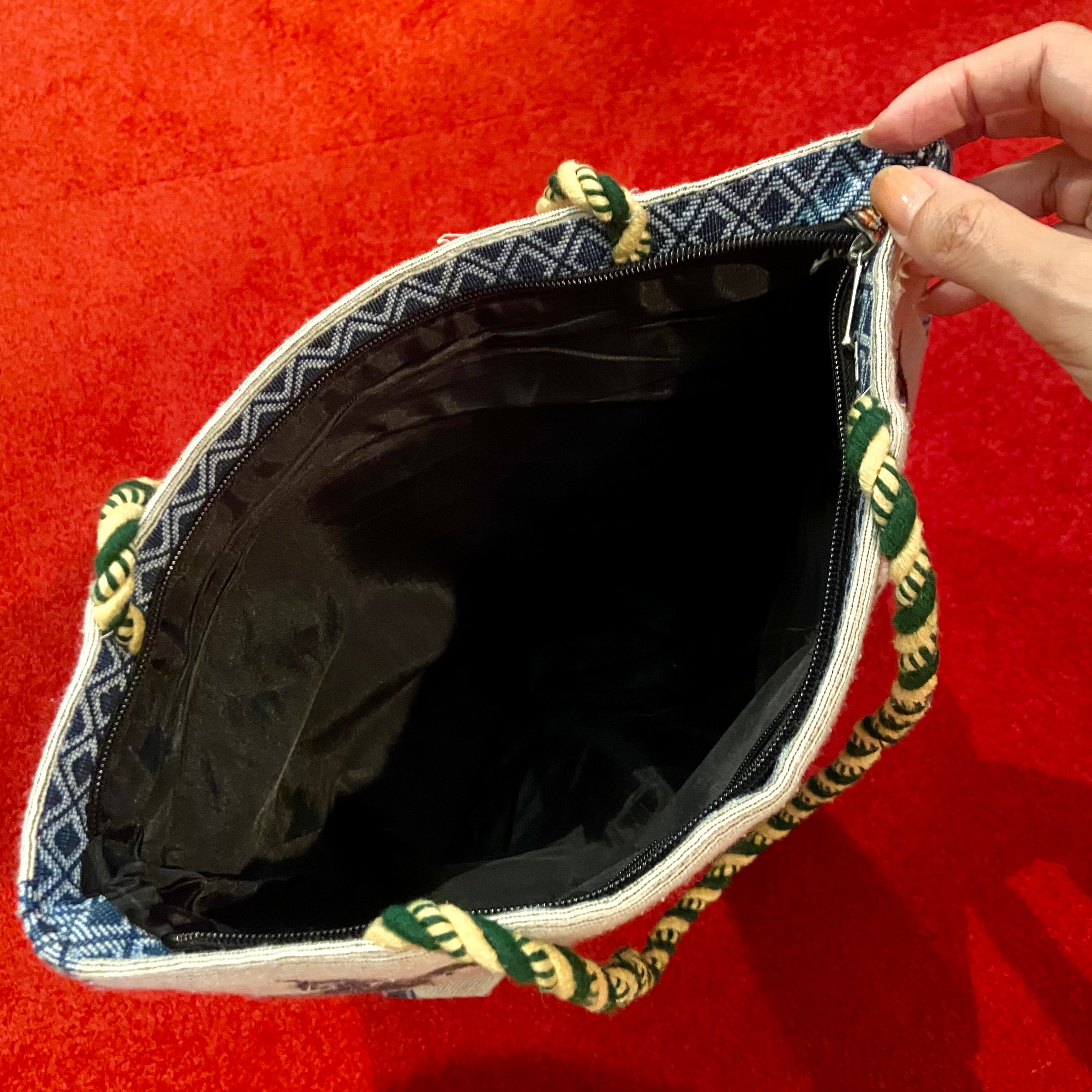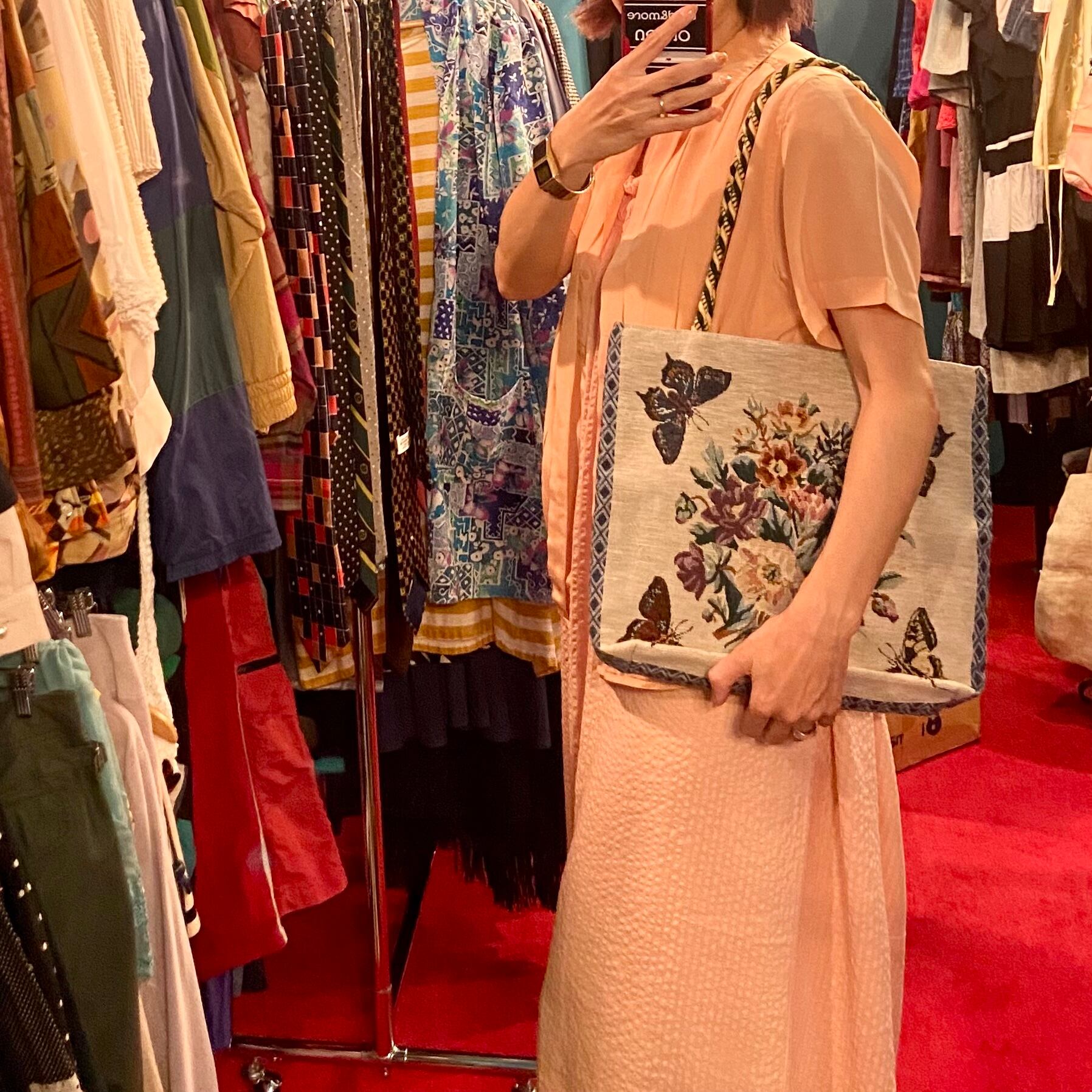 花束とちょうちょのゴブラン織が素敵なトートバッグ。