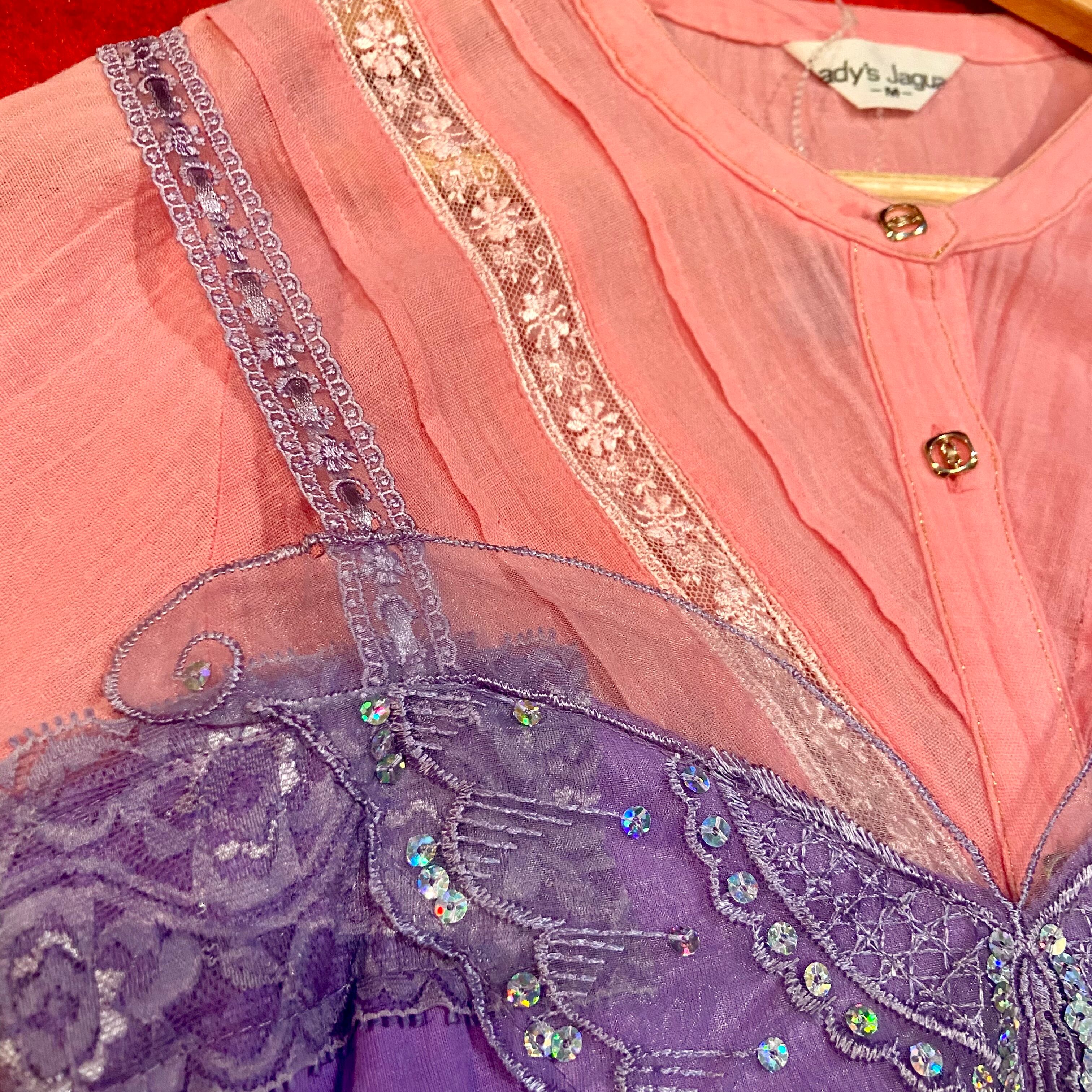 used 蝶々レースキャミソール 紫 ちょうちょ バタフライ パープル