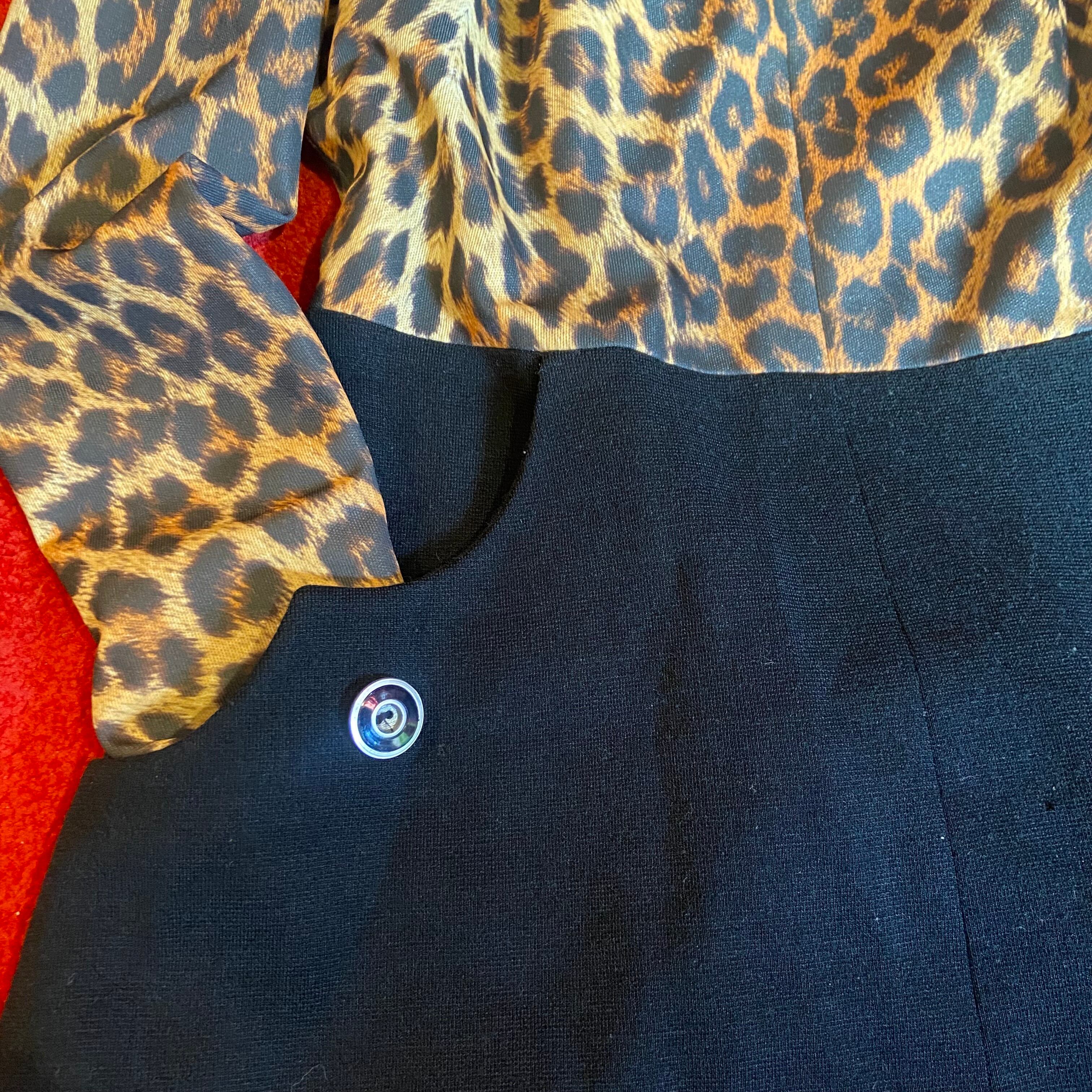 vintage レオパード柄切替ワンピース 黒 ヒョウ柄 大きめサイズ