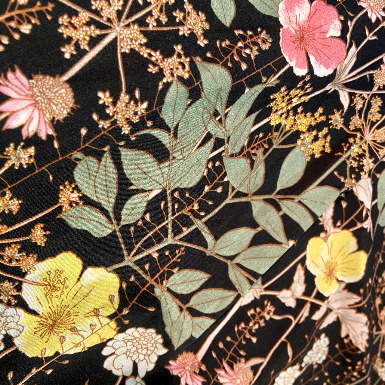 used ボタニカル花柄ワンピース 長袖 黒