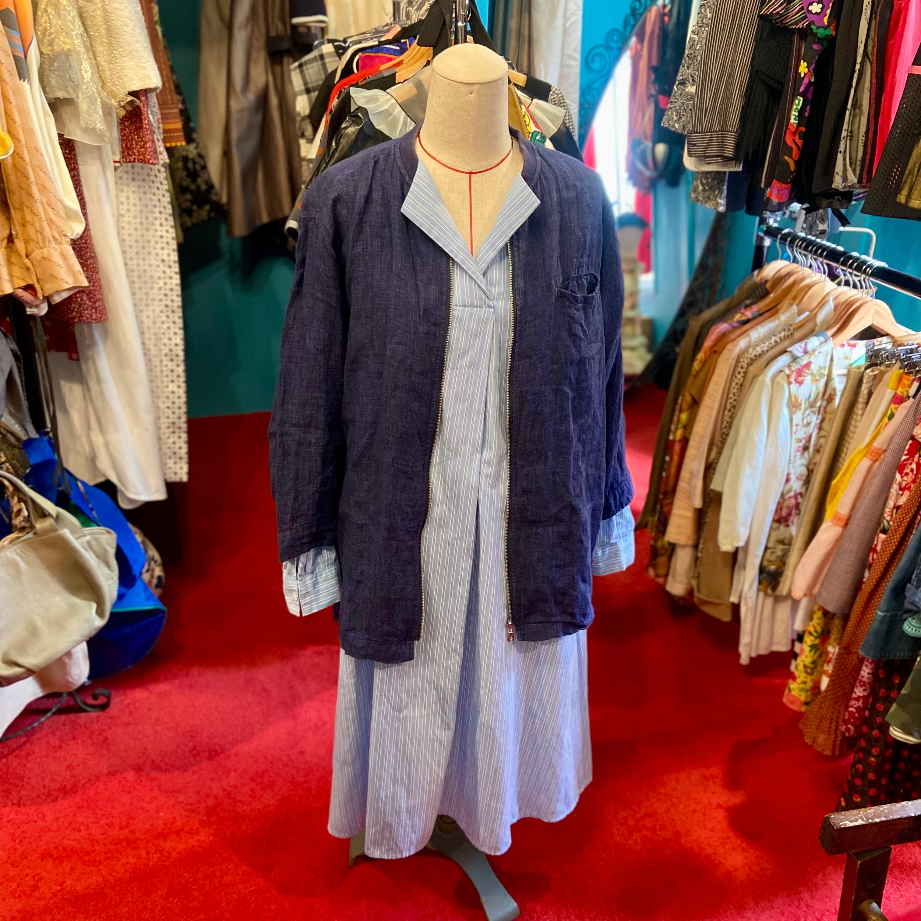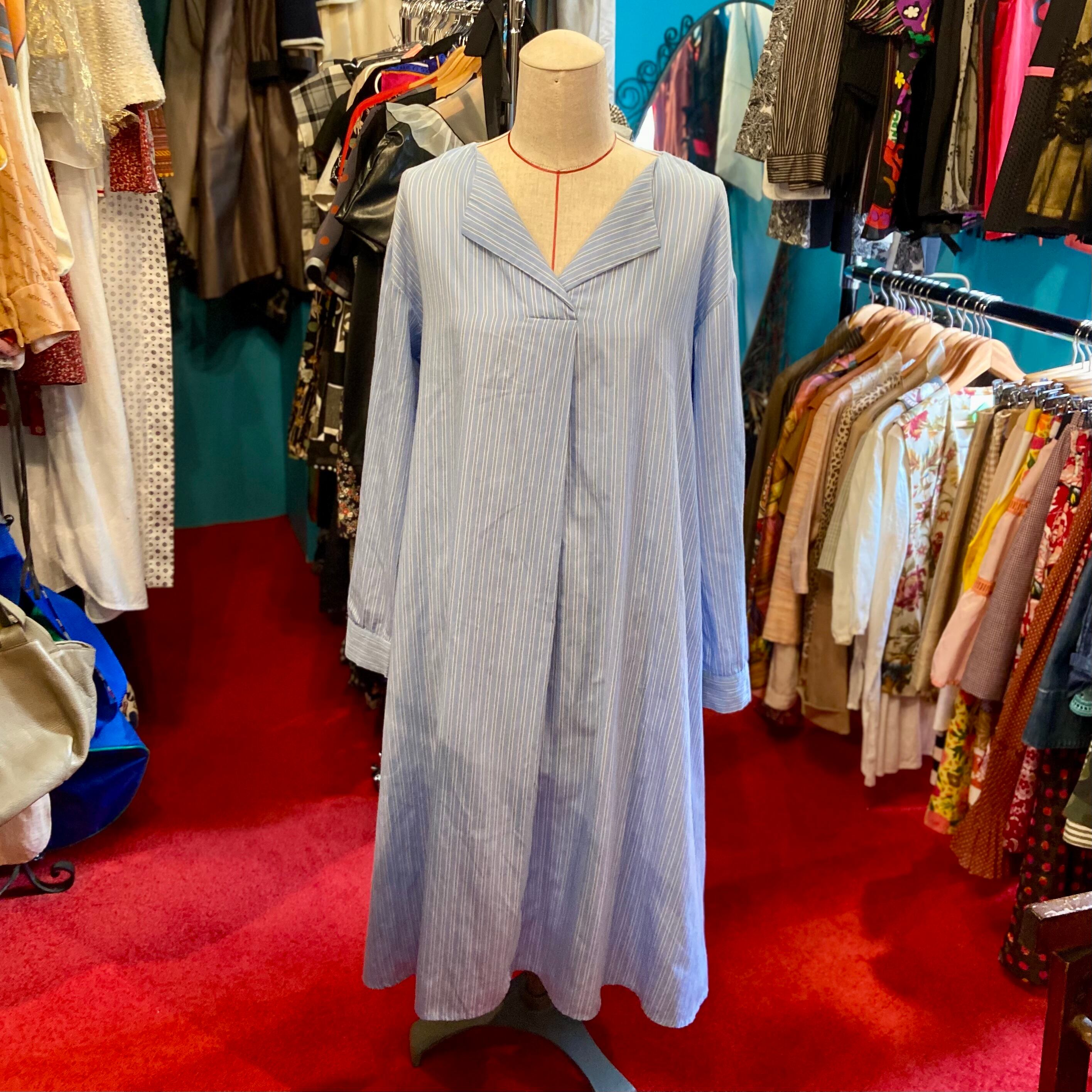 used プルオーバーシャツワンピース ストライプ 水色 ブルー