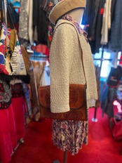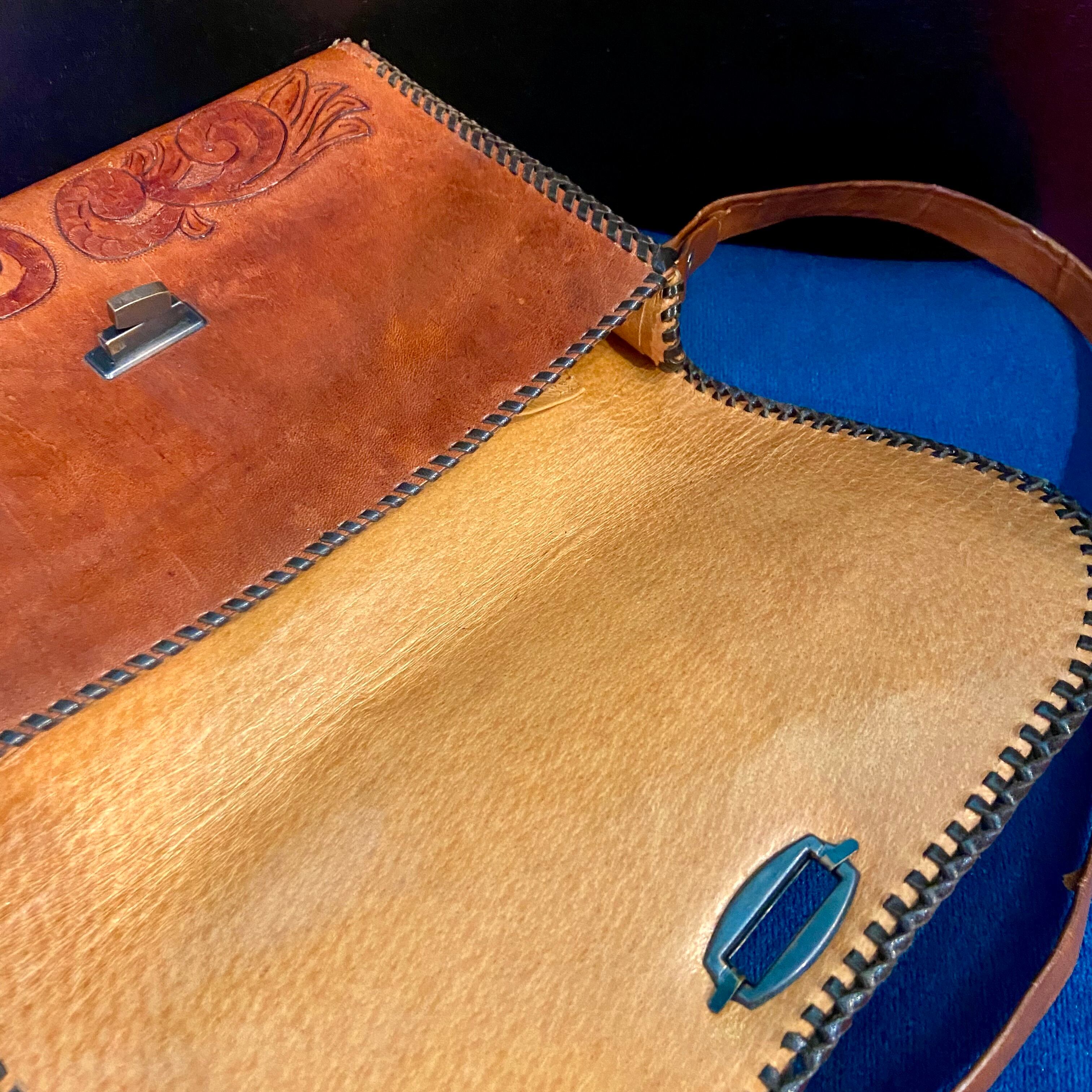 vintage レザーカービングショルダーバッグ 茶色
