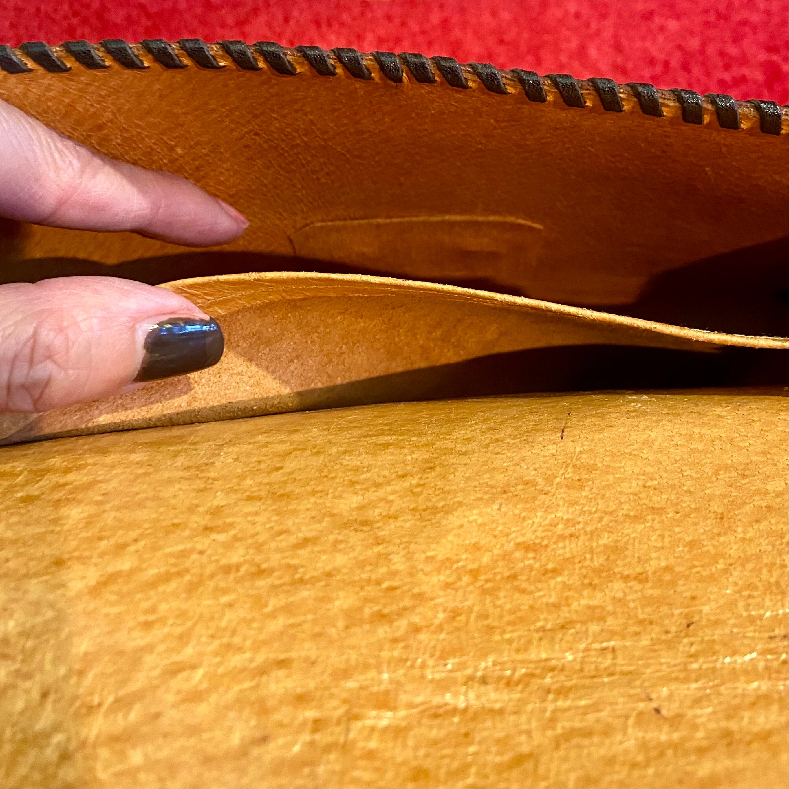 しっかりと硬めのレザーを使用しており、縁取りや金具も重厚で頑丈な作りです。