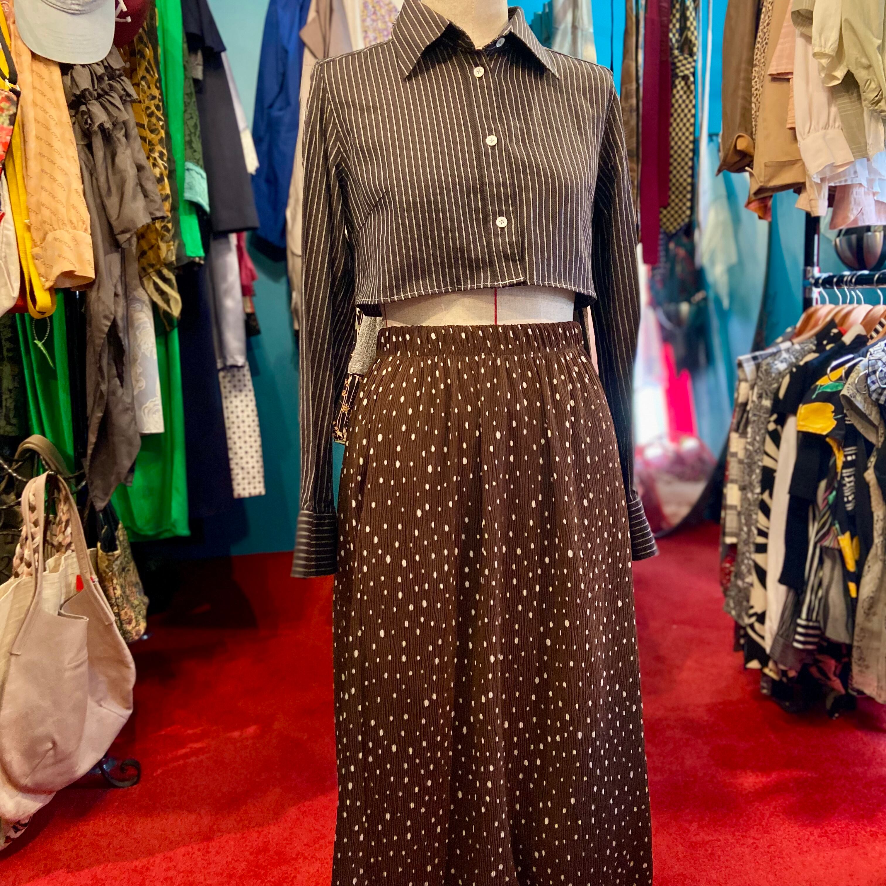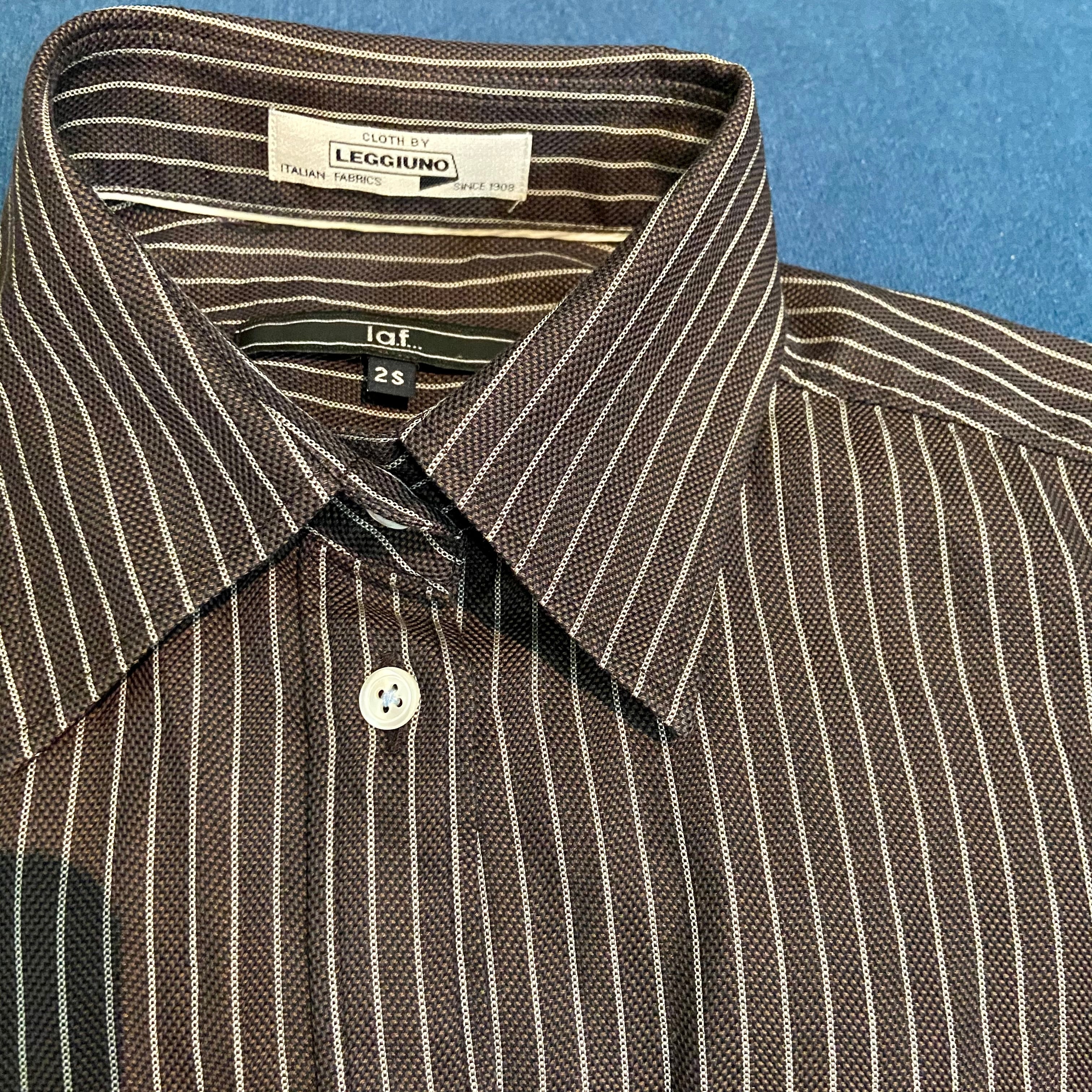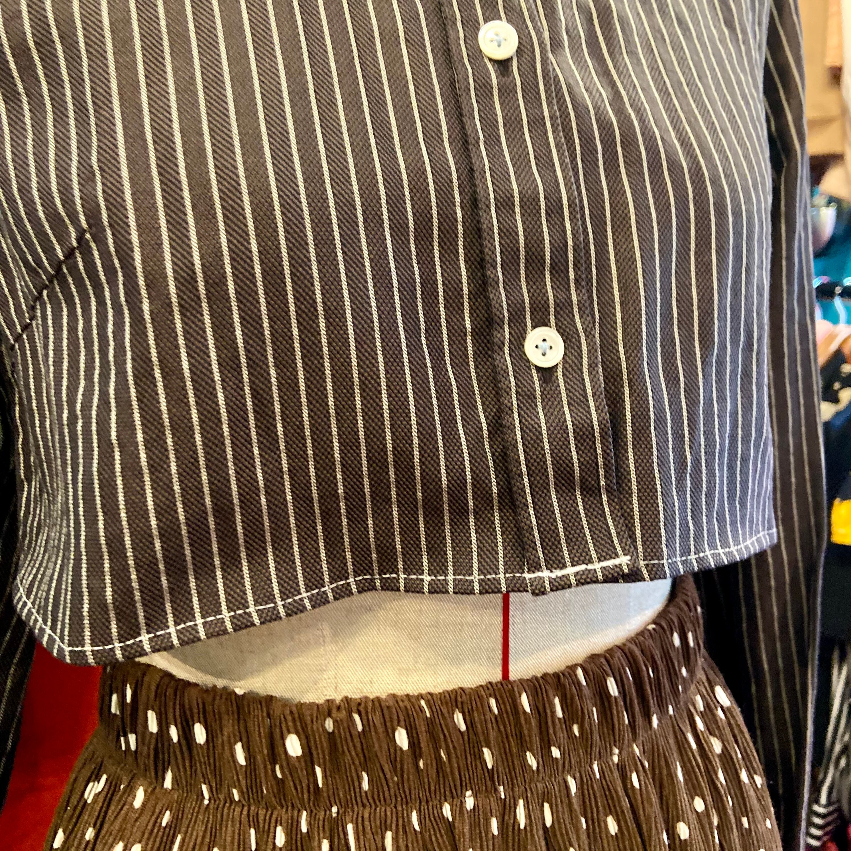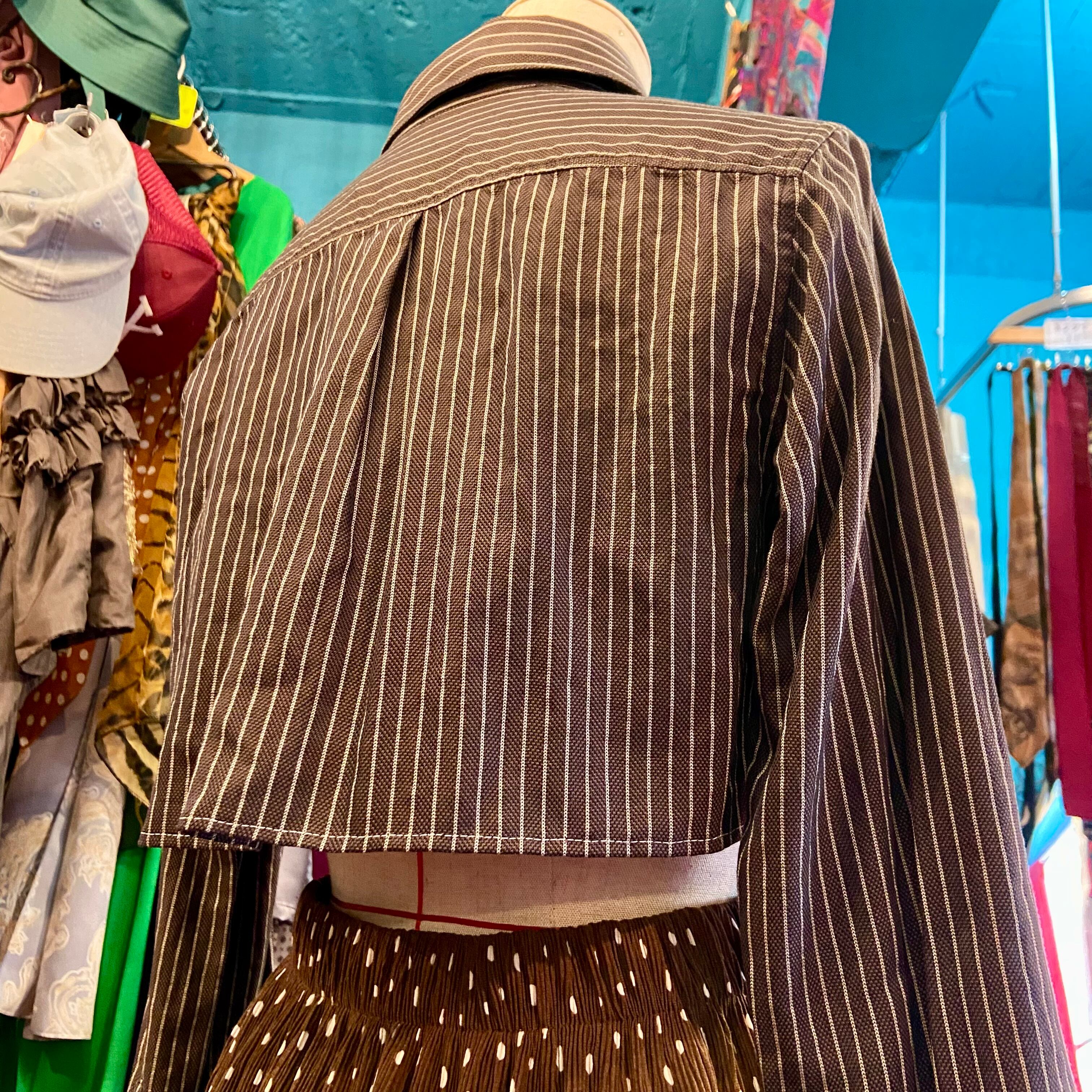クロップド丈ストライプシャツ 茶色 リメイク LEGGIUNO(レジウノ)生地使用 ダークブラウン