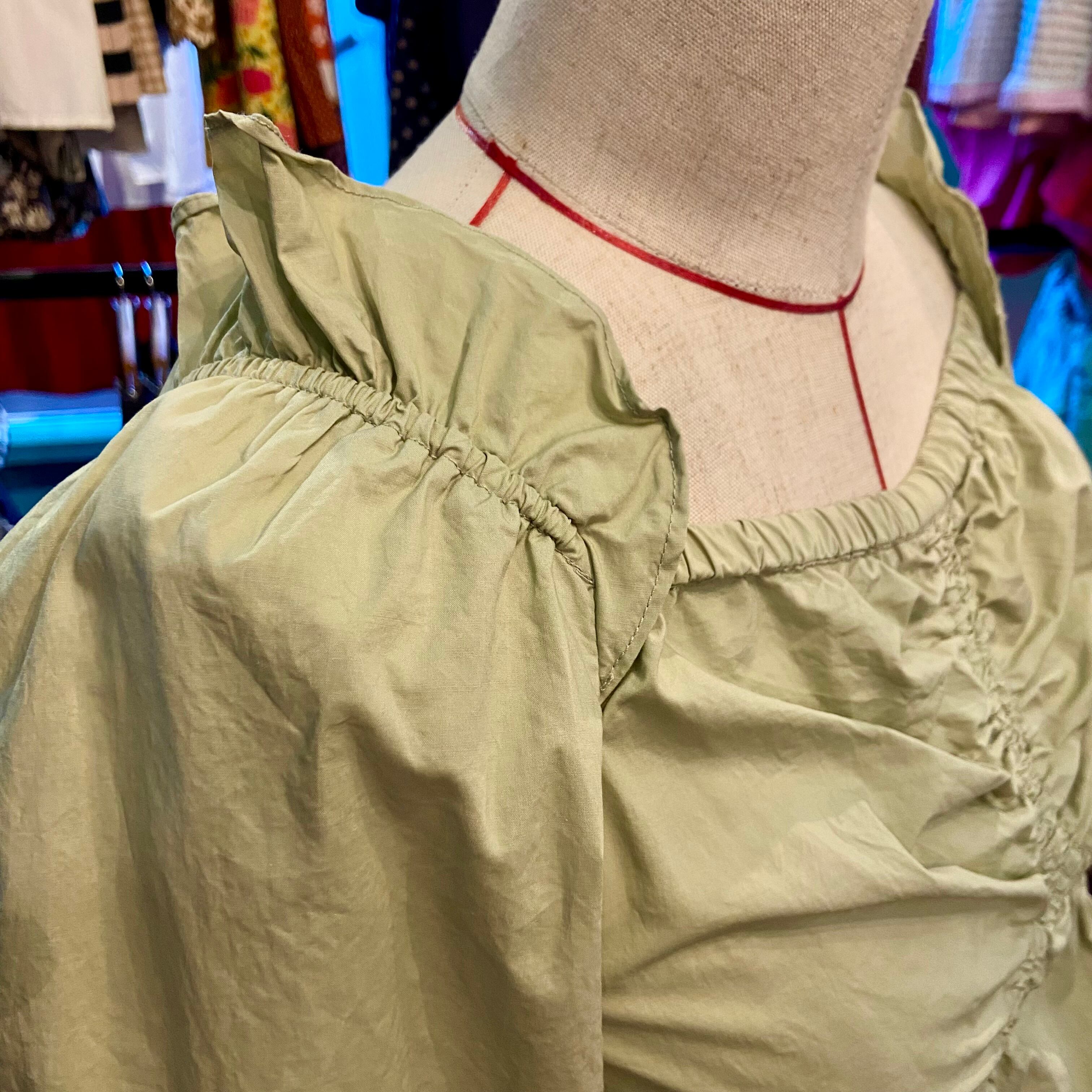 ハリのあるコットン素材、アンダーバストのブラウジングさせて調節可能
