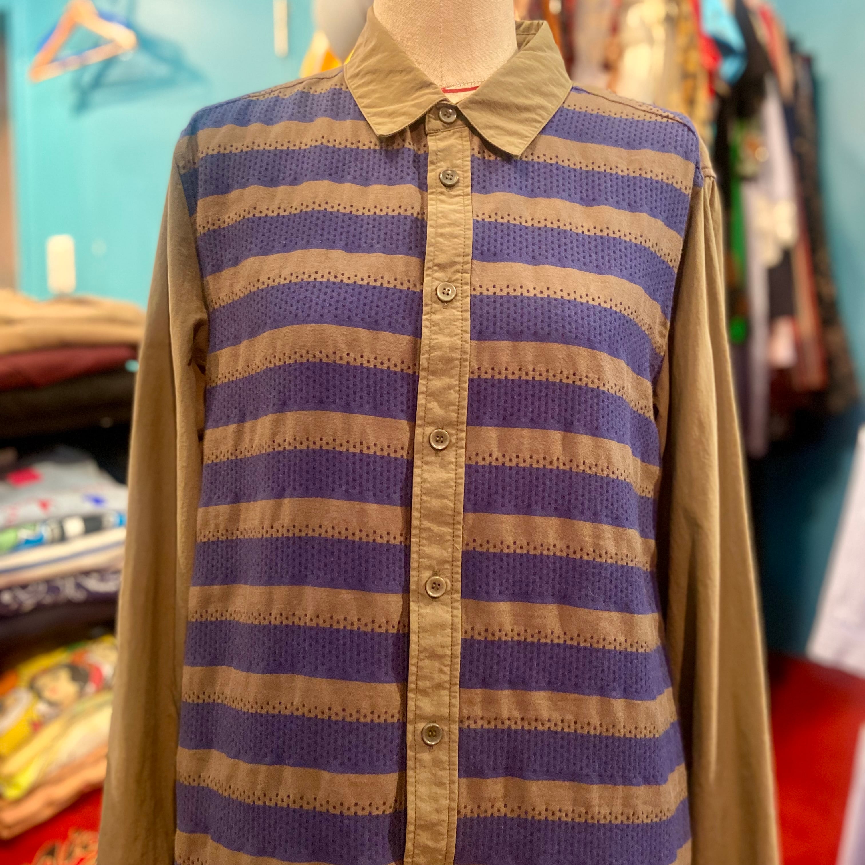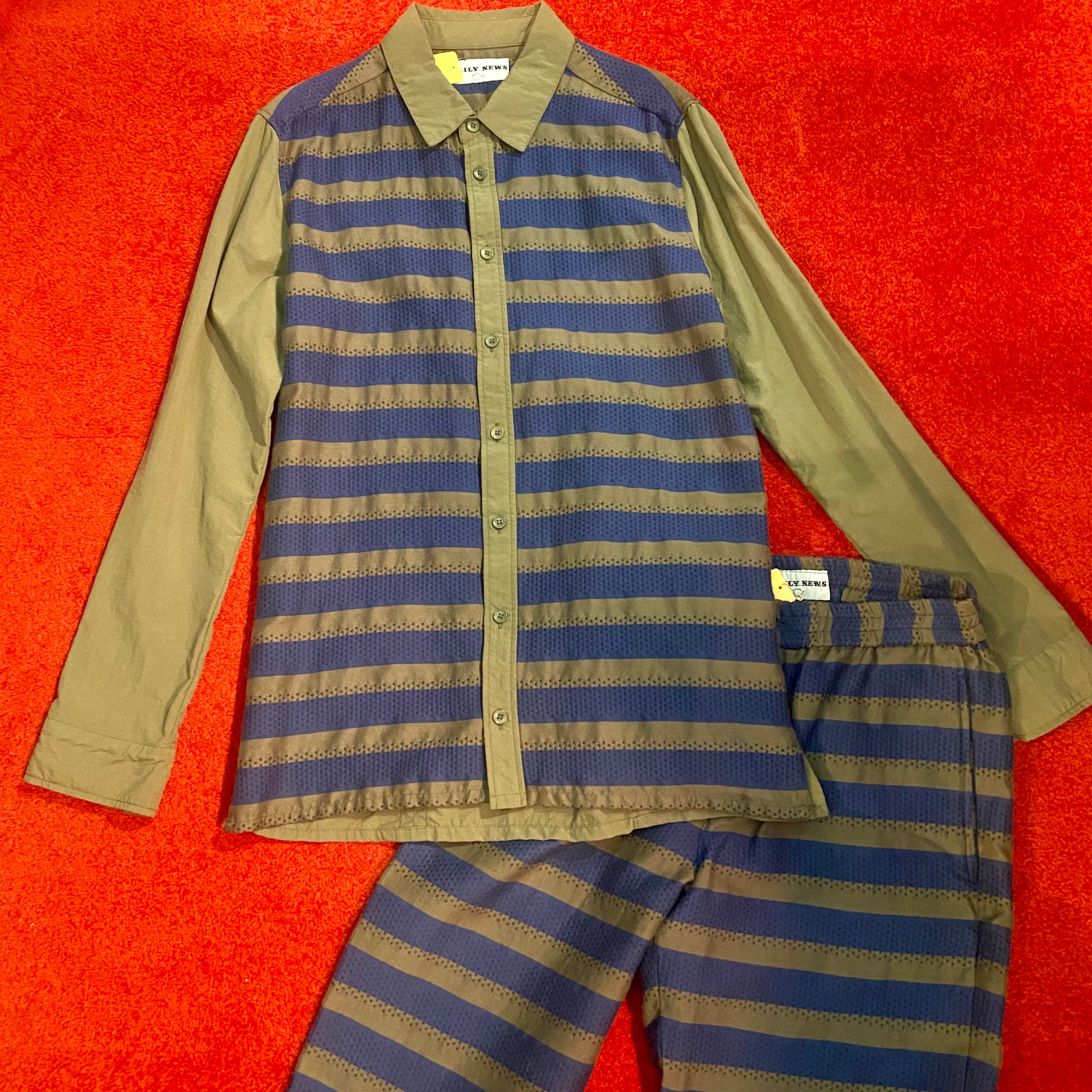 めずらしいボーダー柄シャツとパンツのセットアップのシャツです。