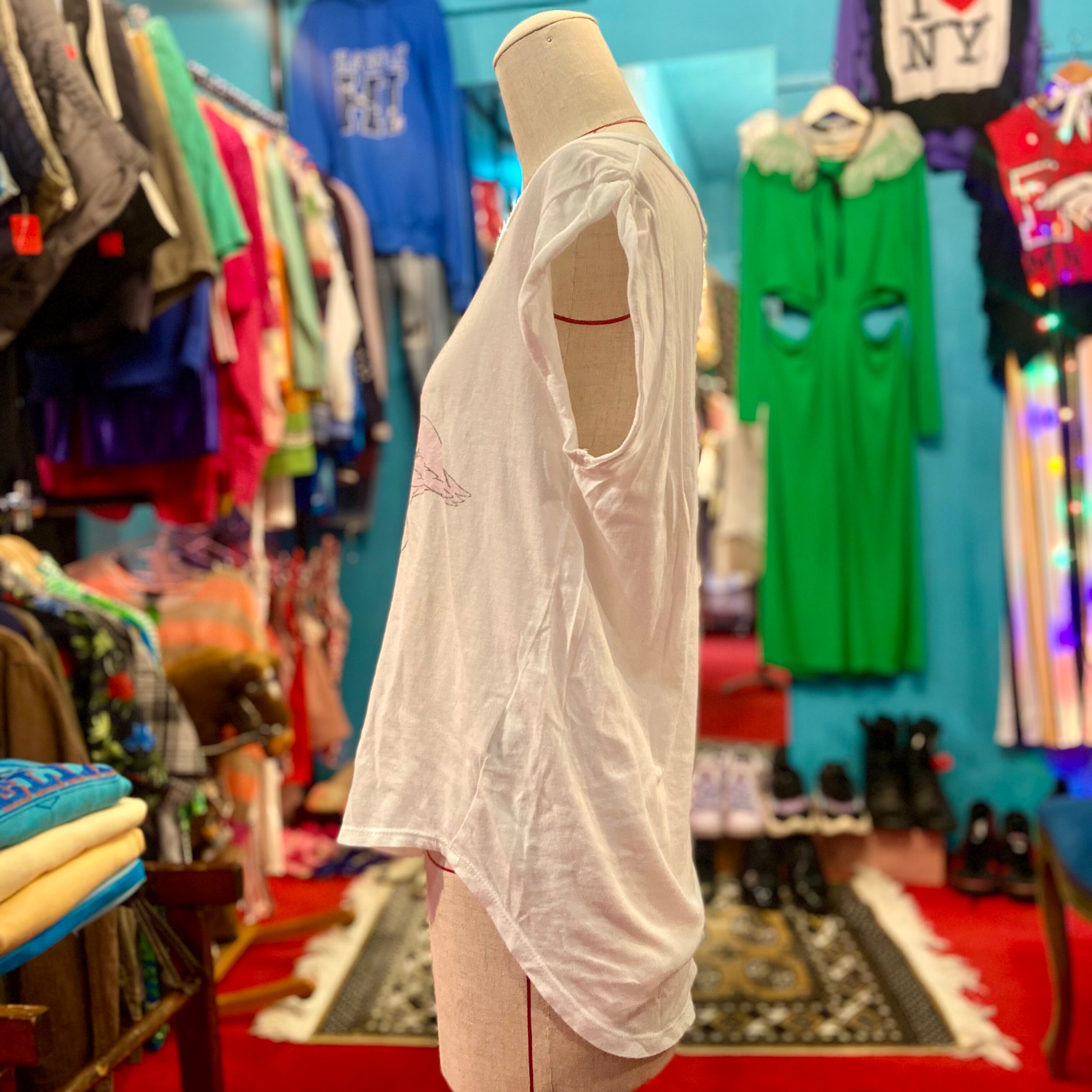 フラミンゴフレンチスリーブプリントTシャツ 白 ハート