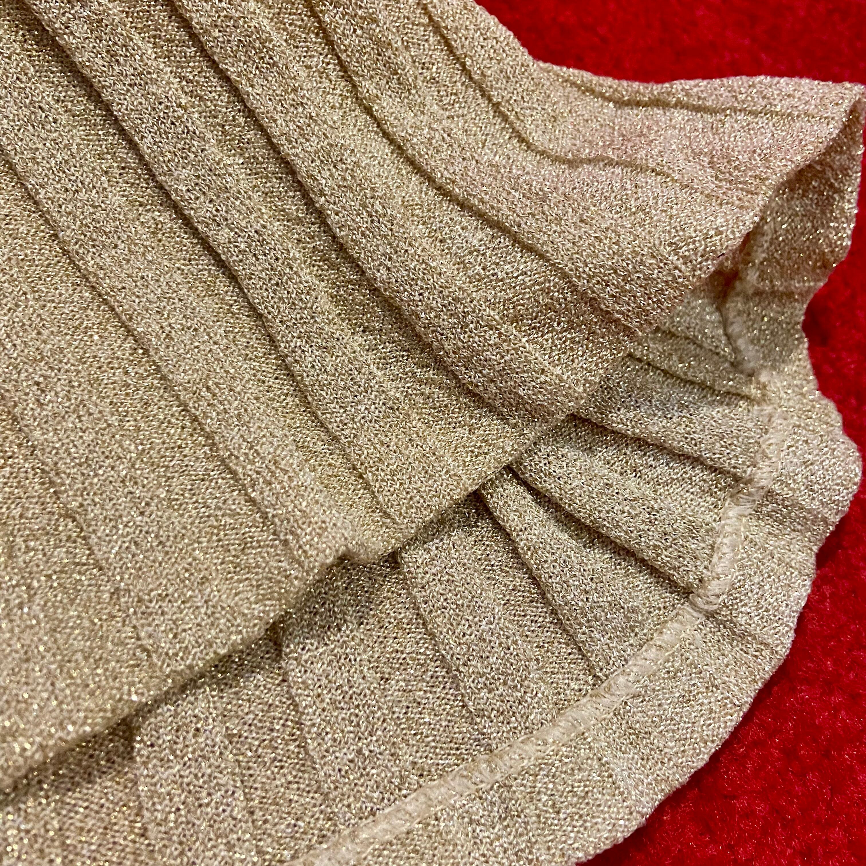 ゴールドの華やかなハイネック×ノースリーブのヴィンテージリブニット。