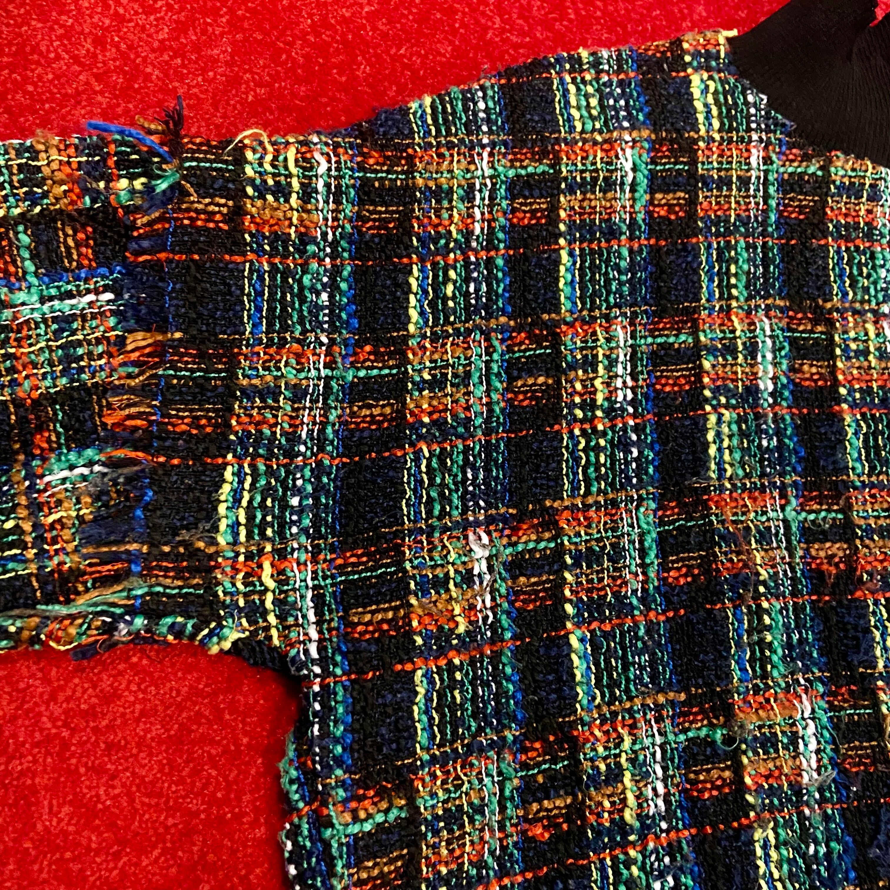 ざっくりとしたチェックのツイード生地に黒リブ生地が映えるプルオーバートップス。