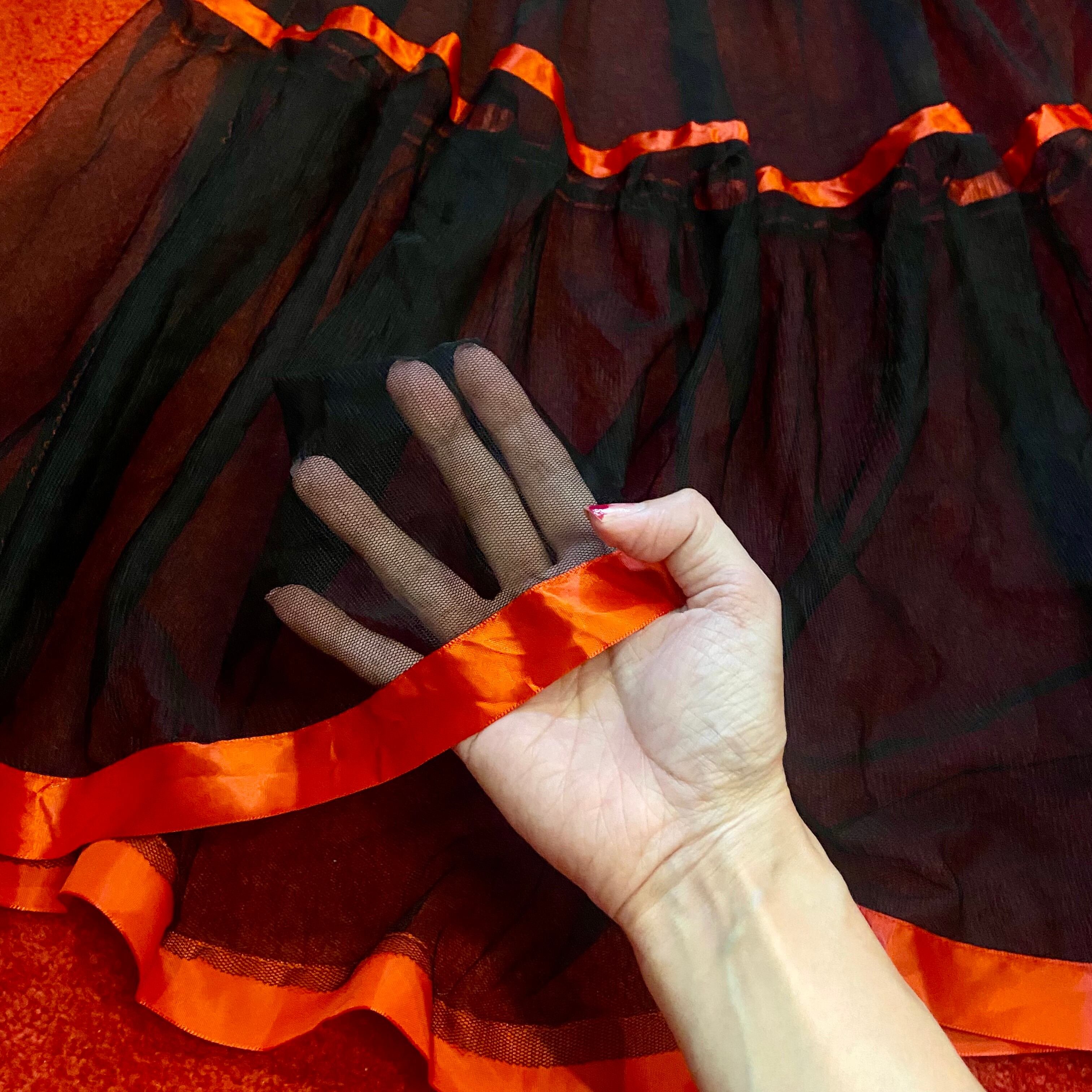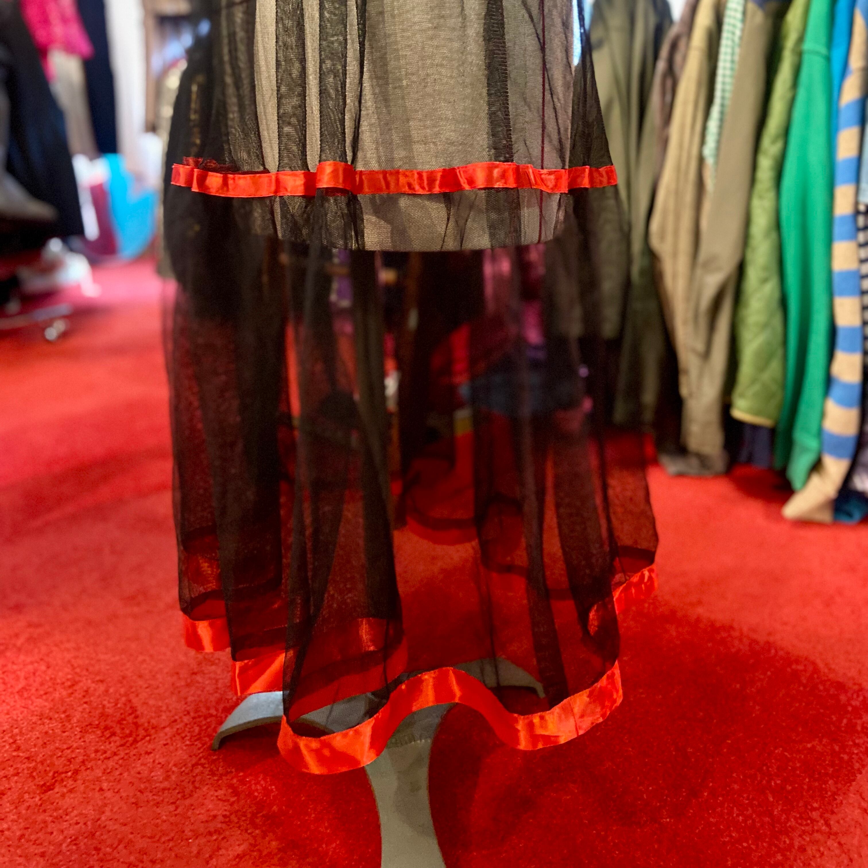 シアーギャザースカート 黒チュール 赤 ヨーロッパ古着