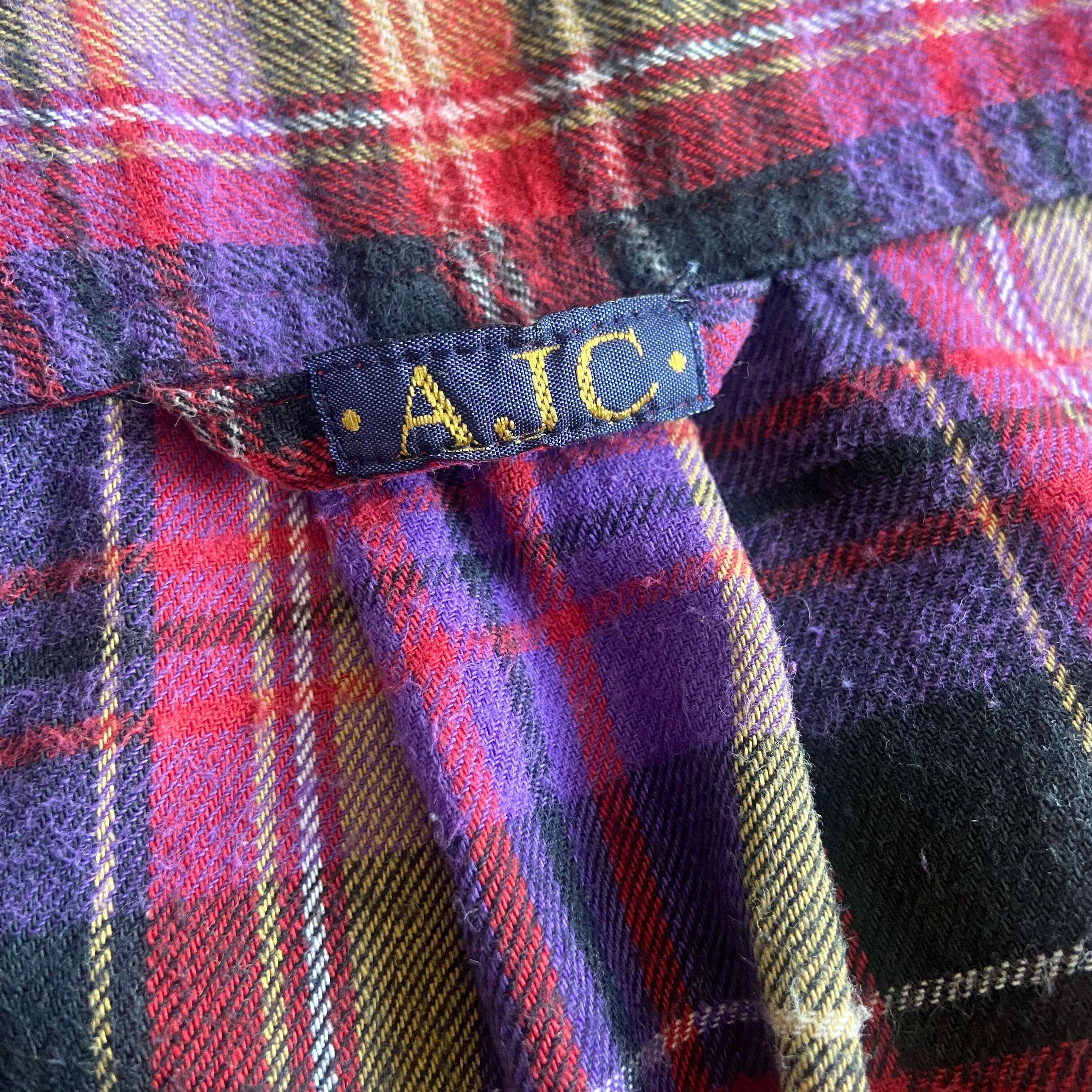 men's チェックネルシャツ 紫 Lsize 襟デニム