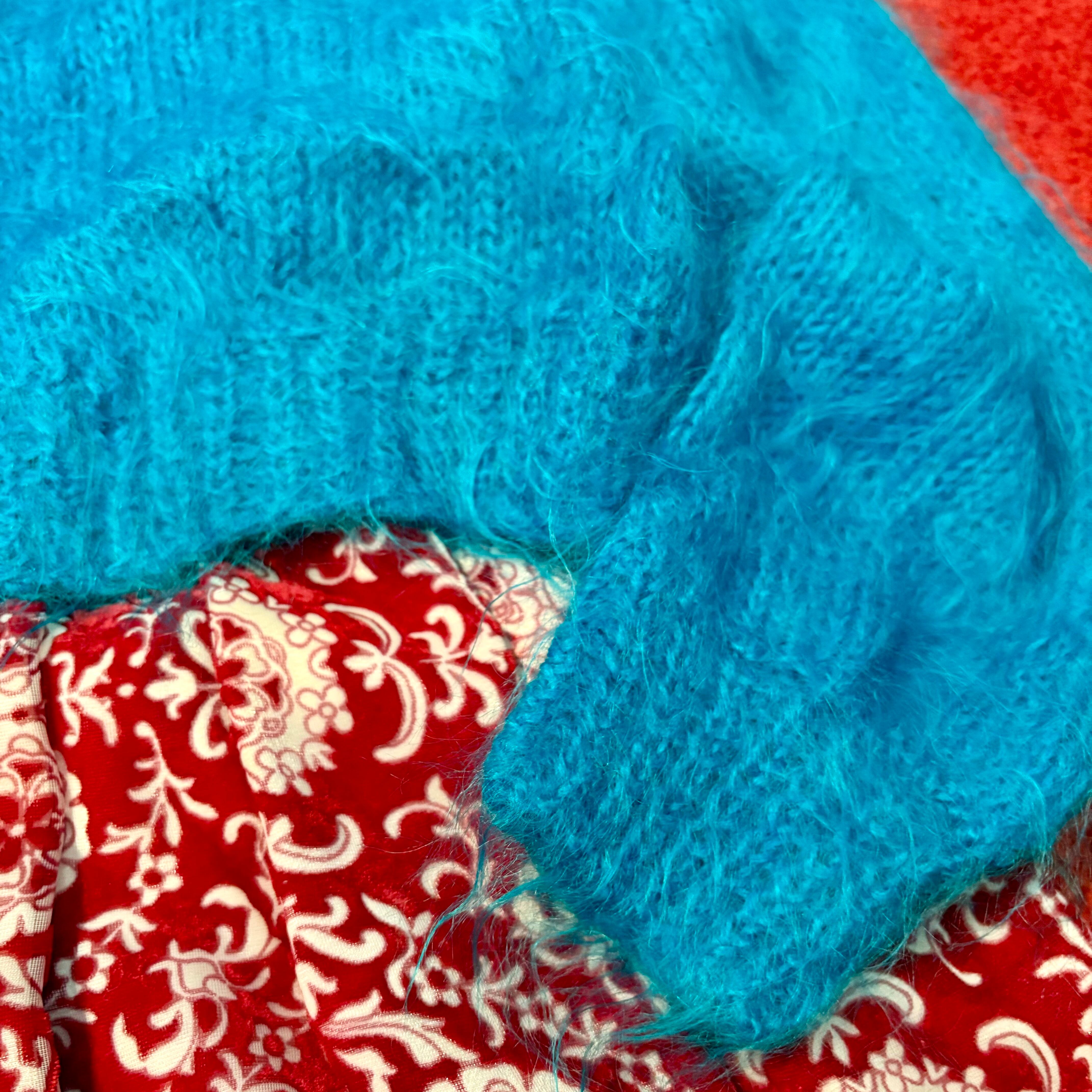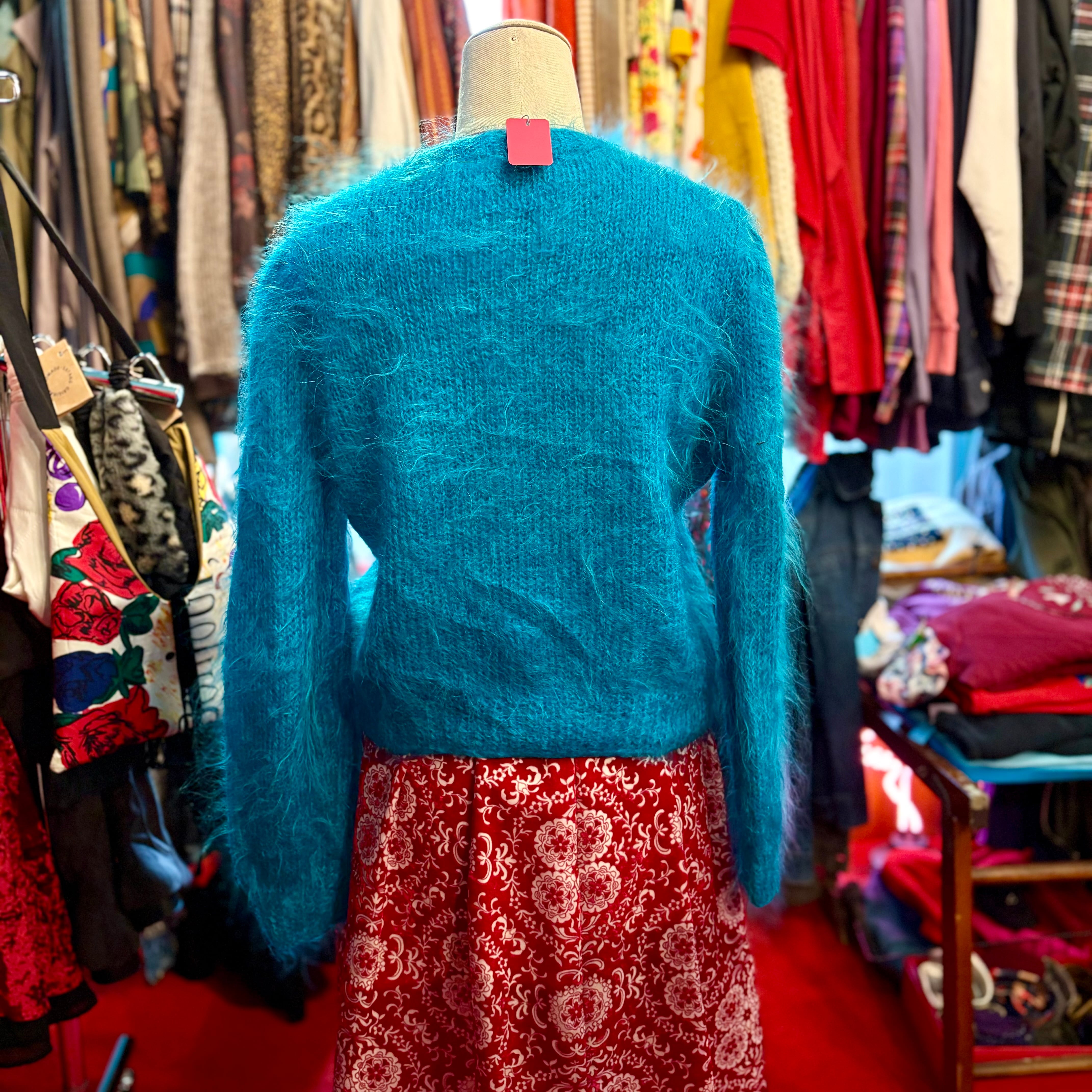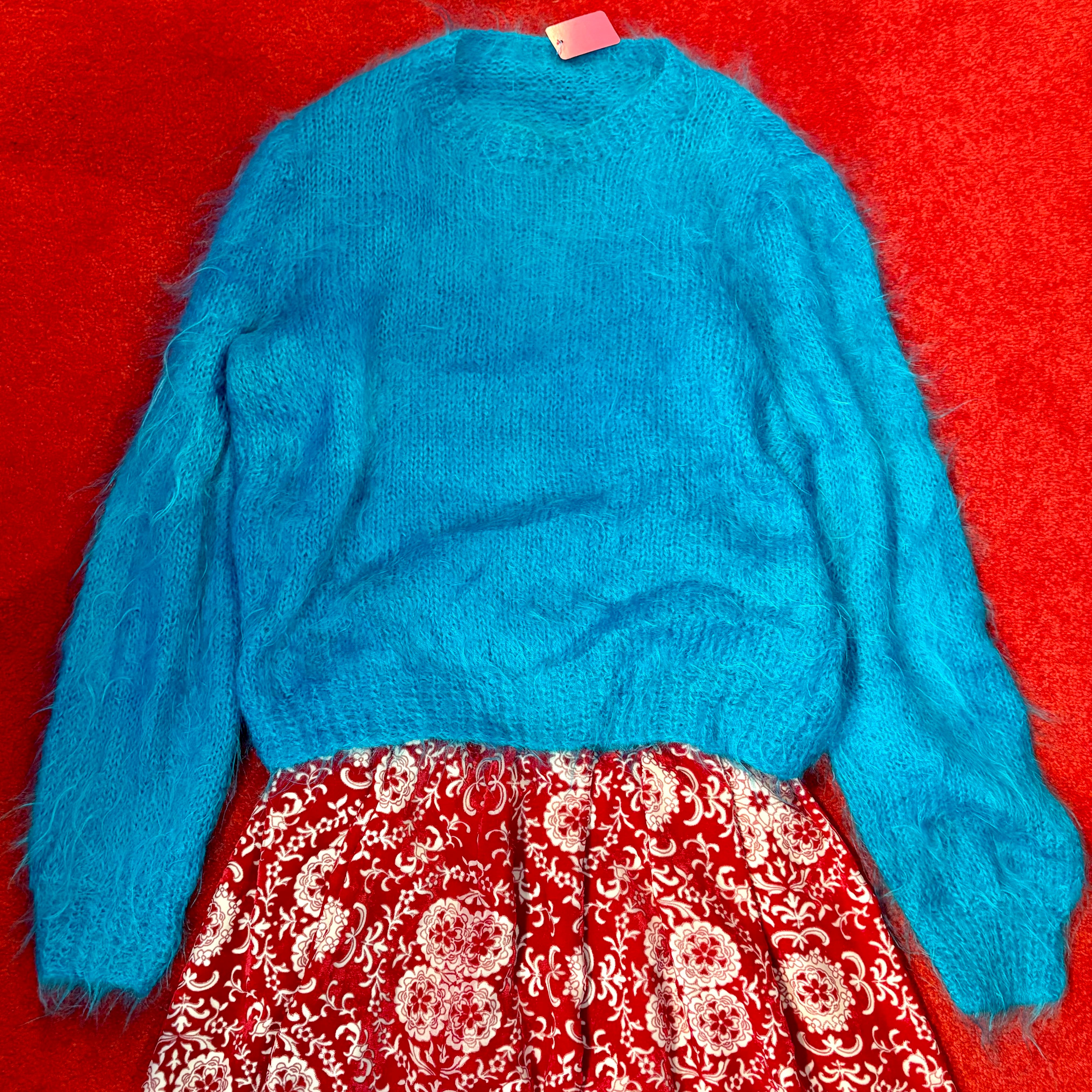 モヘアニットセーター 水色 ターコイズブルー モヘヤ ヨーロッパ古着