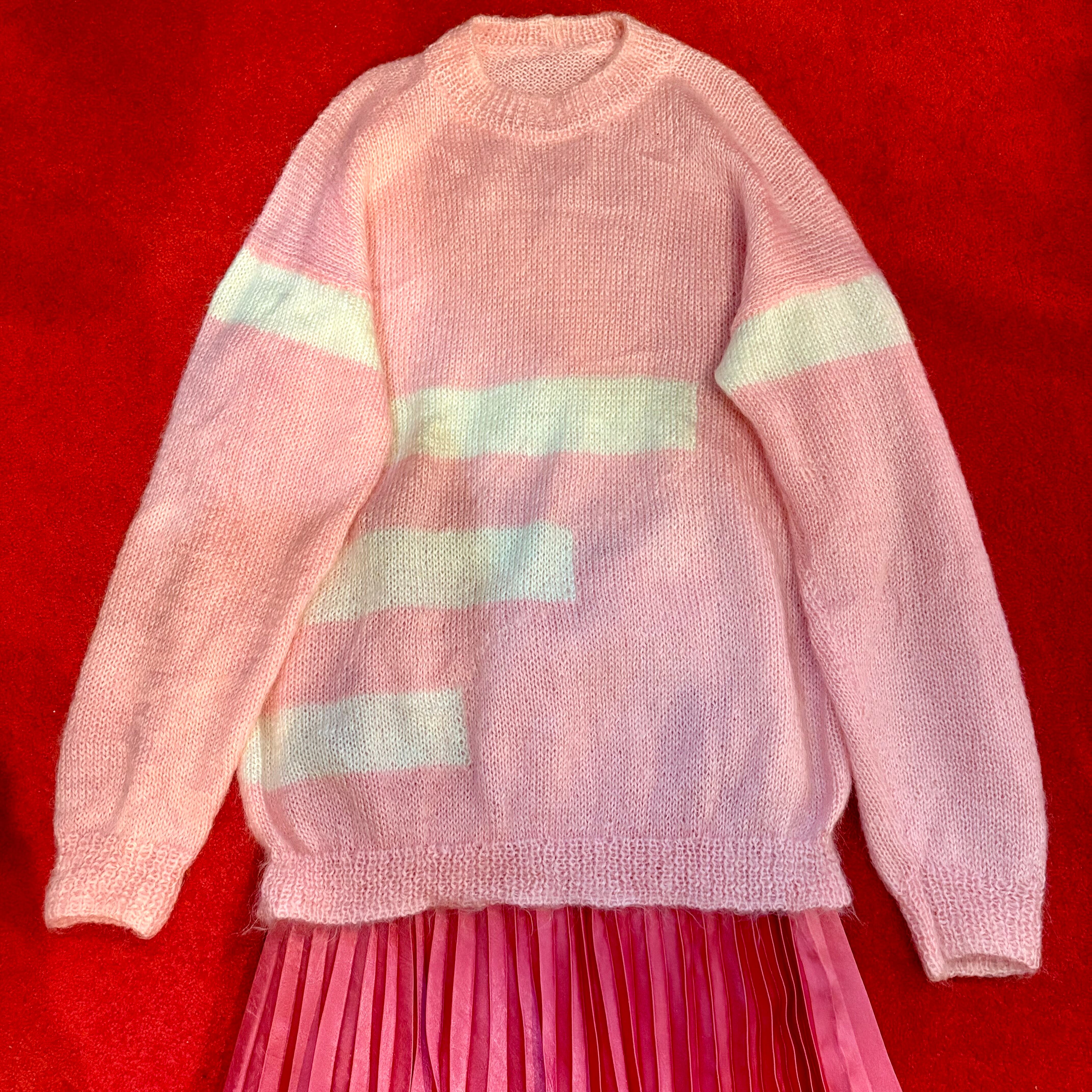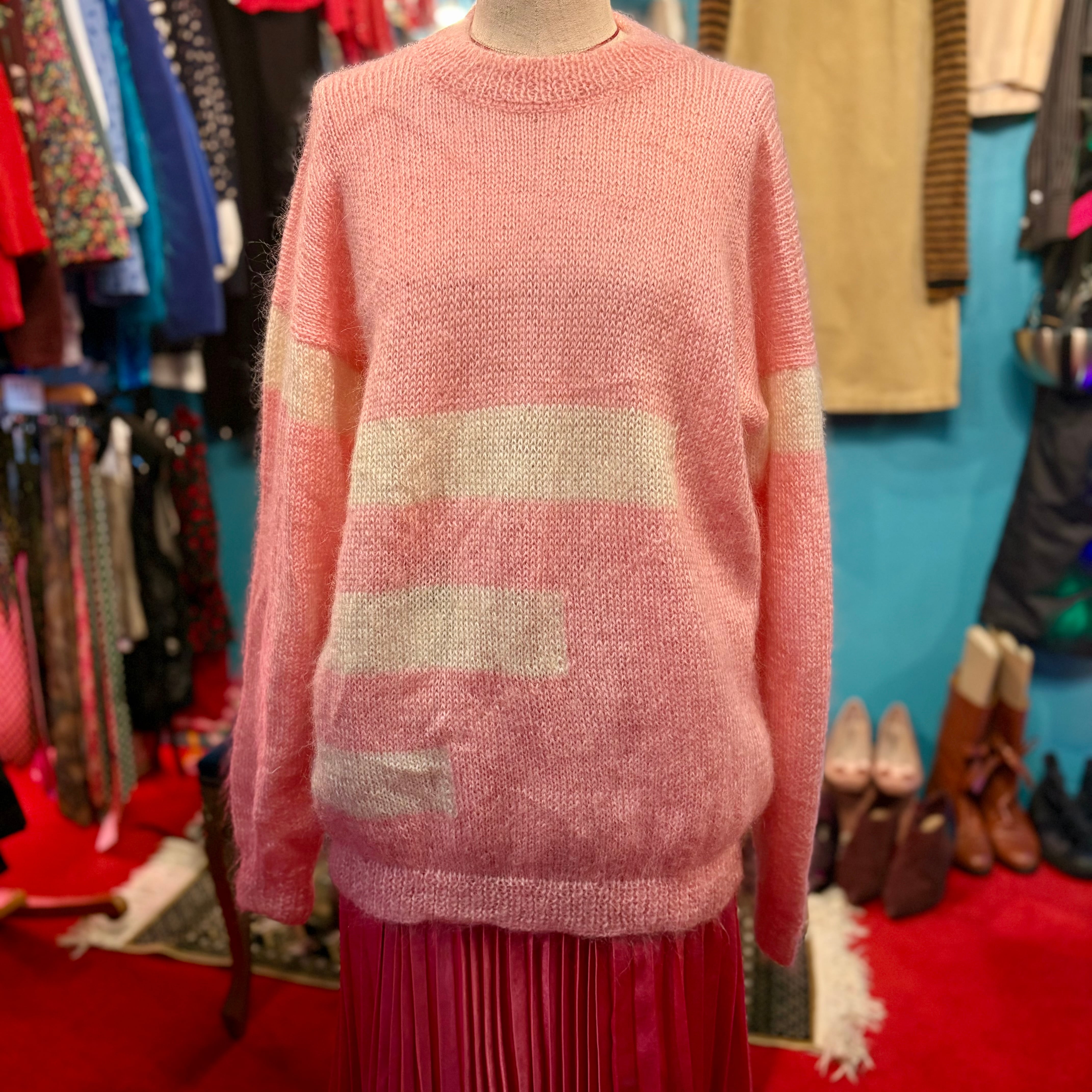 ふわふわモヘアゆるニットセーター ピンク 白 ボーダー