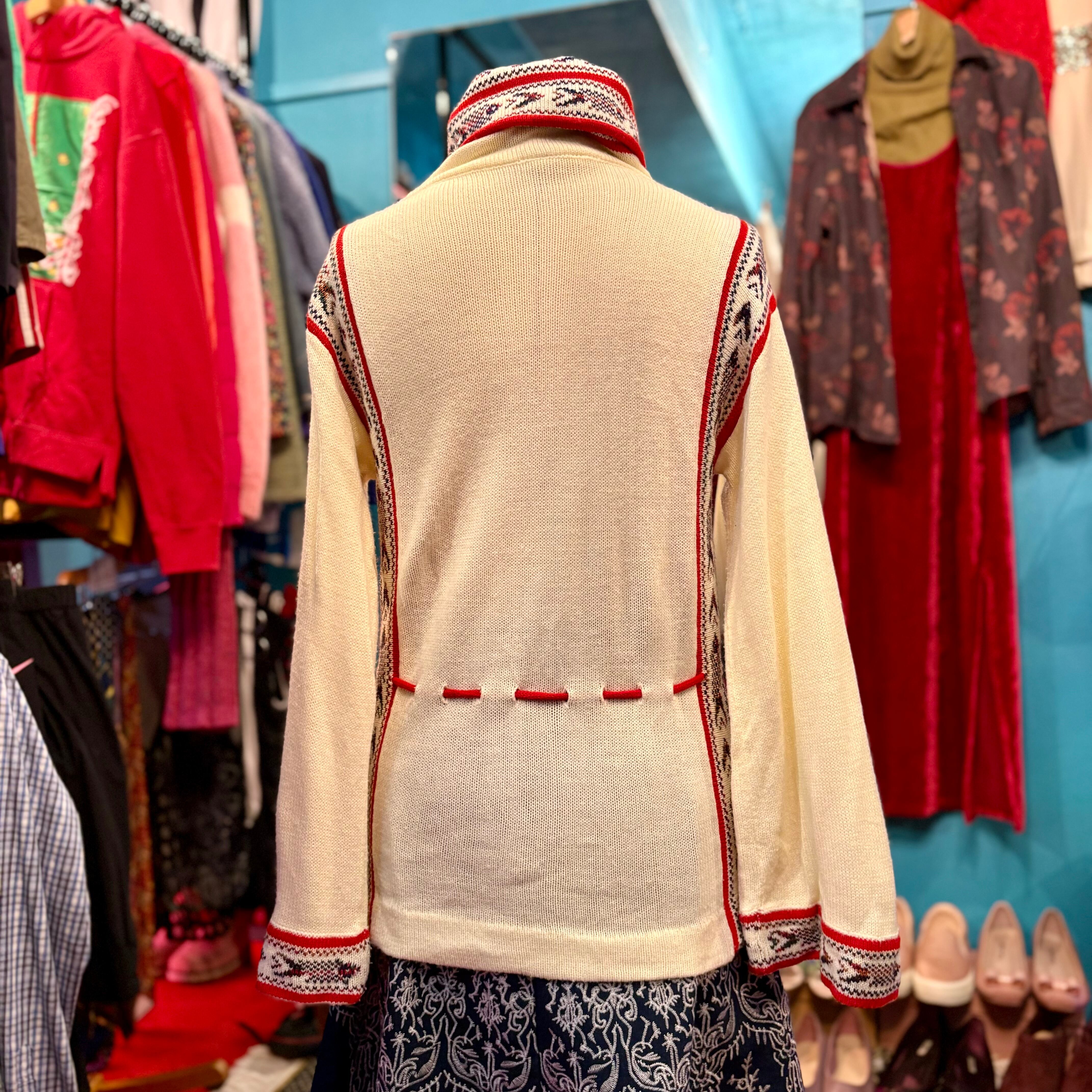 民族風デザインタートルネックニットセーター 白 ヨーロッパ古着